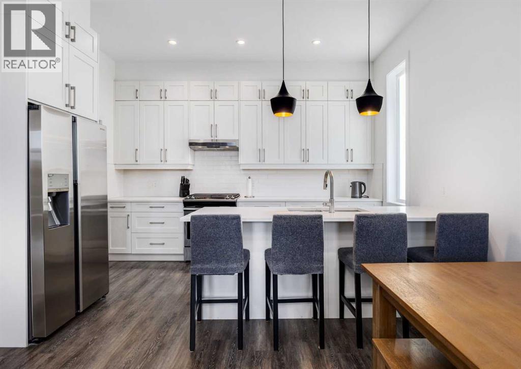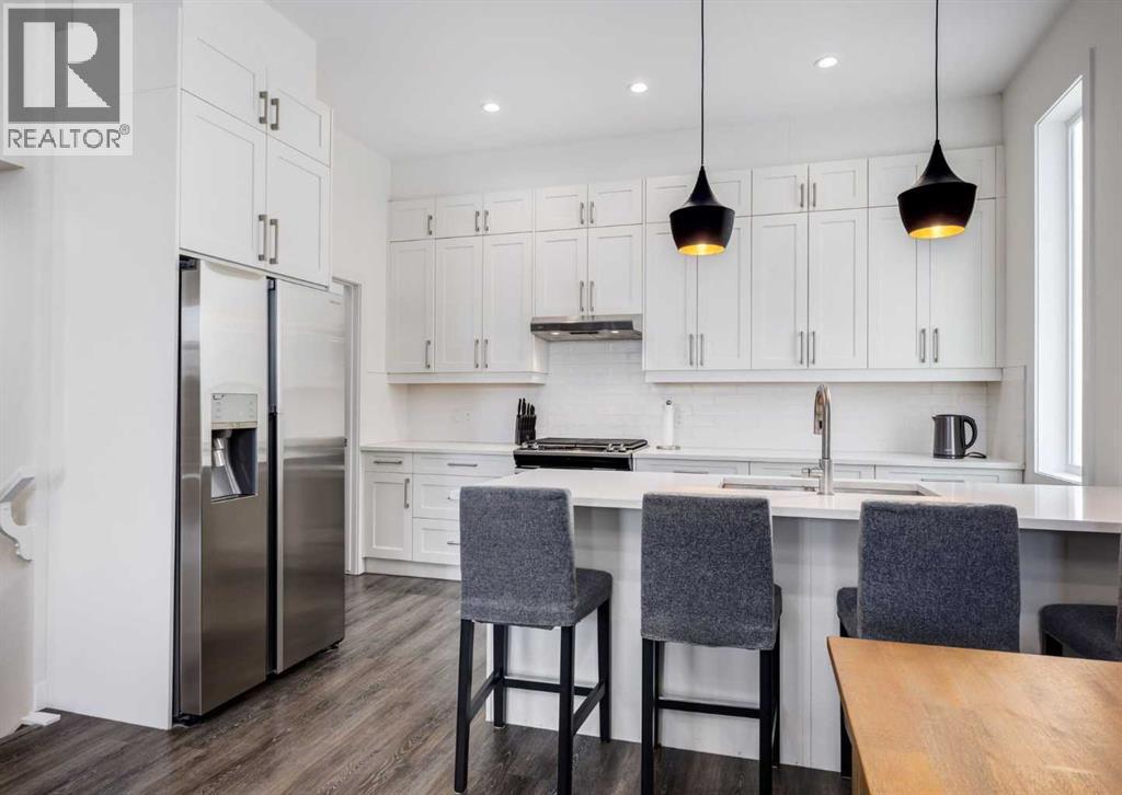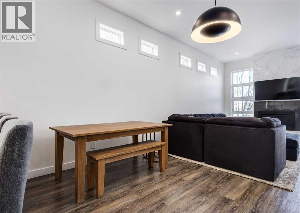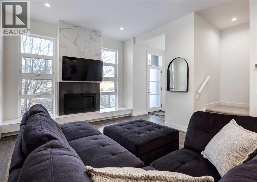Discover contemporary elegance in this stunning two-storey townhome, perfectly situated on a quiet street in the sought-after community of Tuxedo Park. Centrally located with effortless access to downtown, trendy shops, restaurants, parks, deerfoot trail/airport and all other amenities. Spanning three thoughtfully designed levels, this modern residence boasts three bedrooms, three full bathrooms, and a convenient half bath. Flooded with natural light through oversized windows, the main floor welcomes you with impressive 10' flat ceilings that enhance the sense of space and sophistication. The open-concept layout flows seamlessly from the contemporary kitchen—ideal for cooking and gathering—to the bright living and dining areas, creating an inviting environment for both relaxed daily life and entertaining. Upstairs vaulted ceilings and a skylight create space with an airy, architectural charm. The luxurious primary retreat is a true sanctuary, featuring a spa-inspired ensuite complete with heated tile floors for comfort. An additional bedroom with it’s own ensuite and a convenient upper floor laundry complete this floor. The fully finished lower level extends the home’s versatility with a spacious living/media room, a full bathroom, and the third bedroom—perfect as a guest suite, home gym, office, or flex space. Finished with premium upscale materials and timeless modern design throughout, this property also includes a single detached garage and outdoor patio. In one of Calgary’s most vibrant yet peaceful inner-city neighbourhoods, this Tuxedo Park townhome combines style, thoughtful functionality, and an unbeatable location. A must-see gem that perfectly balances urban convenience with quiet retreat—ready to welcome you home. Check out the video in the media link and book your private showing today! (id:54406)