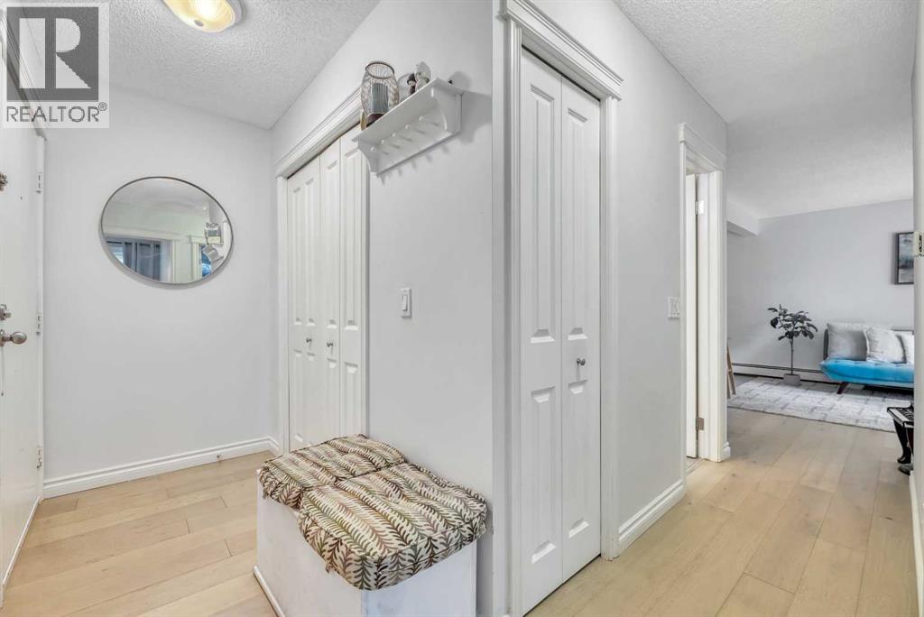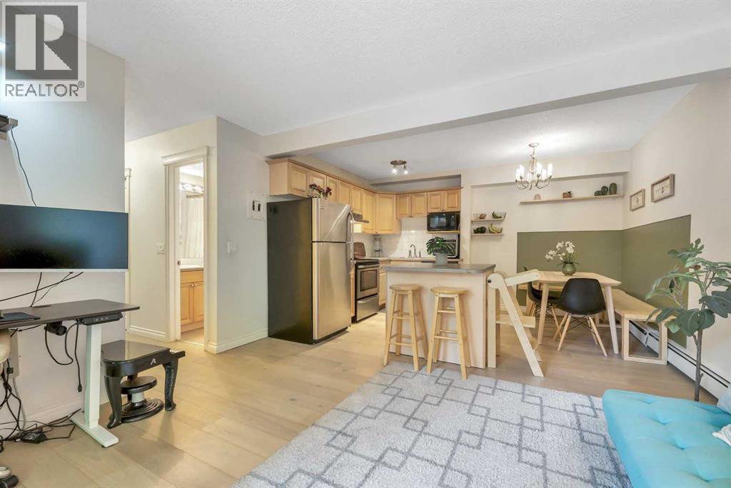 PRICED TO SELL! Looking for the perfect blend of inner-city convenience and neighbourhood charm? This main floor, south-facing 2-bedroom condo in Crescent Heights offers the best of both worlds—urban living with a sense of calm, right in the heart of one of Calgary’s most walkable communities. This unit is full of thoughtful updates including manufactured hardwood flooring throughout, large south-facing windows that bring in loads of natural light, and a modern kitchen with maple cabinetry. The open-concept living area flows out to a private sunny patio, perfect for morning coffee, casual dinners, or catching some afternoon rays. The layout includes two comfortable and versatile bedrooms—perfect for a home office, guest space, and features in-suite laundry, and a dedicated parking stall. Bonus: condo fees include all utilities except electricity, making for simplified monthly expenses. With street-level access, no elevators and only a few stairs to navigate, this main floor unit is ideal for anyone seeking easy accessibility. You’re just steps from Rotary Park’s dog park, walking distance to coffee shops, restaurants and groceries. Whether you’re a first-time buyer, downsizer, or investor, this move-in ready condo delivers on lifestyle, location, and value. Come experience it for yourself—homes like this don’t last long. (id:54406)