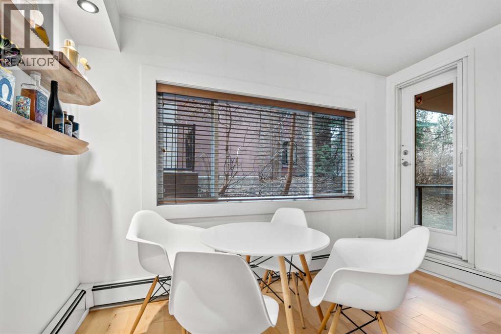 Fantastic Sunnyside Condo in an amazing location – backing on McHugh Bluffs and Sunnyside pathway system, with walking trails and parks, and downtown, at your doorstep. Experience main floor living with this immaculate, move-in ready 2 bedroom condo offering you everything you could need for those looking for the urban vibe while still being surrounded by trees and greenery. Enter through the secure building entrance, down a short hallway, and enter into the generous entry way of this condo. The warmth of the hardwood flooring blends beautifully with the modern décor. Boasting an open concept, bright living room that can accommodate a multitude of sofa configurations, two glass-door cabinets are included that can flank your TV, a cozy dining nook, lovely kitchen with stylish grey cabinetry, tile backsplash, granite countertops, and stainless steel appliances. You will enjoy the kitchen for its efficiency and the full size pantry for extra convenience and storage. The large 4 piece bathroom has tiled walls, a large soaker tub and equally large tiled shower, and a shelved storage area for towels, supplies, etc. The large primary bedroom has a very spacious walk-in closet with built-ins, shelves and drawers, and a second deep closet for added storage – of which there is no shortage of in this unit. The second bedroom is an ideal flex room:: keep it as a bedroom, use it as an office, convert it to a home gym, whatever your heart desires. The in-suite laundry includes a stacked washer and dryer so no leaving home to get caught up on laundry after your morning run. It has to be stated that this home is perfect for the first-time home buyer, someone wishing to downsize, the downtowner, or an investor – lots of options here. Discover everything this home has to offer, with walking distance to grocery stores, cafes, minutes to U of C, SAIT, Foothills and Children's hospital. Walk to Prince’s Island Park to enjoy the summer festivities, discover Sunnyside and K ensington community offerings, knowing that transit is minutes away. Check out the interactive iGuide for a virtual walkthrough of this property – you won’t be disappointed. (id:54406)