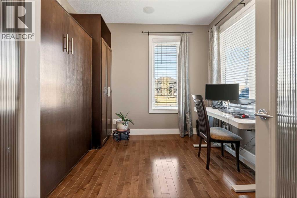 Located in the prestigious community of MonTerra on Cochrane Lakes , this SAM Award-winning Astoria custom 2-story home offers 3600 sq.ft of developed living space on 3 levels with Rocky Mountain views. Designed for exceptional family living, the home features four bedrooms, a main-floor office with built-in Murphy bed, and a dramatic great room with cathedral ceilings, west-facing floor-to-ceiling windows, and a gas fireplace fully wired with a Sonos sound system. The spacious kitchen and oversized dining area are ideal for entertaining, complete with professional-series appliances including a Sakura hood fan, ample Denca cabinetry with under counter LED spot lighting, and breakfast-bar island. A large walk thru pantry with family sized mudroom, and access to a west-facing sundeck with gas bbq hookup complete this level. Upstairs offers a bright loft-style sitting area and three bedrooms. The luxurious primary bedroom features a double-sided gas fireplace, six-piece ensuite, and walk-in closet. The fully developed lower level includes a home theatre, guest bedroom, home gym or flex space, and full bath. Not to be missed for the car or hobby enthusiasts is a rare five-car attached garage with high ceilings, plenty of storage and a pull through bay to rear-yard access. This mechanics dream is wired to 220V and already set up with car lift, workbench, bike hoists, and a high-end compressor and pressure wash system. Set on a low maintenance landscaped corner lot minutes from Cochrane near quality schools, shops, and services—this is an excellent opportunity to settle in one of Rocky View's most sought-after communities. (id:54406)