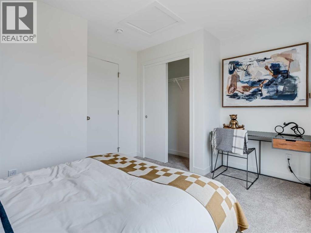 **Open House on Saturday : 1 pm-4 pm** Explore a series of stylish heritage-inspired row houses located near the center of our scenic Environment Reserve Park! This Heritage model A combines comfort and functionality, making it perfect for families and professionals. With 2 bedrooms, 2.5 bathrooms, and a flexible main-floor den, this expansive home is tailored for contemporary living. Upon entering, you will discover a bright ground-floor den or home office that includes a large window, a closet, and a handy powder room. Enjoy a beautifully landscaped front yard, a single attached garage, and additional parking in the driveway. The open-concept main floor features 9' ceilings and is bathed in natural light, creating a cozy and welcoming atmosphere for daily living or entertaining guests. The modern kitchen is equipped with quartz countertops, a breakfast bar, high-end stainless steel appliances, and a chimney-style range hood. Sliding doors lead to a full-sized balcony — perfect for unwinding or dining outside. On the upper level, there are two roomy bedrooms, including a primary suite that has a double access closet and a private ensuite with a stand-up shower and a sliding glass door. A second full 3-piece bathroom is available for the additional bedroom, which can also serve as a home office. The upper floor further includes a washer and dryer conveniently situated, a linen closet, and ample storage options throughout.This home is located in vibrant Springbank Hill and offers easy access to Aspen Landing, Rundle College, Griffith Woods, Ambrose University, restaurants, and senior care facilities.**The price includes GST. **All pictures are from show home #2225 81St SW. (id:54406)