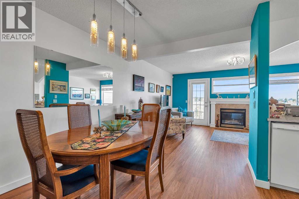 Welcome to this beautifully maintained 2-storey townhome with a fully finished walkout basement, located in the desirable community of Citadel. This home offers a bright and open main floor featuring an updated kitchen, a spacious dining area, and a cozy great room with a gas fireplace that leads to a private balcony overlooking green space. Upstairs, you'll find two generous primary bedrooms, each with its own full ensuite, one of which includes convenient in-suite laundry. The walkout basement adds extra living space with a large family room, a storage room with roughed-in plumbing, and a built-in Murphy bed, perfect for guests. Additional features include a single attached garage, visitor parking just across the street, and numerous upgrades throughout, including a newer furnace, hot water tank, laminate flooring, kitchen cabinetry, and light fixtures. Ideally located close to shopping, schools, parks, walking paths, and public transit, this home is move-in ready—book your private showing today! (id:54406)