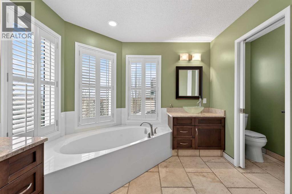 Elevate your lifestyle in this one-of-a-kind sanctuary, perched at the street's highest elevation for ultimate privacy and grandeur. Imagine waking up to an ever-changing 180-degree masterpiece of valley and golf course views, framed perfectly by a dramatic 20-foot wall of glass. From the moment you enter, the soaring cathedral ceilings and open, airy design create an atmosphere of refined comfort that is truly unrivaled in the community.At the heart of the home lies a timeless gourmet kitchen, anchored by rich granite countertops, a massive central island, and premium stainless steel appliances. This residence has been meticulously maintained and thoughtfully updated, featuring three beautifully renovated bathrooms, a sophisticated executive office with a signature curved railing, and a master suite that serves as a private retreat with its own balcony overlooking Valley Ridge Golf Course and Tuscany. The exceptional walk-out basement is a standout feature, flooding the lower level with natural light and offering seamless access to the professionally landscaped yard—a blank canvas ready for your creative touch.With infrastructure updates like dual hot water tanks and select plumbing improvements, this home offers a rare combination of prestigious location and serene living. While the photos are stunning, they simply cannot replicate the breathtaking scale and energy of this 180-degree view. Don't miss the opportunity to see it for yourself—reach out today to schedule your private tour and experience the pinnacle of Valley Ridge living firsthand. (id:54406)