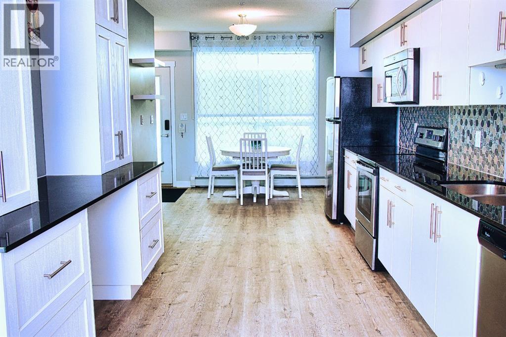 Welcome to this well kept townhome style condo in Mount Pleasant. It sits on a quiet, tree lined street with quick access to SAIT, the CTrain, Kensington, Confederation Park, Riley Park, restaurants, coffee shops and everything else the area is known for. The main floor feels open and bright with large windows and a clean modern look. The kitchen has quartz counters, stainless steel appliances and plenty of cabinet space, and it flows nicely into the living and dining areas. The unit also has air conditioning which is a huge bonus in the summer. You have a front patio for morning coffees and a private back patio for grilling or relaxing. The upper floor has a spacious bedroom and a large loft area. The loft is big enough to use as an office, workout space, guest area or anything else you need. A full four piece bathroom and laundry are also upstairs. In 2026 the carpets were replaced, floors were replaced, and the unit was freshly repainted throughout. The building is well managed and has a central courtyard along with titled underground parking and visitor parking. A comfortable home in a great location with flexible space and modern conveniences. Come see it in person. (id:54406)