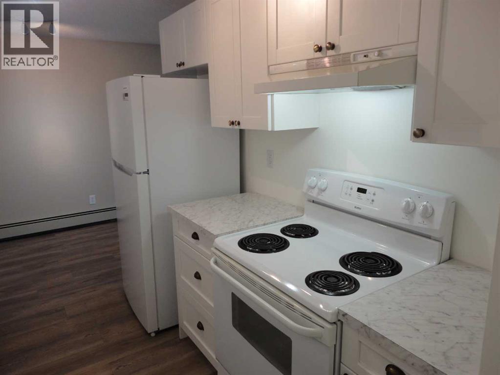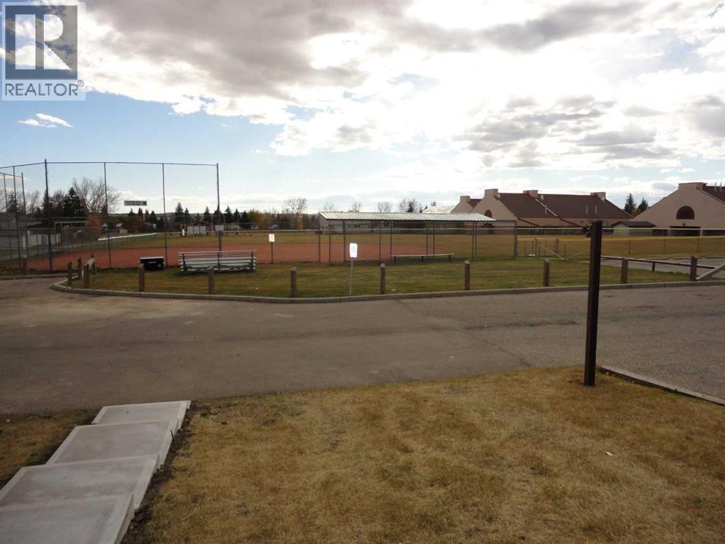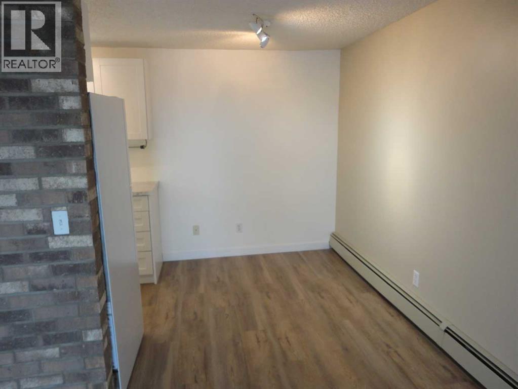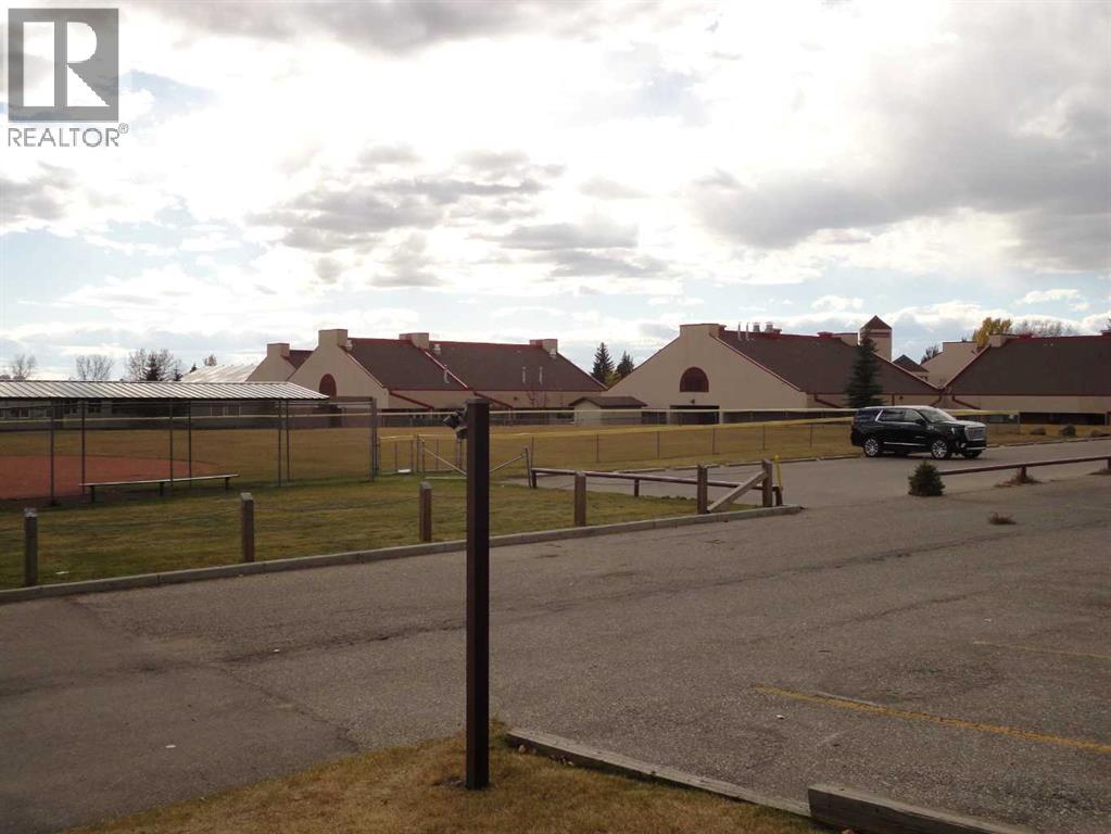 This 614 sq. ft. main floor (no stairs to climb) one-bedroom apartment-style condominium is ideally situated in a quiet residential community, backing onto a school field with southern exposure and unobstructed rear views. The property features a series of recent upgrades including new vinyl flooring with enhanced underlay, fresh paint, new doors, partially updated lower kitchen cabinets, a new refrigerator, window coverings, countertops, toilet, shelving storage racks, and freshly painted door trim. As a corner unit, it benefits from an additional window between the living and dining areas, ensuring ample natural light throughout. The interior includes a split brick feature wall, a spacious living room with patio doors leading to a balcony, and both the bedroom and living room overlook a green space. The dining area adjoins the galley kitchen, while an updated four-piece bathroom is conveniently located off the main entryway. Additional amenities include in-suite storage and two surface parking stalls. This residence offers an excellent opportunity for young couples, seniors not wanting stairs or single professionals seeking comfort and convenience in a well-maintained setting. Walking distance to Starbucks, Safeway, Dollarama and many other convenient amenities. Also located close to the North end of Okotoks for closer access to Calgary for the commuter. (id:54406)