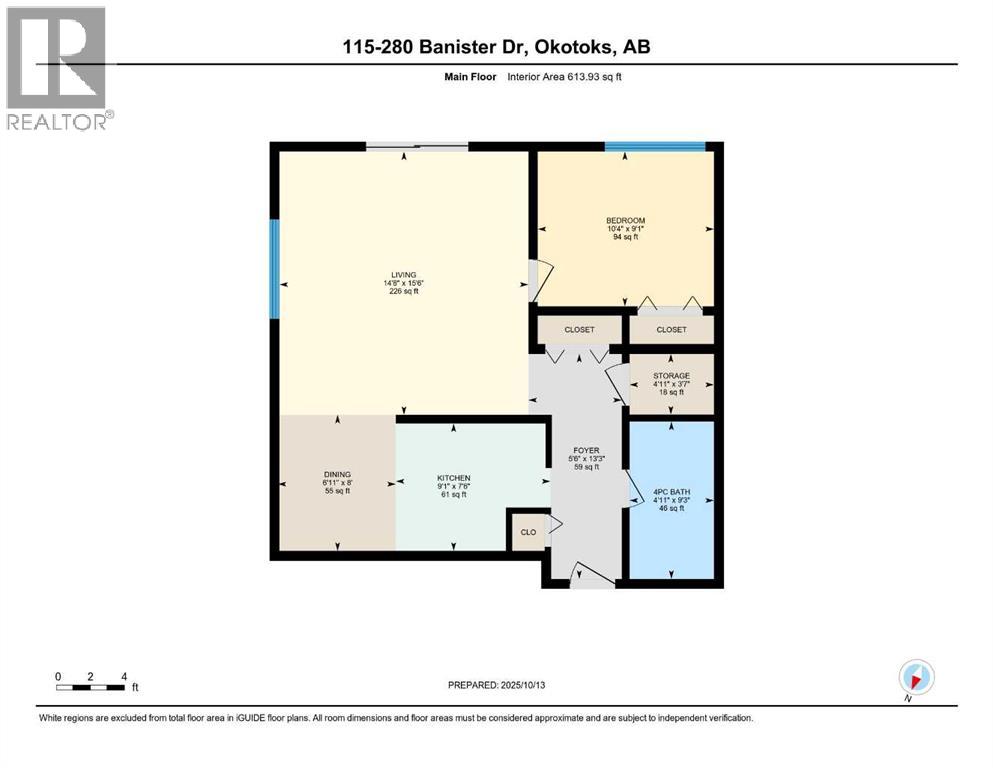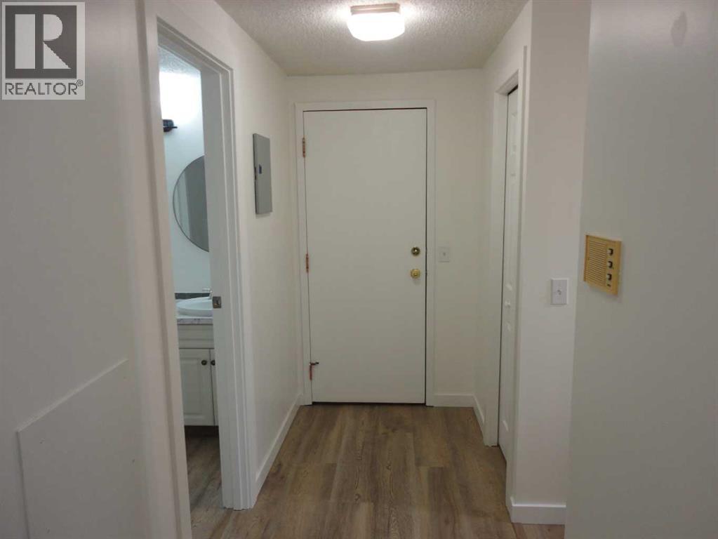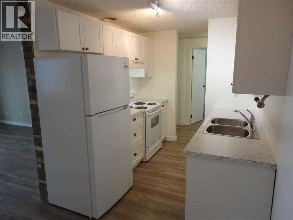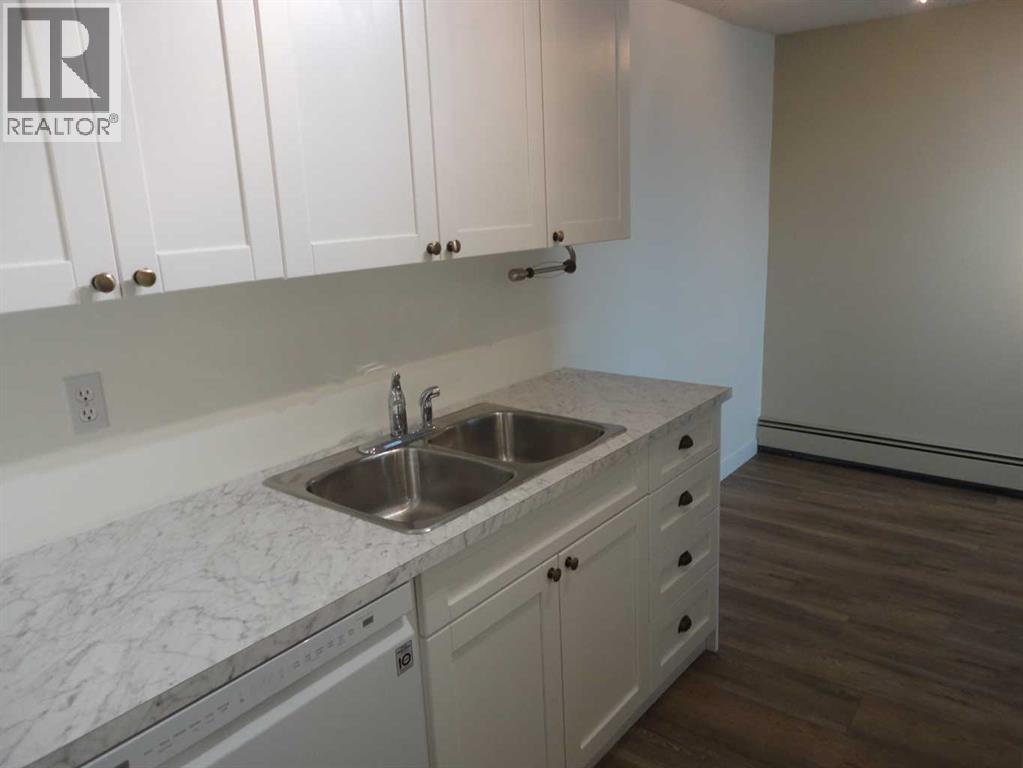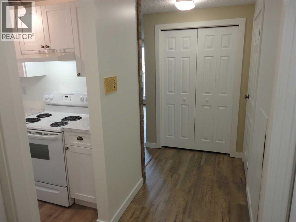 This 614 sq. ft. main floor (no stairs to climb) one-bedroom apartment-style condominium is ideally situated in a quiet residential community, backing onto a school field with southern exposure and unobstructed rear views. The property features a series of recent upgrades including new vinyl flooring with enhanced underlay, fresh paint, new doors, partially updated lower kitchen cabinets, a new refrigerator, window coverings, countertops, toilet, shelving storage racks, and freshly painted door trim. As a corner unit, it benefits from an additional window between the living and dining areas, ensuring ample natural light throughout. The interior includes a split brick feature wall, a spacious living room with patio doors leading to a balcony, and both the bedroom and living room overlook a green space. The dining area adjoins the galley kitchen, while an updated four-piece bathroom is conveniently located off the main entryway. Additional amenities include in-suite storage and two surface parking stalls. This residence offers an excellent opportunity for young couples, seniors not wanting stairs or single professionals seeking comfort and convenience in a well-maintained setting. Walking distance to Starbucks, Safeway, Dollarama and many other convenient amenities. Also located close to the North end of Okotoks for closer access to Calgary for the commuter. (id:54406)