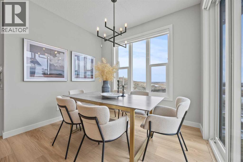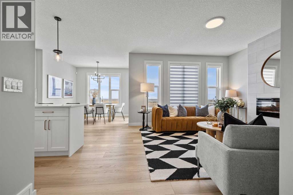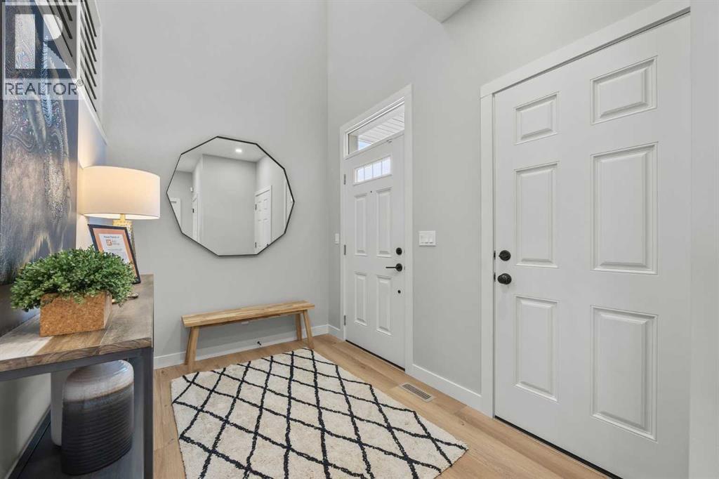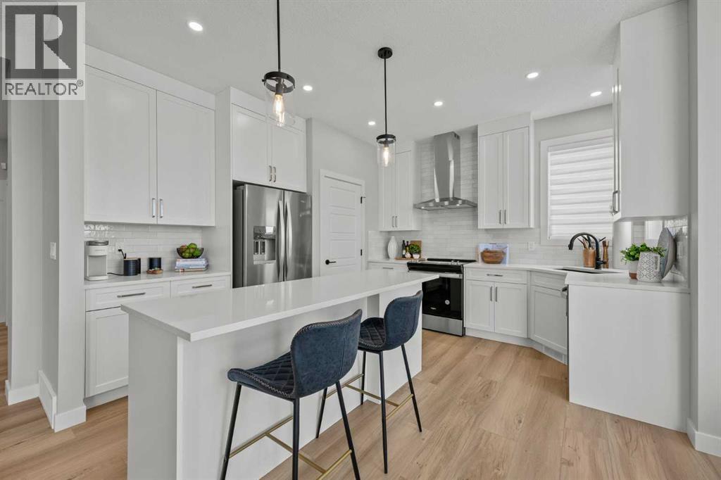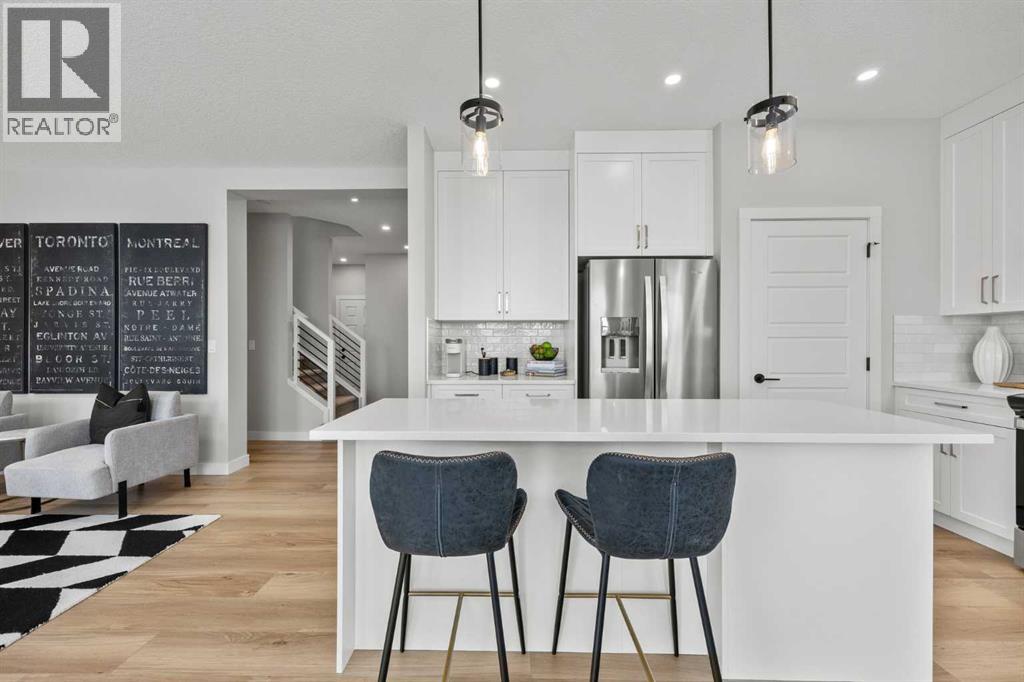 Don’t miss this rare opportunity to own a professionally designed and fully upgraded showhome! Built by Calgary and area builder Alliston at Home, this standout 3-bedroom, 2.5-bath beauty sits in the heart of Crossfield’s sought-after Iron Landing community—just steps from Veterans Peace Park and within walking distance to Crossfield Elementary and W.G. Murdoch Schools and ONLY ten minutes North of Airdrie. Small town charm near big city amenities, get the best of both worlds here. With over 1,900 sq. ft. of thoughtfully designed living space, this home blends modernstyle with total functionality. You’ll love the bright, airy vibe from the moment you walk in, thanks to the 9’ ceilings, open-to-below entry, and a mix of matte black and stainless- steel fixtures that add just the right amount of edge. At the heart of the home is a chef-inspired kitchen decked out with Whirlpool appliances, perfect for casual family dinners or hosting friends. The open-concept great room features a cozy electric fireplace and flows seamlessly into the dining area—ideal for both chill nights in and big get-togethers. Need space for your vehicles and your gear? The oversized tandem garage fits up to 3 vehicles, with extra room for storage (or even a future golf simulator setup). Upstairs, you’ll find, 3 spacious bedrooms with the primary bedroom having a dreamy 5-piece spa like ensuite consisting of dual sinks, a soaker tub and a huge 60x36 shower that leads you into your large walk-in closet. The large bonus room offers additional living space and a full laundry room complete with Whirlpool washer and dryer. The unfinished walk-out basement with 9’ ceilings and plumbing rough-in gives you a head start on future development—think rec room, guest suite, home gym, or all three. Outside, enjoy your north-facing deck, perfect for morning coffee or sunset unwinds. Bonus features include air conditioning, luxury vinyl plank flooring throughout the main, triple-pane windows, front yard landsc aping + tree and showhome worthy upgrades throughout. (id:54406)