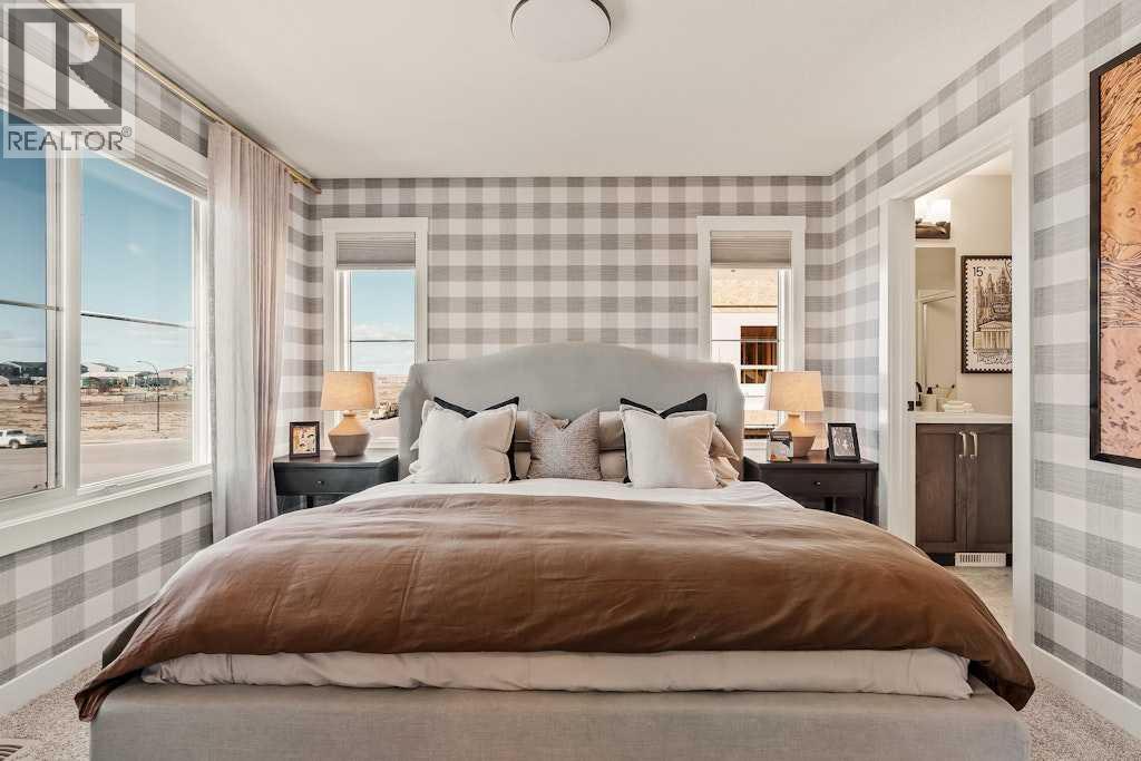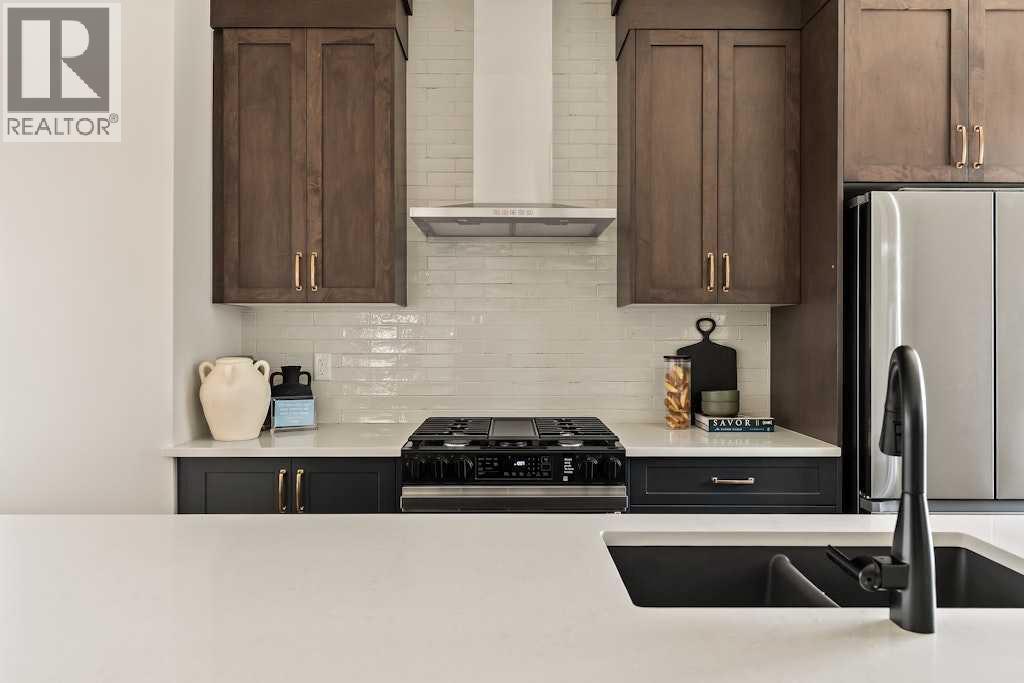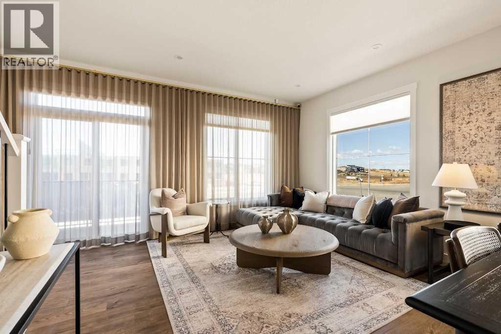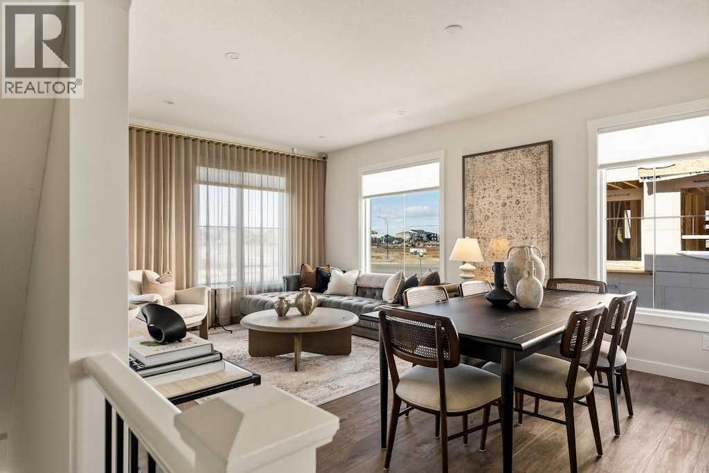 The brand new ‘Holiday’ model by Brookfield Residential is now available for immediate possession in the vibrant community of Livingston! This brand-new END-UNIT townhome blends contemporary design with everyday functionality, offering over 1,400 sqft, 3 bedrooms, 2.5 bathrooms, a ground-floor flex/office space, and a private double attached garage - all in one of north Calgary’s most desirable master-planned neighbourhoods. The open-concept main floor showcases a timeless kitchen featuring full-height cabinetry, elegant quartz countertops, a built-in hood fan and microwave, and a premium stainless-steel appliance package. The oversized island with pendant lighting provides the perfect place for casual dining or entertaining. The kitchen flows seamlessly into the bright living and dining areas, highlighted by a wall of windows that flood the space with natural light. Enjoy extra windows and additional natural light - a perk of owning the end-unit townhome! Step out onto your private East-facing balcony overlooking the green space - ideal for summer BBQs or a morning coffee while providing optimal sunshine all year long. A large laundry room with additional storage and a convenient 2-piece powder room complete the main level. The upper level features a spacious ~11’ x 12’ primary suite which includes a walk-in closet and a private ensuite with walk-in shower, offering a relaxing retreat at the end of the day. Two additional bedrooms and a full bathroom complete the upper floor, providing plenty of room for family, guests, or a home office. On the lower level, a versatile den off the entryway and private double attached garage offers endless flexibility - the perfect space for a home office, gym, or creative space. The private double attached garage keeps your vehicles warm and secure all year long. This home includes numerous upgrades such as central A/C rough-in, a BBQ gas line + gas line to the kitchen range, 42” upper cabinets, and an enhanced interior selections package. Backed by both Brookfield’s comprehensive builder warranty and Alberta New Home Warranty, this property offers complete peace of mind. Set in Livingston, a dynamic north Calgary community known for its impressive Homeowners Association, state-of-the-art Hub facility, parks, playgrounds, and convenient access to major routes - this is the perfect place to call home. If you’re looking for a low-maintenance townhome that combines style, functionality, and quality craftsmanship - welcome to the Holiday by Brookfield Residential in Livingston. *Please note: Photos are for representation purposes only, and exact finishes may vary. (id:54406)