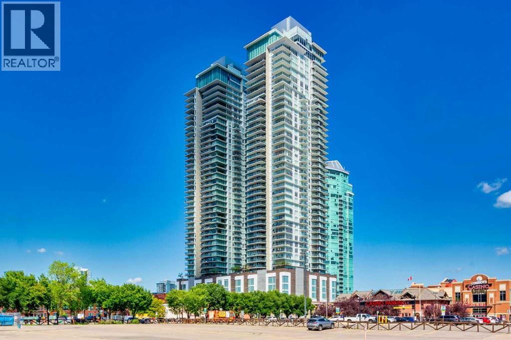 Urban luxury meets modern design in this stunning 2-bedroom, 2-bathroom suite in the iconic Guardian South Tower — Calgary’s tallest residential building.Located in the heart of the Beltline, this impeccably designed unit features floor-to-ceiling windows that frame sweeping views of the city skyline, Calgary Tower, and beyond. The open-concept layout is enhanced by custom feature walls, sleek finishes, and a bright, contemporary aesthetic.The chef-inspired kitchen boasts high-end built-in appliances, quartz countertops, and streamlined cabinetry — perfect for both daily living and elevated entertaining. Both bedrooms are generously sized and well-separated for privacy, with the primary suite offering a walk-through closet and a spa-like ensuite.Unique to this unit are two private balconies, providing extended outdoor living space to enjoy both sunrise and sunset cityscapes.Additional highlights include in-suite laundry, central A/C, and titled underground parking.Residents of The Guardian enjoy access to a fully equipped fitness centre, social lounge, workshop, and rooftop terrace — all within walking distance to Stampede Park, the Saddledome, 17th Ave, and the C-Train.This is downtown living at its finest — perfect for professionals, investors, or anyone seeking an upscale urban lifestyle. (id:54406)