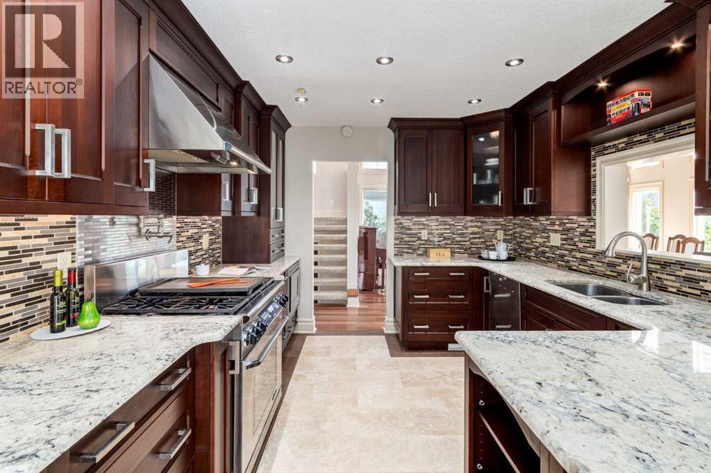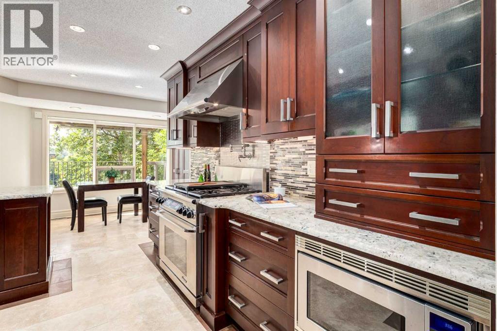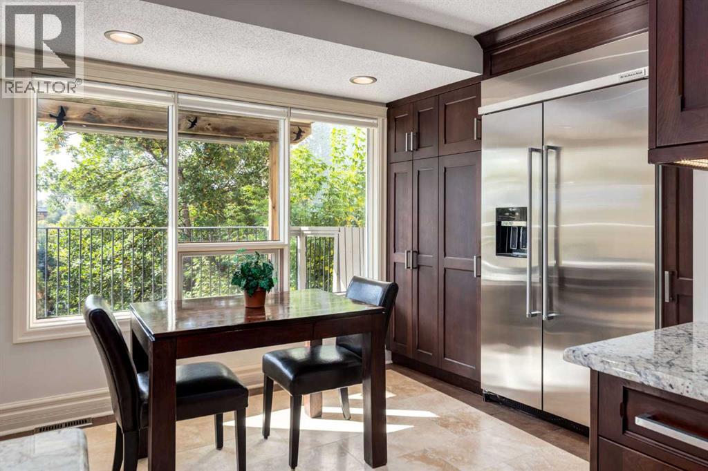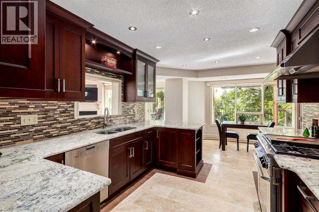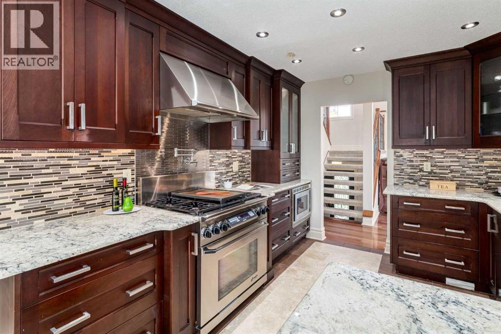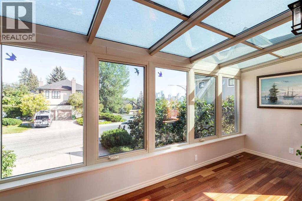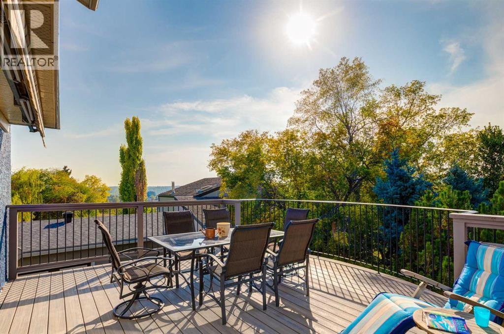 Nearly 3,000 sq. ft. of beautifully developed living space across three levels in sought-after Briar Hill. This home offers 3 bedrooms up plus a 4th in the walkout basement, along with 3 full bathrooms and a main floor powder room. The main level impresses with a spacious living room under soaring vaulted ceilings, elegant hardwood floors, a formal dining room, and a newly renovated sunroom. The gourmet kitchen features custom cabinetry, granite counters, stainless steel appliances, a walk-in pantry, and access to rebuilt composite vinyl decks on every level.Upstairs, the open-riser staircase leads to three bedrooms and two renovated bathrooms, including the primary retreat with an efficient, custom-fitted closet and a spa-inspired ensuite with steam shower. The walkout basement includes a bright recreation room, 4th bedroom, full bath, and a unique sunken storage level.What truly sets this property apart are the exceptional views—downtown skyline out front and breathtaking west exposure backing a sprawling land reserve with mountain vistas. The private, English-inspired garden features a brick patio, greenhouse, and winding pathways for an idyllic retreat. Freshly painted throughout, this home also offers a rare attached two-car garage and spacious driveway.All within walking distance to the LRT, schools, parks, pathways, and minutes to SAIT, the U of C, downtown, and shopping—this is a tranquil inner-city oasis not to be missed. (id:54406)