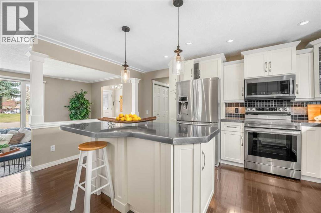 *Open House, Saturday May 2, 1-3pm* Lake Adams Green is an incredible location in Lake Bonavista! Located in a quiet little enclave facing a green space, this is the type of location you’ve been waiting for. Offering almost 2,400 square feet of total space on the main & lower levels, this home features beautiful renovations & sits on a prime lot. With 4 bedrooms & 3 full bathrooms, this home caters nicely to large or growing families. The main area features an open kitchen & dining area that flows nicely into the step-down living room. All three rooms tie together beautifully here. The renovated kitchen is smartly designed with a centre island & loads of cabinet & prep space. Stainless steel appliances include a brand new 2026 oven range. There are 3 main-level bedrooms, with the primary featuring a full, renovated ensuite with a walk-in shower. The main family bathroom is also renovated. The fully developed basement includes a 4th bedroom, full bathroom with a newer shower, rec/entertainment space & a great laundry room. There is also a large storage space, which is very convenient. So many upgrades & updates here, including air conditioning, insulation, roof shingles, eavestroughs, some windows, Rinnai tankless water heater, furnace, new paint, outdoor LED lighting & more. This is a rare front-garage bungalow, which is nice because it affords you a driveway for additional parking & results in a large backyard with full span from side to side. There is a parking pad out here for additional vehicles & access from the back alley. The huge storage shed can store all of your patio furniture, lawn tools & more. The front, brightly lit garage is heated & features a newer acrylic garage floor, easily fitting 2 large vehicles. Lake Adams Green is perfectly located, with ideal access to the lake & Fish Creek Park. The Lake Bonavista Promenade, Southcentre Mall & Avenida Shoppes are located nearby for all of your shopping needs. Walk to the C-Train station in minutes, taking you right downtown. For recreation, you are close to the Trico Centre & Fish Creek Park, with 100 km of walking & bike paths. This property checks all of the boxes: incredible lot, renovated home, quiet street & fantastic community! Call for a private showing. (id:54406)