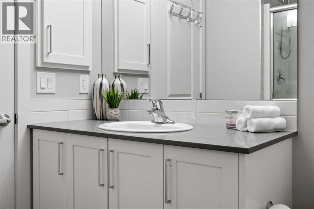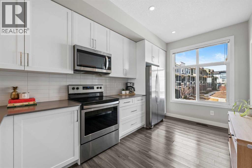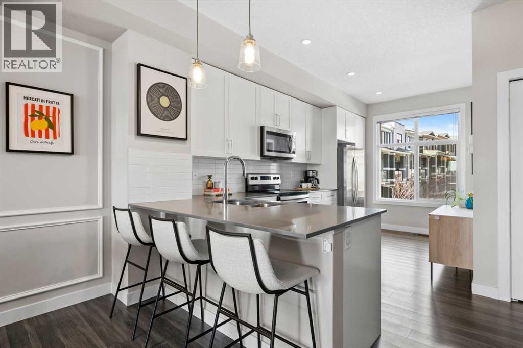***OPEN HOUSE Saturday Mar 28th 12pm-3pm***This beautifully designed town home effortlessly combines modern style with everyday comfort. Featuring an open-concept layout, 9’ ceilings, and an abundance of natural light, the main floor feels bright, spacious, and inviting throughout. You’ll appreciate the seamless flow of laminate flooring, a convenient powder room, and a generous front closet. The contemporary kitchen is both functional and stylish, showcasing crisp white cabinetry, quartz countertops, and stainless-steel appliances. A welcoming breakfast bar offers the perfect spot for casual dining, while the adjacent dining area easily accommodates a full six-person table. The spacious living room is ideal for both relaxing and entertaining, highlighted by a stylish feature wall that adds a touch of sophistication and warmth. Step outside to your private south-facing balcony, where you can enjoy sunny afternoons and effortless summer BBQs. Upstairs, you’ll find a well-designed dual primary layout, with each bedroom featuring its own private ensuite and ample closet space—perfect for guests, roommates, and kids. Adds privacy and hides the mess! A large linen closet and convenient stacked washer and dryer complete the upper level. Additional highlights include air conditioning for year-round comfort, and the convenience of a double attached tandem garage. Out back the unit has views of the courtyard! Ideally located close to the YMCA, South Health Campus, schools, restaurants, theatres, and shopping, with quick access to both Deerfoot and Stoney Trail—making any commute a breeze. With low condo fees of just $313.82/month, this move-in ready home offers exceptional value and lifestyle. A must-see opportunity you won’t want to miss. (id:54406)