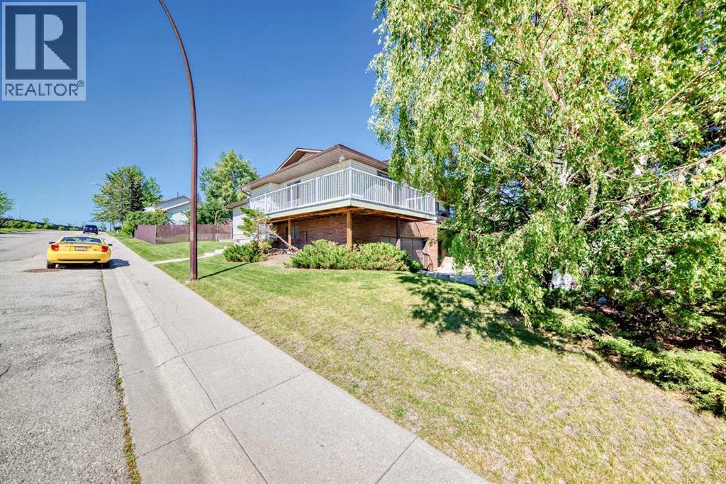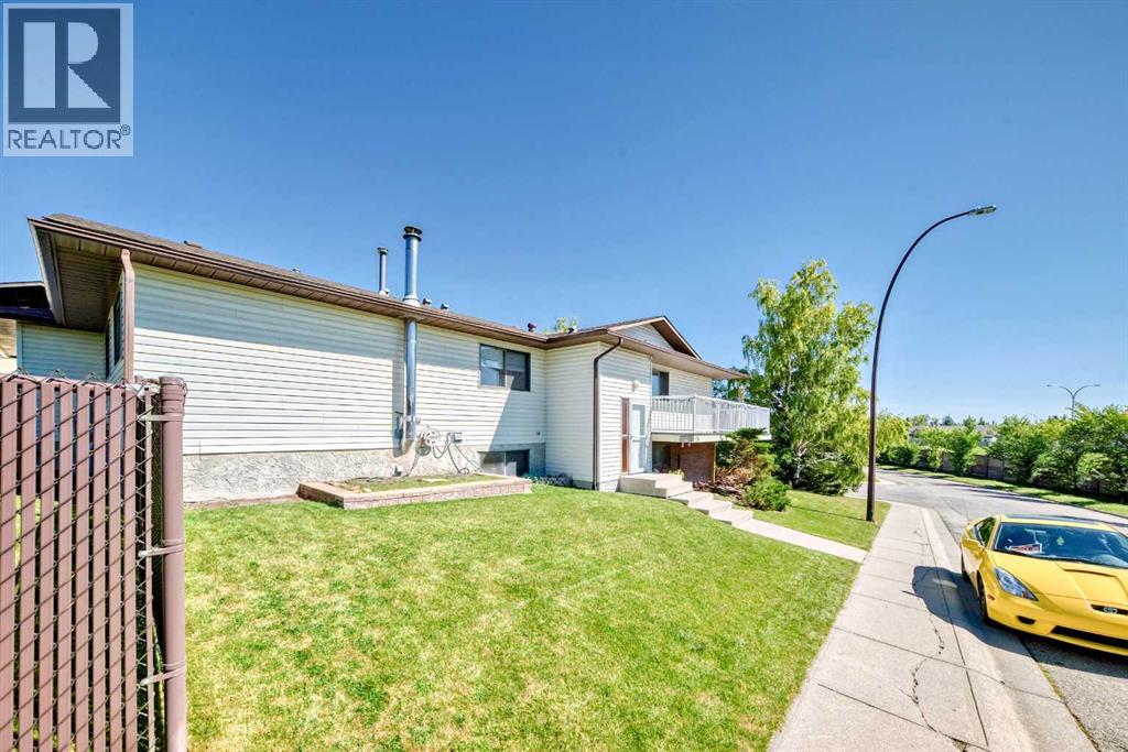Beautiful semi-detached property in the heart of Ranchlands. Offering 1,954.4 sq. ft. of developed living space (main floor: 1,342.5 sq ft, full finished bsmt: 611.9 sq ft). This property of 2,623.3 sq ft total sits on a huge corner lot of 6,802 sq ft. Two car garage attached extra wide (20x25) with plenty of space for your tools and machinery, oversized concrete driveway for additional parking for at least 4-6 cars more or RV/boat. Located on a large corner lot on a very quiet street. The large corner lot is very private, no other properties in front, so you will be able to park on the entire corner more vehicles. Main floor offers 3 good size beds each one with closet, 1.5 baths, laundry room with own sink, warm and sunny eat in kitchen with granite counter, spacious living room, and dining room with large windows that brings natural light throughout the day and sliding doors to a wrap around lovely balcony with absolute gorgeous mountain views. Roof is 8 years. Downstairs is bright full of natural light, fully finished with spacious cozy family room with limestone fireplace, another bed with closet or office and full bath with shower. This level includes storage and direct access to the attached 2 car garage extra wide. The fully metal and wooden fenced large, landscaped backyard is lovely with mature trees, lilac, apple trees, cherry trees..... there's back alley access to the backyard. This home is within walking distance to Crowfoot Ctrain station, schools, parks, shopping centre... The garage door and motor will be replaced by brand new before possession day. This is a fantastic property in an unbeatable neighborhood!! (id:54406)