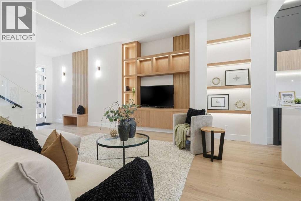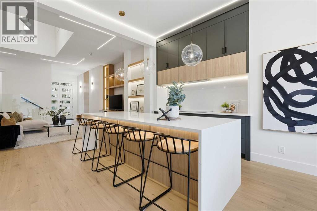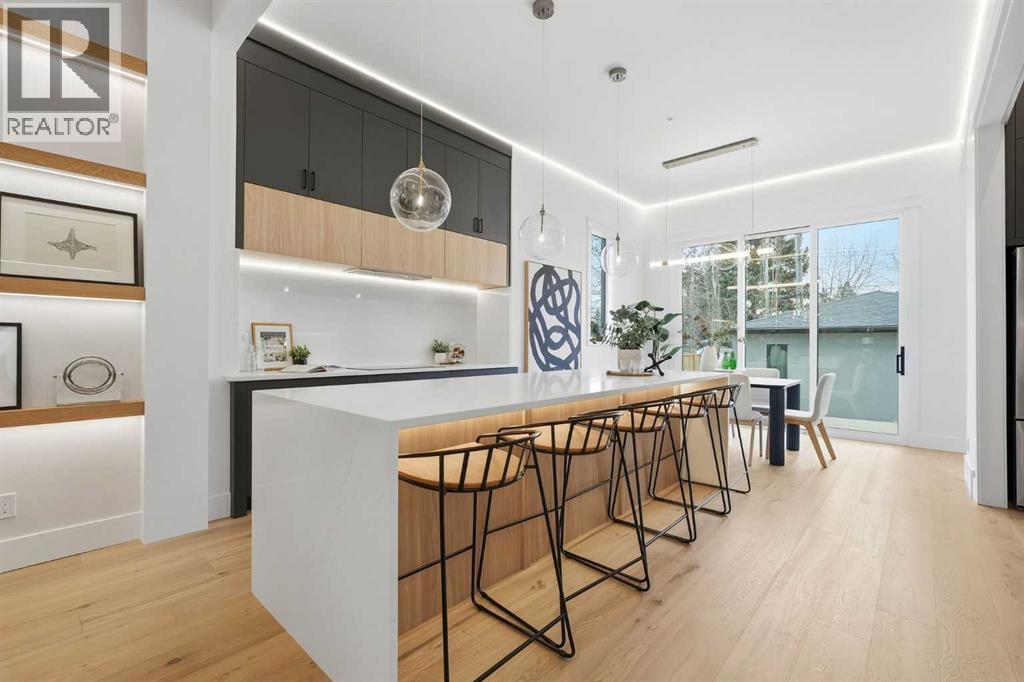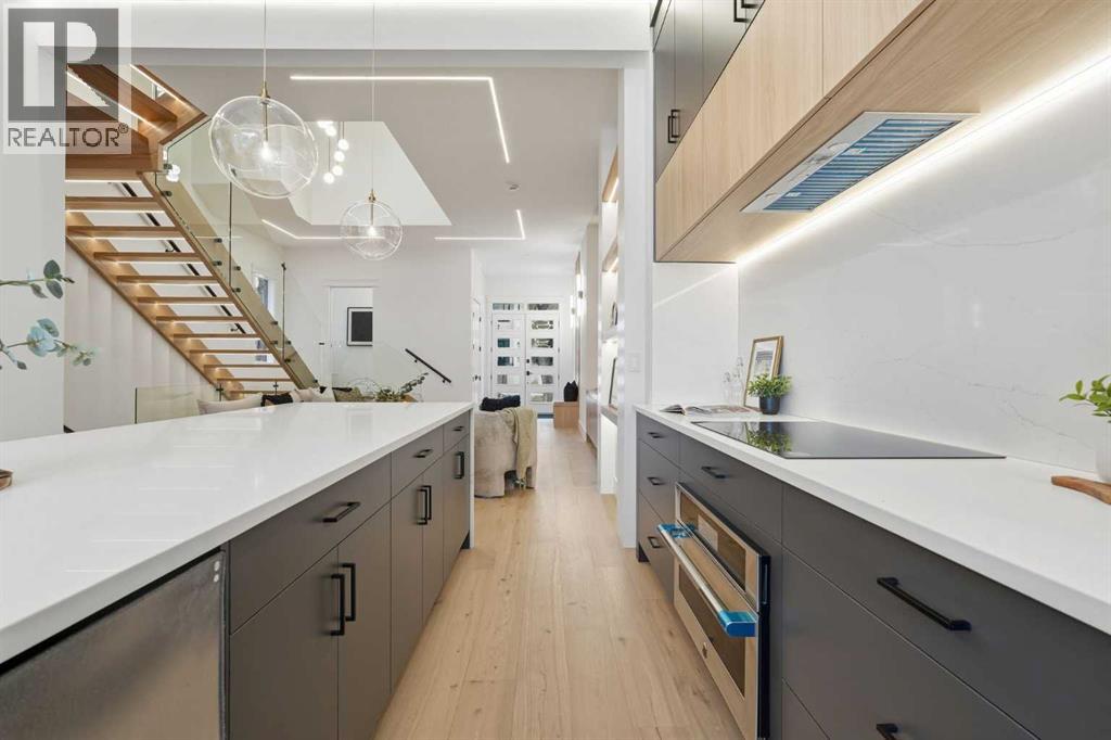 OPEN HOUSE SATURDAY, FEBRUARY 7TH FROM 2-4 PM & SUNDAY, FEBRUARY 8TH FROM 11 AM - 1 PM. Stunning new home with full Smart Home capability, built by Libra Homes situated on a 27.6’x120’ lot in the heart of North Glenmore Park, offering 3+1 bedrooms & nearly 3000 sq ft of luxurious living space. The open & airy main level presents wide plank hardwood floors, lofty ceilings & stylish light fixtures, showcasing a spacious living room with built-ins that seamlessly transitions into the unique dual style kitchen that’s perfect for the entertainer & tastefully finished with quartz counter tops, island/eating bar & the convenience of a built-in oven, induction cooktop stove plus a gas stove with pot filler, 2 rangehoods, full sized fridge & a second smaller built-in paneled fridge with 2 drawers, making prep work & cooking for large gatherings effortless. A bright dining area provides ample space to host family & friends. A private office is located just off the foyer, perfect for a home office setup & a 2 piece powder room completes the main level. Ascend the open riser staircase to the second level that hosts 3 bedrooms, a 5 piece main bath & a well-designed laundry room with sink & storage. The primary retreat boasts a to-die-for walk-in closet & opulent 5 piece ensuite with dual sinks, relaxing freestanding soaker tub & oversized glass enclosed shower. Basement development lends itself to game or movie night, featuring a family/media room with built-in entertainment centre, cozy fireplace, built-in speakers & wet bar with plenty of room for a second seating area. A fourth bedroom & 3 piece bath with rejuvenating steam shower are the finishing touches to the basement. Other notable features, roughed-in A/C, LED lighting throughout, large back deck & double detached garage with enough space to park a larger vehicle. The location is incredibly convenient, close to Glenmore Athletic Park, Lakeview & Earl Grey Golf Clubs, schools, shopping, public transit & effortless access to Glenmore & Crowchild Trails. (id:54406)