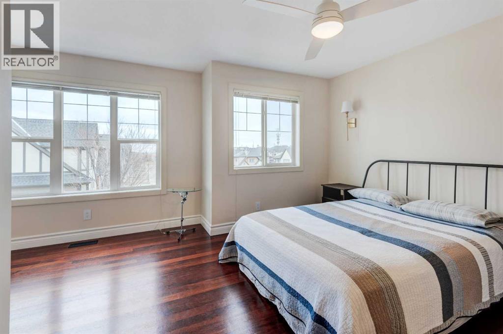 Welcome home to this 4-level split end unit townhome offering a unique & functional layout with great views! This bright & open home features a main living area with soaring 12.5-foot ceilings, large windows that flood the space with natural light & a gas fireplace with a floor-to-ceiling stone façade. The island kitchen is finished with white quartz countertops & white cabinetry & opens to a generous dining area overlooking green space & a playground. This home features a desirable dual primary bedroom layout, with both bedrooms offering full ensuites, walk-in closets, & cozy seating nooks. The main primary retreat also enjoys views of the pond. The fully finished fourth level provides a versatile space ideal for a family room or home theatre, along with plenty of additional storage. Exotic Merbau hardwood flooring runs throughout the home, adding warmth & character. Enjoy the low-maintenance outdoor space with composite decking & a fully fenced yard. Complete with a double attached garage. Ideally located with easy access to Stoney Trail & Macleod Trail, & close to shopping, schools, playgrounds, coffee shops, & everyday amenities. Just minutes from Fish Creek Park. You’ll love living here! (id:54406)