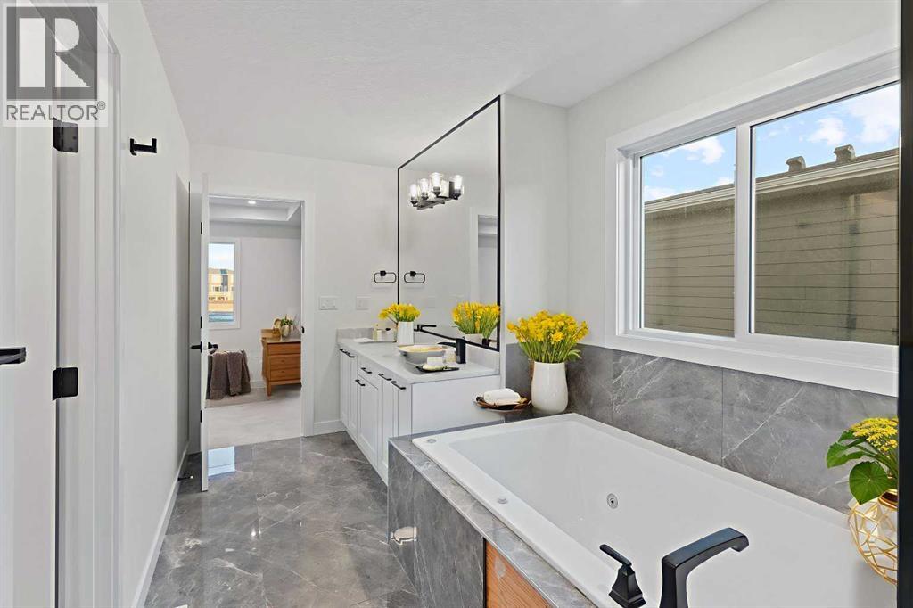 Welcome to your ideal family retreat! This thoughtfully designed detached home features 5 bedrooms and 4 bathrooms, offering the perfect balance of modern comfort and classic appeal in the desirable Air Ranch community. The main floor showcases an open-concept kitchen with stainless steel appliances, quartz countertops, a large island, walk-through pantry, and abundant cabinetry. Spacious living and dining areas create a seamless flow, ideal for entertaining or everyday family living. Also on the main level is a generous office that can easily serve as a fifth bedroom, along with a stylish 4-piece bathroom and a functional mudroom.Upstairs, you’ll find four well-appointed bedrooms and a large flex space, all filled with natural light. The primary suite offers a spa-inspired ensuite and walk-in closet, while three additional updated bathrooms with modern fixtures provide comfort and convenience for the whole family. Located close to schools and recreational amenities, this home delivers both tranquility and everyday convenience. Don’t miss your chance to make this exceptional property your own! (id:54406)