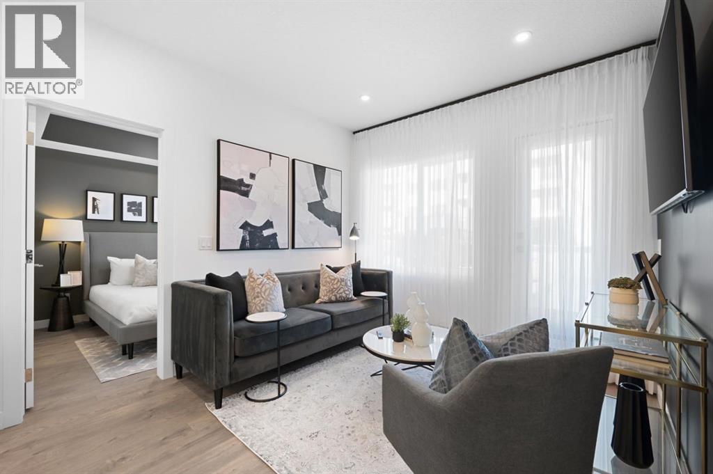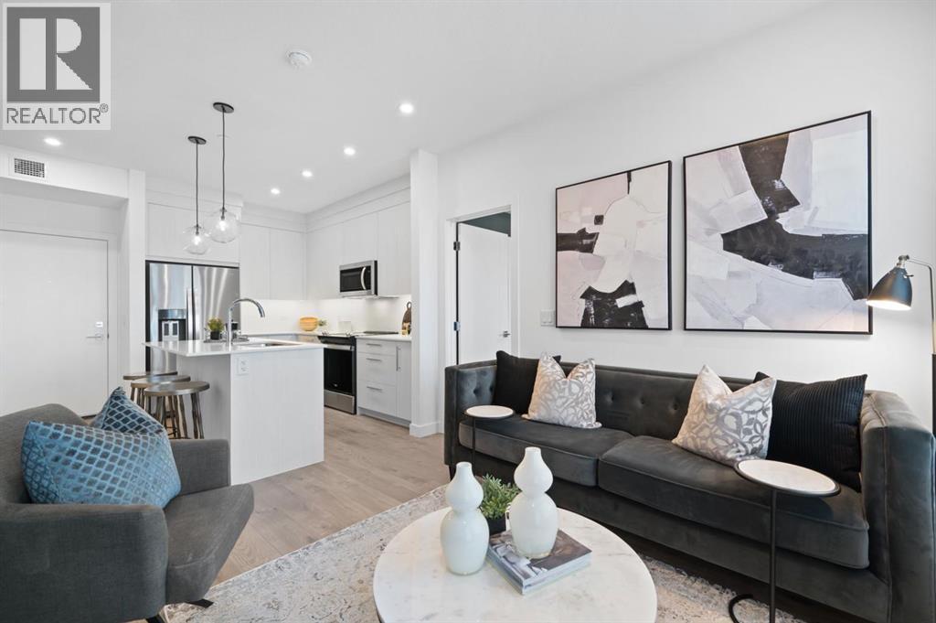 Welcome to Lockwood, where comfort meets convenience in this stunning 2-bedroom, 2-bathroom, plus den, unit with a titled parking stall, located in the vibrant and fast-growing community of Chelsea in Chestermere. Surrounded by parks, playgrounds, and scenic walking trails—and just moments from Chestermere Lake—this home is perfectly positioned for both relaxation and adventure. Enjoy easy access to local amenities like Chestermere Station, Chestermere Crossing, and an array of shopping and dining options, all just minutes away. Step inside to experience a thoughtfully designed open-concept layout featuring an oversized east-facing balcony that floods the living space with natural morning light and offers serene views. Every detail has been carefully curated, from the luxurious vinyl plank flooring and high ceilings, to the chef-inspired kitchen complete with full-height soft-close cabinetry, sleek stainless steel appliances, and an elegant eat-up bar topped with quartz countertops—ideal for casual meals and entertaining. The primary bedroom, features a generous walk-through closet and a private 3-piece ensuite. A second bedroom, perfect for guests or a home office, and a stylish 4-piece main bathroom complete the space. Beyond your private residence, enjoy a wealth of on-site amenities including a fully equipped fitness centre, owners’ lounge, bike storage, and more—all designed to complement an active and social lifestyle. This bright and modern home is move-in ready, offering a premium opportunity to embrace the TRUMAN lifestyle in one of Chestermere’s most exciting new communities. *Photos shown are of a similar unit (id:54406)