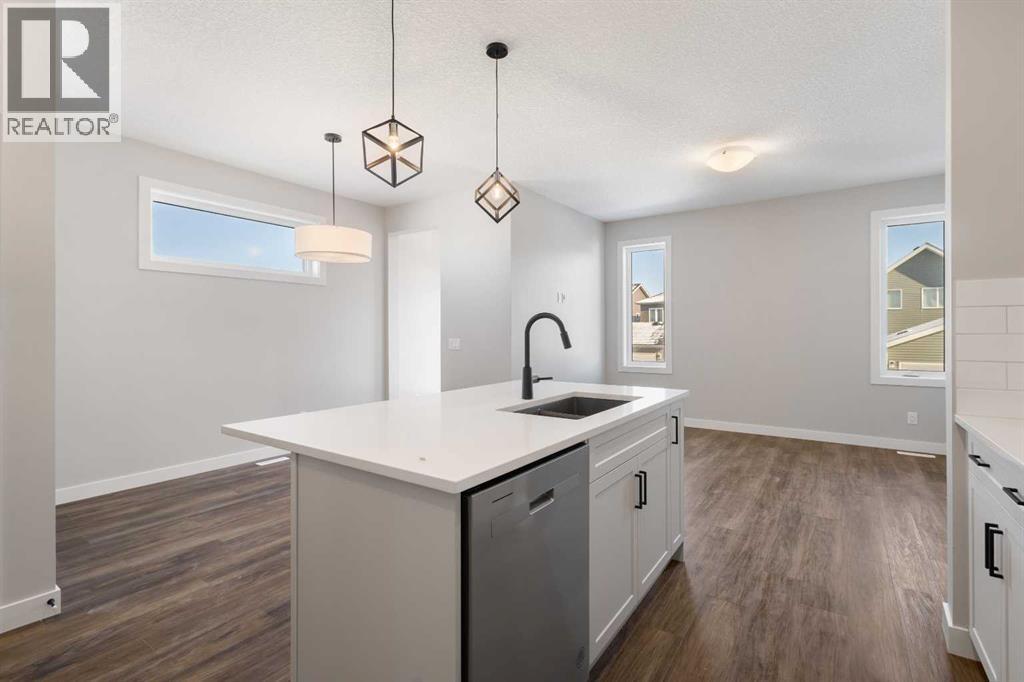 Introducing a beautifully appointed 2025-built residence in Moraine, one of NW Calgary’s emerging communities. Designed with both elegance and versatility in mind, this home offers refined finishes, thoughtful separation of space, and long-term flexibility for growing families.The main level is defined by 9-foot ceilings, expansive windows, and a seamless open-concept layout that balances comfort with modern sophistication. Luxury vinyl plank flooring anchors the space, while the designer kitchen serves as a striking focal point—featuring quartz countertops, full-height cabinetry with crown detailing, premium stainless steel appliances including a gas range, and a generous pantry for effortless organization. The dining and living areas flow naturally together, creating an inviting environment for hosting or everyday living.A rare and valuable feature, the main-floor bedroom offers exceptional flexibility—ideal for guests, extended family, or a private home office.Upstairs, a centrally positioned bonus room provides a natural separation between the secondary bedrooms and the primary retreat. The primary suite is spacious and serene, complete with a walk-in closet and a well-appointed 4-piece ensuite. Two additional bedrooms, a full bath, and a dedicated upper-level laundry room complete this thoughtfully designed floor plan.The unfinished lower level presents outstanding potential, offering 9-foot ceilings, a separate side entrance, additional furnace, and rough-ins for laundry, bathroom, and kitchen—ready for future customization.Outside, the west-facing backyard offers open skies and afternoon sun, with a double parking pad in place for a future detached garage. Conveniently located near schools, playgrounds, shopping, major amenities, and quick access to Stoney Trail and Deerfoot Trail, this home blends lifestyle convenience with modern design.A rare opportunity to own a brand-new home offering space, flexibility, and elevated finishing in Northwest Ca lgary. (id:54406)