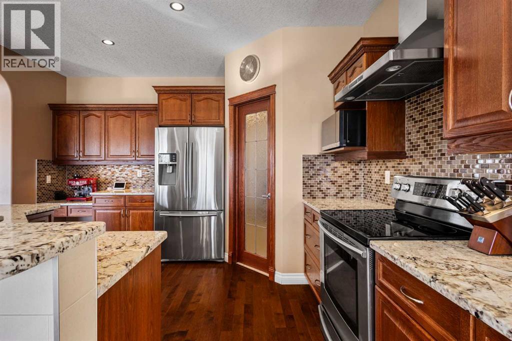 Welcome home! Experience refined living in the exclusive and desirable neighborhood of Hanson Ranch. SET on an EXTRA-DEEP, SE-facing WALKOUT LOT BACKING DIRECTLY ONTO RAVINE offering PRIVACY and a true connection to nature. ALL NEW ROOF, fresh exterior paint, professionally sealed driveway, and many other updates were completed in 2025. Additional highlights include CENTRAL A/C, OVERSIZED DOUBLE GARAGE with plenty of built-in storage, NAT GAS FIREPLACES, and expansive windows with year-round UNOBSTRUCTED NATURE VIEWS on all three levels. The main level is bright and open, featuring hardwood floors, a spacious living room with a fireplace, and large windows showcasing the ravine views. The Chef's dream kitchen flows seamlessly into the dining and living areas, offering granite countertops, stainless steel appliances, ample cabinetry, and a large island—perfect for everyday living and entertaining. Adding convenience is a MASSIVE walk-through pantry and mudroom/laundry area that leads to the oversized insulated garage. Upstairs features a VAULTED bonus room with a cozy FIREPLACE supplemented by LUTRON enabled dimmers for added ambience. Wake up every morning to picturesque NATURE VIEWS in the primary suite which connects to a large walk-in closet and 5-pc ensuite. Completing the upper floor are two bright secondary bedrooms and a spacious full bath. Experience the perfect multi-generational setup in this bright, illegal suite walkout basement. Highlights include a spacious rec room, gym area, and a 4th bedroom serviced by a full bath. The kitchenette is equipped with a stove and hood fan, with a mechanical room already roughed-in for a stackable laundry set. With its high ceilings and separate walkout entrance, this non-conforming suite offers privacy and comfort for extended family or long-term guests. Outdoors is where this property truly shines. The EXTREMELY RARE 164-FT DEEP LOT backs onto natural reserve with no rear neighbours, offering privacy, mature trees, and a backdrop that changes beautifully with the seasons. The maintenance free deck & patio are ideal for summer evenings and weekend gatherings, while the yard provides space for kids, pets, or quiet relaxation. This is a MUST-SEE property that won't last! (id:54406)