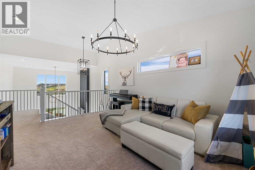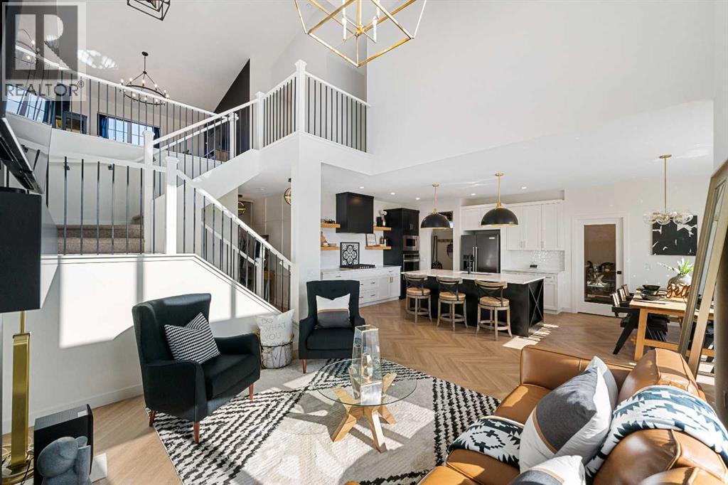 Welcome to 159 Brander Ave — where timeless design meets modern luxury.This stunning custom-built home impresses from every angle, showcasing designer finishes, over $150K in thoughtful upgrades, and a layout perfectly tailored for both family living and entertaining.Step inside and feel the sense of space and light — vaulted and soaring 20-foot ceilings create a breathtaking first impression, while expansive windows flood the home with sunshine and frame beautiful mountain views. The modern farmhouse-inspired exterior blends classic charm with sleek contemporary touches for unforgettable curb appeal.At the heart of the home lies a chef’s dream kitchen, complete with a large working island and a generous walk-in pantry that can easily be converted into a butler’s pantry for added convenience.Upstairs, the primary suite offers a private retreat, thoughtfully separated from the kids’ bedrooms. A versatile bonus room provides the perfect space for a playroom, media lounge, or home office — whatever your lifestyle requires.The bright, open basement is ready for your personal touch, featuring tall 10ft ceilings and oversized 3-foot egress windows — the ideal foundation to create your dream rec room, gym, guest suite or whatever your heart desires.Car lovers will appreciate the oversized double garage with soaring ceilings, allowing space for a lift to easily transform it into a four-car garage. Plus, the smart lot design offers potential RV parking without sacrificing your sunny south-facing backyard — perfect for outdoor entertaining and relaxation.Located in Langdon, this home offers the best of both worlds: small-town charm with big conveniences. Exciting new amenities — including a brand-new strip mall and McDonald’s — are just minutes away, along with local schools and everyday essentials. And with a commute to Calgary similar to that from South Calgary, you’ll enjoy more home, more value, and more lifestyle — without the city stress.If you’ve been s earching for a home that blends luxury, functionality, mountain views, and exceptional value in a growing community, 159 Brander Ave is the one you’ve been waiting for. (id:54406)