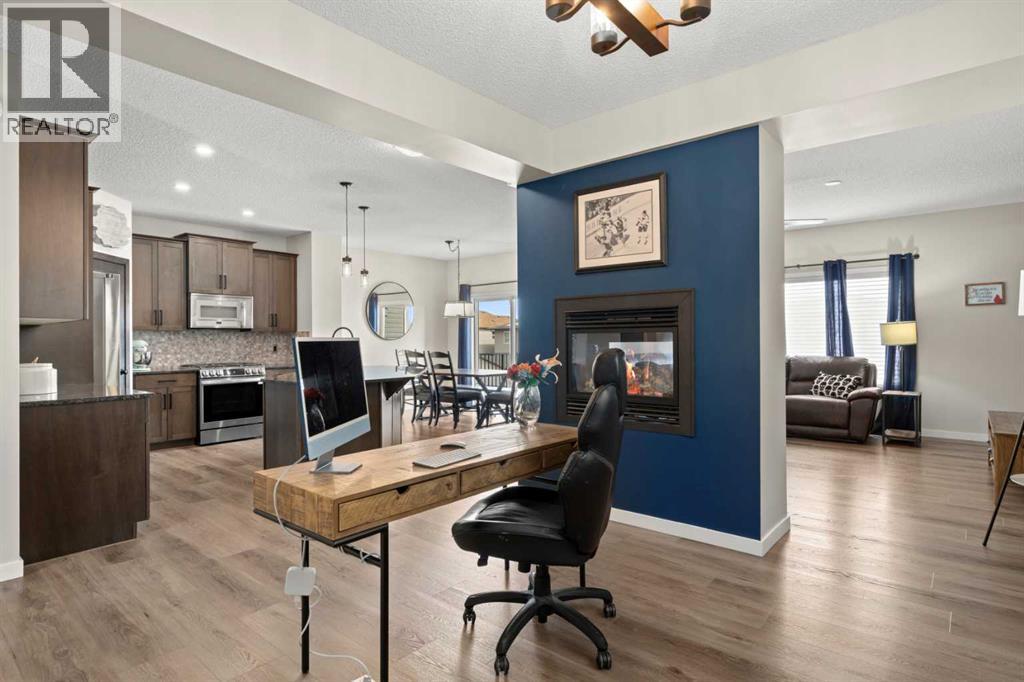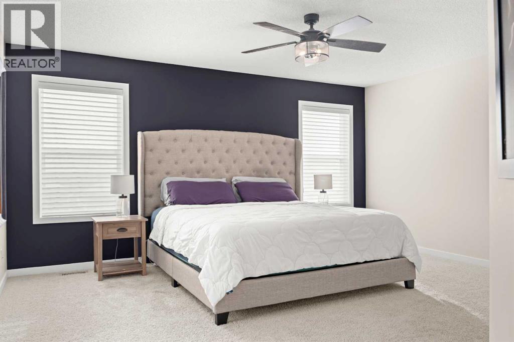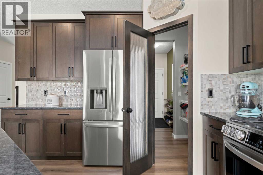 5 BEDROOMS. WALKOUT. SEPARATE LOWER LEVEL. MEANINGFUL UPGRADES. This five-bedroom walkout in Reunion offers over 3,300 square feet of finished living space across three levels. Updated where it counts and maintained with meticulous care, this home is complete, functional, and ready. The 2024 roof carries one of the highest available hail resistance ratings, a meaningful upgrade in this market. The heated garage goes beyond parking, with high ceilings, tire racks, and overhead shelving that keep seasonal items, sports equipment, and gear organized. Central air conditioning, a gas water heater, and a water softener keep the home comfortable year round. Inside, the main floor opens with an open-to-above foyer fitted with an automatic blackout blind, a small detail that makes a noticeable difference on hot summer afternoons. Nine-foot ceilings stretch across the rest of the level. The kitchen is anchored by granite countertops, a large centre island with bar seating, a gas range, and a walk-through pantry that connects directly to the mudroom. Stainless steel appliances have been updated within the past year, and additional pot lights brighten the space. A breakfast nook off the kitchen opens onto the balcony, equipped with a gas line for the BBQ. The mudroom connects directly to the garage and features a sink and built-in bench seating with storage underneath. New luxury vinyl plank flooring runs throughout the main level, and select windows are fitted with custom coverings. Upstairs, the bonus room offers a flexible space for a media room, playroom, or casual family lounge. The primary bedroom has a walk-in closet and an ensuite with dual vanities, a soaker tub, and a separate shower. Two additional bedrooms, a main bathroom with updated countertop and cabinetry, and upper-level laundry with a brand new washer and dryer complete this floor. The lower level adds nearly 1,000 square feet of fully finished living space, complete with two bedrooms, a den, a full 4-piece b athroom, a gas fireplace with blower fan, and a separate laundry hookup for a future washer and dryer. With walkout access to the backyard, this illegal suite functions independently. Whether used for extended family, older teenagers, long-term guests, or generating additional income, it offers flexibility that is increasingly hard to find. The backyard reflects the same level of care. A generous concrete pad, walkways, and steps along both sides of the home create a clean and functional flow from front to back. The covered patio below has been retrofitted with weather shielding that redirects rain to the sides, allowing the space to be used comfortably even on stormy days. Reunion is one of Airdrie's most established communities. Herons Crossing School is walkable, Genesis Place recreation centre is nearby, and Nose Creek Park and its pathways are woven throughout the neighbourhood. QE II keeps Calgary within easy reach. This is a home that has been lived in with care and maintained with intention. (id:54406)