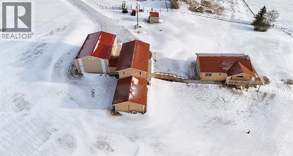 Exceptional 24.02-acre property with breathtaking 360° views of the countryside, sunrises, sunsets, and the Rocky Mountains. Fully fenced and gated, this former licensedcommercial operation features extensive concrete walkways, patios, and aprons. A year-round headwater spring feeds three connected ponds with agricultural water rights. Thehome offers a wrap-around deck, walkout lower level, hardwood floors, 3 bedrooms,multiple baths, a Vermont Castings wood-burning heater, spacious rec room, ample storage and radon mitigation. A well-designed fully PERMITTED COMMERCIAL COMPLEX (cost to build today $800k) includes a 2-storey COMMERCIAL CODE office/studio building, PLUS single-storey attachedwarehouse/storage area. These are connected via a reception/foyer to a HUGE MULTI PURPOSE WORKSHOP with 12’x12’ overhead door. All are extensively serviced with hydronic heating, heated concrete floors, A/C (select buildings), Vacu-Flo, security and intercom systems, hail-resistant roofing, and robust utilities. The well and 3,000-gallon cistern has softened and distilled water. There are multiple hydrants, a stock waterer, annually maintained septic system, grid-tied SOLAR system ($75k) with surplus power credits ($3,200 in 2025), and 22 kVAstandby diesel generator. Ideally located with quick access to Calgary, Okotoks and High River, also on a school busroute, with hayed fields and excellent potential for subdivision, secondary suite, or home-based business (County approval required). (id:54406)