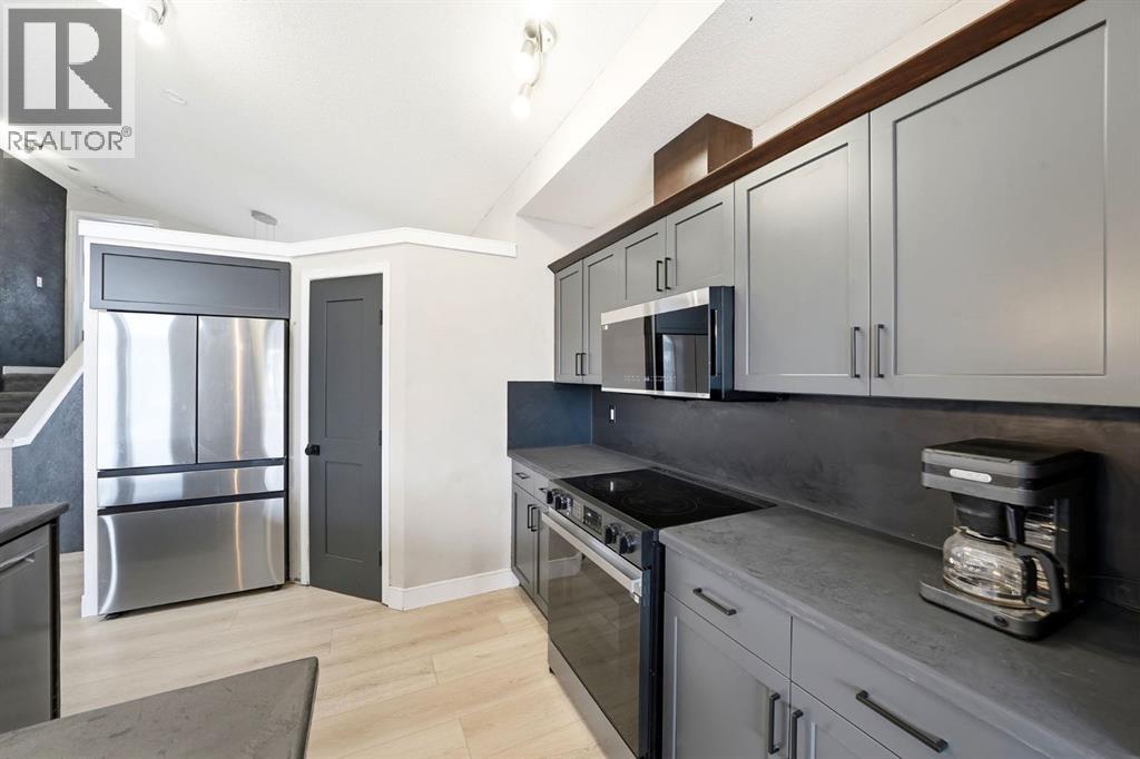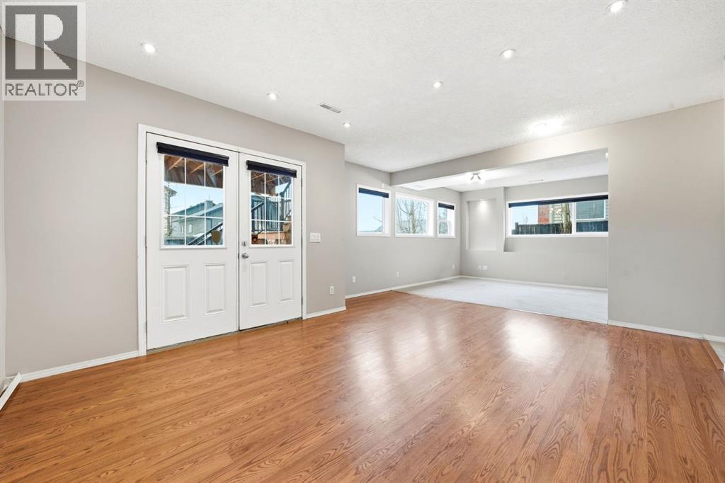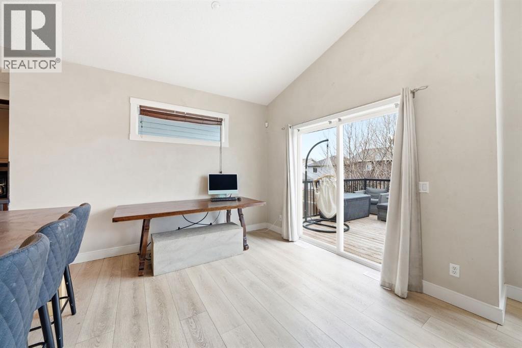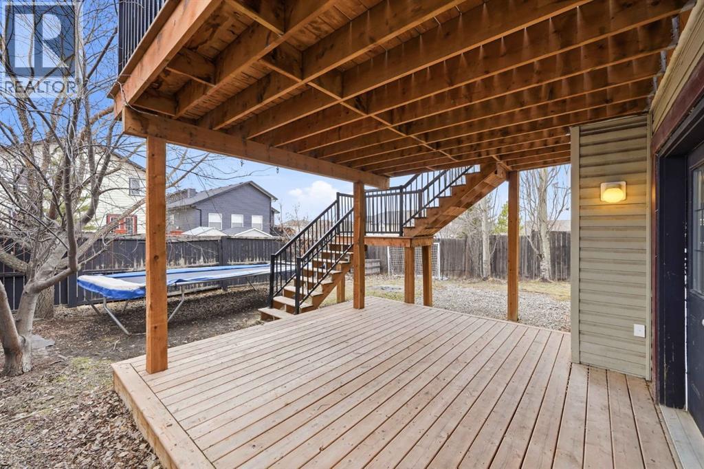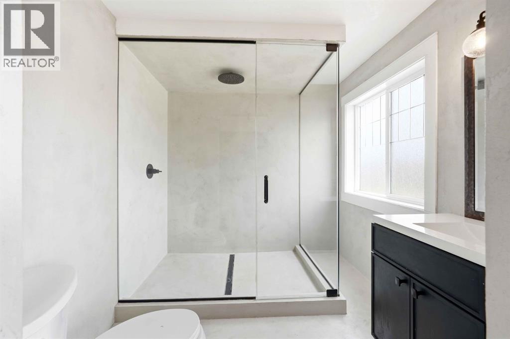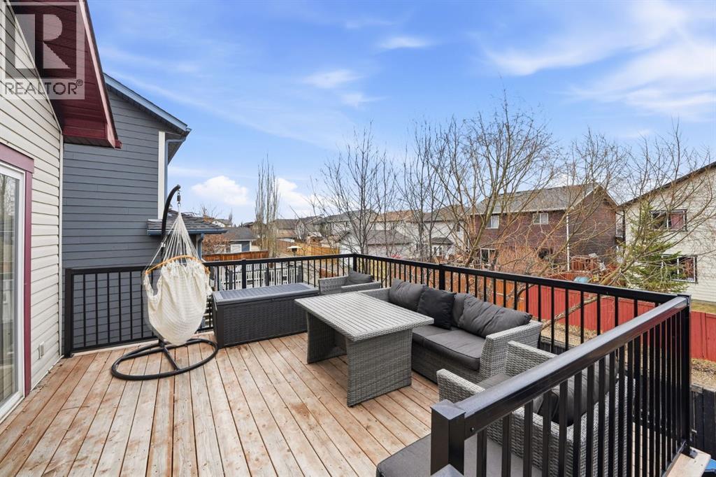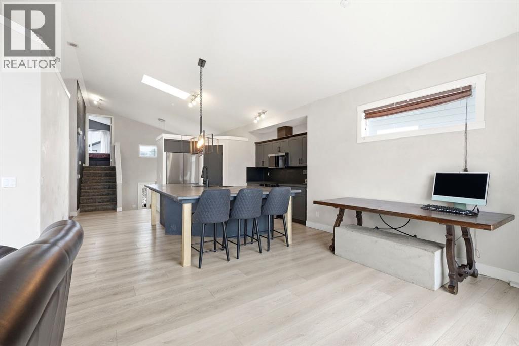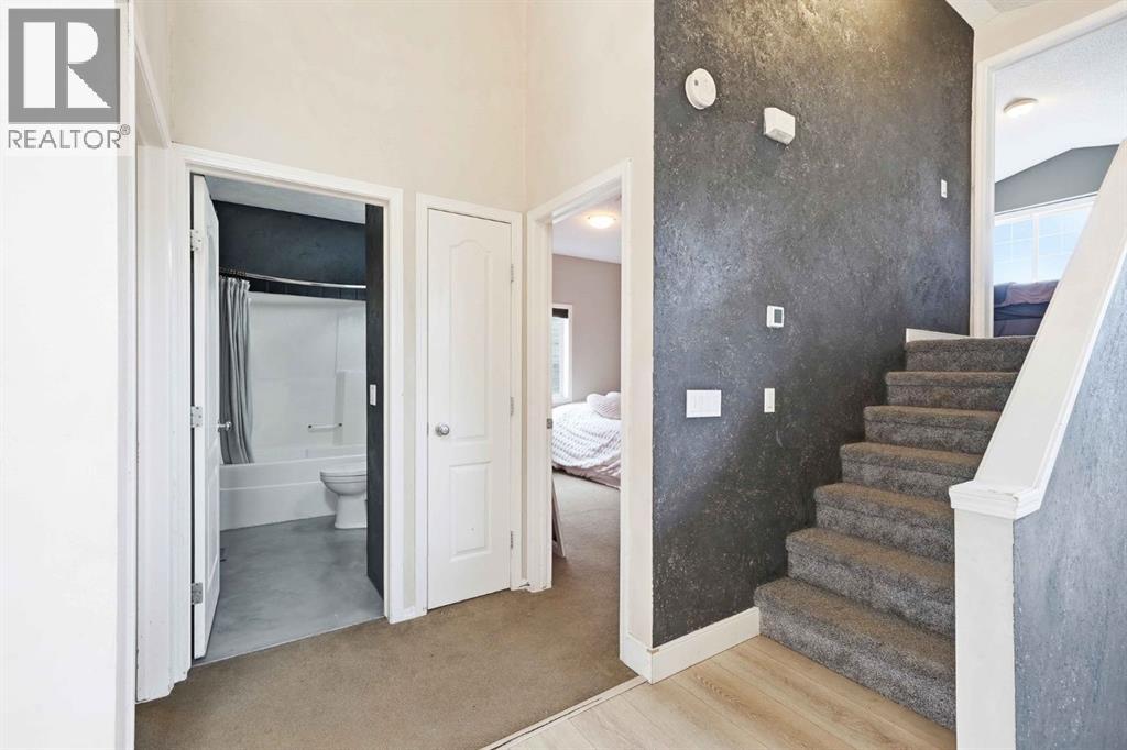 Welcome to this beautifully updated modified bi-level offering over 2,500 sq ft of developed living space in the established community of Thorburn in Airdrie, perfectly blending style, function, and location on a quiet close in a highly desirable neighbourhood.Step inside to a spacious foyer with soaring vaulted ceilings that continue throughout the entire home, creating an airy, open feel paired with luxury vinyl plank flooring completed in recent updates. The main level opens into a bright, open-concept living space designed for everyday living and entertaining. The recently updated kitchen features a massive microcement countertop and matching backsplash, flowing seamlessly into the south-facing dining area and spacious living room filled with natural light. From the kitchen, step out onto a large elevated deck with stair access to the walk-out basement and backyard, creating excellent indoor-outdoor flow perfect for hosting, gatherings, and summer enjoyment. The living room is anchored by a striking Venetian plaster feature wall with custom niche, while Venetian plaster detailing continues throughout the main level.This level offers two generously sized bedrooms and a recently renovated 4-piece bathroom, fully finished in sleek microcement for a clean, refined, modern look.The primary suite is located on its own upper level, providing privacy and separation from the main living space. It includes a walk-in closet and a fully updated 3-piece ensuite finished entirely in microcement, creating a tranquil, spa-like feel.The fully developed walk-out basement expands the home’s living space with two additional bedrooms, a large recreation room, and a dedicated family room featuring another Venetian plaster feature wall. A third updated 4-piece bathroom, convenient basement laundry, and fresh paint throughout complete this level.Additional features include central air conditioning and a functional layout suited for modern family living. The heated double attac hed garage adds comfort and convenience.Step outside to a private backyard with direct access from the walk-out level, ideal for entertaining or relaxing, with plenty of space for kids, pets, or summer evenings outdoors.Located close to parks, playgrounds, and pathways, and within walking distance to Good Shepherd School, Meadowbrook Middle School, and Bert Church High School, as well as nearby Genesis Place, East Lake Park, and shopping amenities, this home offers exceptional convenience. Everyday essentials, recreation, and commuting routes are all easily accessible, making this an ideal location for families seeking both lifestyle and practicality in one.A rare opportunity to own a beautifully reimagined, design-forward home in one of Airdrie’s most sought-after communities! (id:54406)