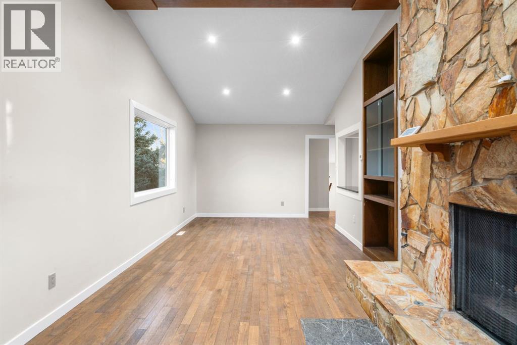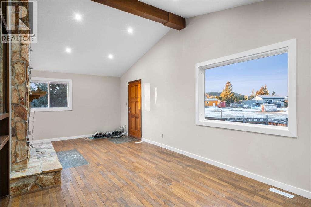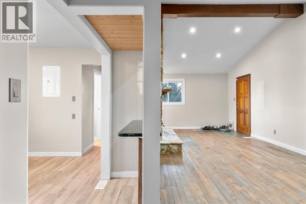 Immediate possession available! Welcome to 17 Gibson Road, a rare opportunity to own a peaceful 1.25-acre property surrounded by rolling hills, mature trees, and mountain views. This charming acreage offers the perfect blend of privacy, space, and convenience, set in a quiet community of Benchlands just minutes from Cochrane and within easy reach of Calgary. The home is warm and inviting, highlighted by a striking floor-to-ceiling stone fireplace that anchors the main living area and creates a cozy focal point. Vaulted ceilings, exposed wood beams, hardwood flooring, and large windows fill the space with natural light while framing picturesque views of the surrounding landscape. The updated kitchen features crisp white cabinetry, new stainless steel appliances, dark countertops, a farmhouse sink, and a modern tile backsplash, flowing into a bright dining area ideal for everyday living or hosting family and friends. The main level offers a comfortable primary bedroom, a full bathroom, and a welcoming foyer, providing a functional layout for both families and those seeking main-floor living. The fully developed lower level expands the home’s versatility with an additional bedroom, a dedicated office, a full bathroom, and generous storage, along with a large utility and laundry area. The roof to the home and both detached garages was redone in 2025. Outdoors, the expansive deck invites you to relax, entertain, and take in the peaceful surroundings. The 1.25-acre parcel offers open space, mature evergreens, fenced areas, and mountain views creating a true country-living atmosphere. The property is exceptionally well-suited for hobbyists and outdoor enthusiasts, featuring a heated triple detached garage, an additional double detached garage, and ample room for RV parking, trailers, and equipment. The roof on the house, the triple detached garage, and the double detached garage was new in 2025. New Septic system. (id:54406)