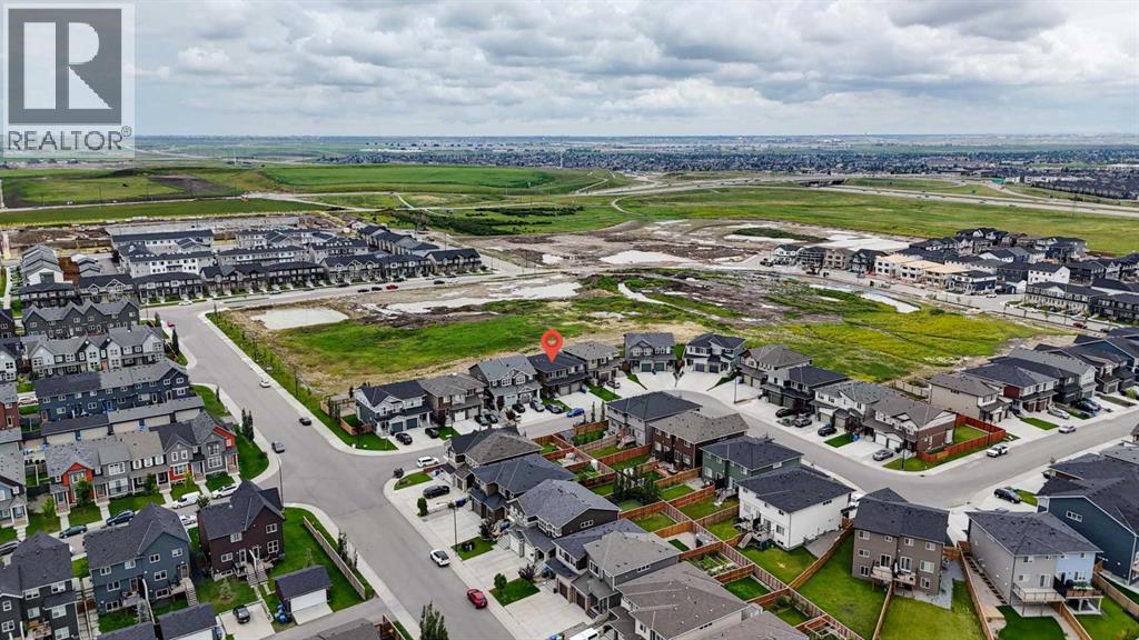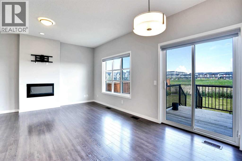 Welcome to this beautifully finished semi-detached home in the tranquil community of Carrington.Backed onto a serene green space, this recently built property offers over 2,301 sq. ft. of total livable space, thoughtfully designed for comfort, style, and everyday living. Impeccably maintained and tastefully upgraded, the home combines modern elegance with practical functionality.The main floor welcomes you with 9-ft ceilings and an abundance of natural light through large windows and patio doors. The newly added gourmet kitchen features a chimney hood fan, built-in microwave, crown-molded cabinetry, stylish tile backsplash, a spacious walk-in pantry, and a functional island—perfect for both cooking and entertaining. The open-concept living and dining areas are enhanced by lovely laminate flooring, neutral grey tones with crisp white trim, and a cozy fireplace. A convenient half bath completes this level.Upstairs, the primary suite includes a generous walk-in closet and a luxurious 5-piece ensuite with a standing shower, double vanity, and soaker tub. Two additional bedrooms, a well-appointed 4-piece bathroom, and an upstairs laundry room offer both comfort and convenience for the whole family.The fully finished lower level expands your living options with a spacious multi-purpose room and a 4-piece bathroom - ideal as a home gym, media room, or guest space.Additional highlights include an oversized driveway, peaceful green space views, and a stylish, move-in-ready interior. Perfect for families seeking space, quality, and modern living, this home is ready to welcome its next chapter. (id:54406)
