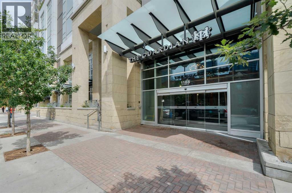 Experience elevated urban living in The Guardian South Tower. Perched on the 19th floor, this stunning single-level condo captures sweeping views of downtown Calgary and the Bow River through expansive FLOOR-TO-CEILING WINDOWS and from your BALCONY.This bright and modern one-bedroom, one-bathroom home is thoughtfully designed with sleek flooring and an abundance of natural light throughout. The contemporary kitchen features integrated cabinetry that seamlessly conceals the refrigerator and dishwasher, an INDUCTION COOKTOP, and a BUILT-IN MICROWAVE. The OPEN-CONCEPT layout flows effortlessly into the living area—ideal for both relaxing evenings and entertaining guests.The spacious bedroom is filled with natural light and showcases incredible views, along with a BUILT-IN CLOSET SYSTEM complete with drawers, eliminating the need for additional furniture. A well-appointed four-piece bathroom is conveniently located just across the hall. In-suite laundry with a stacked washer and dryer adds everyday ease.Residents enjoy 24-hour front door security, secure floor access, a titled underground parking stall, and a separate assigned storage unit. The Guardian offers exceptional amenities, including a FULLY EQUIPPED FITNESS CENTRE with SHOWERS, a ROOFTOP TERRACE with BBQs, a stylish RESIDENTS’ LOUNGE with kitchen, a GAMES AREA, and flexible spaces for relaxing or working. There’s even a dedicated WORKSHOP for CRAFTS or woodworking projects.Located in the heart of Calgary’s vibrant Beltline, you’re just steps from the Stampede grounds, LRT stations, and an array of downtown shopping, dining, and entertainment. This is an outstanding opportunity to own a sophisticated condo in a secure, amenity-rich building in one of the city’s most dynamic neighbourhoods. (id:54406)