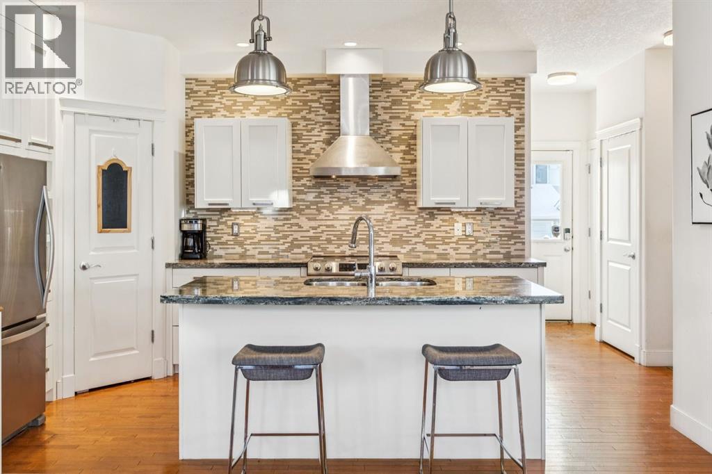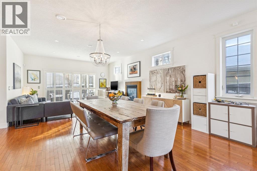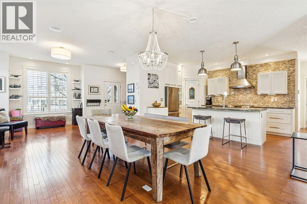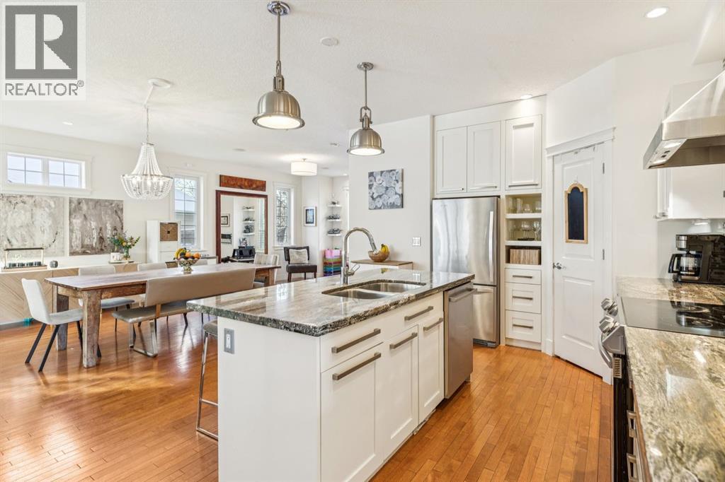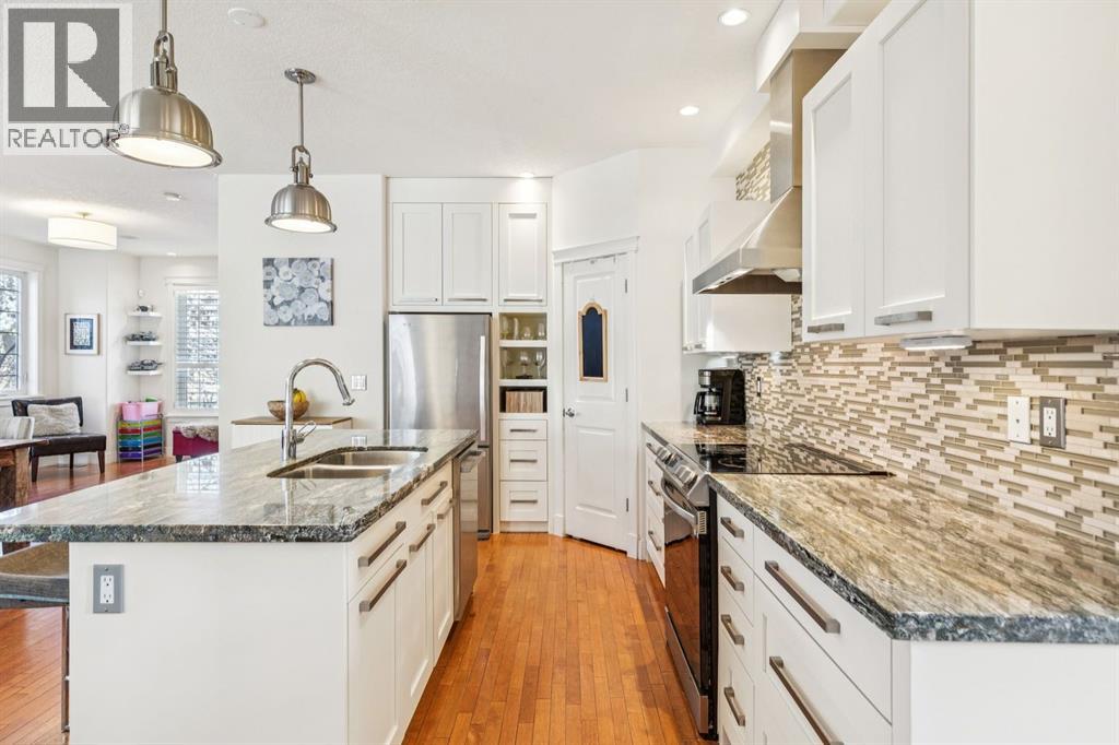 Welcome to this beautiful end unit home in the heart of Garrison Woods, perfectly positioned facing scenic Ypres Green Park. With coveted east, west, and north exposures, this property is bathed in natural light throughout the day and offers picturesque park views from multiple vantage points, including the charming front veranda, the perfect place to enjoy morning coffee while watching families gather and children play. Offering 2,670+ square feet of developed living space, this thoughtfully designed home is ideal for growing families. The main floor features rich hardwood flooring and an open concept layout centred around a beautifully appointed kitchen with newly installed cabinetry and professionally refinished cabinets, granite counters, a large centre island that invites conversation and connection, and updated appliances including a Bosch dishwasher, Whirlpool refrigerator, Samsung oven, and newer LG washer and dryer. The bright west facing living area creates a warm and welcoming space for everyday living, while a central dining space creates an ideal flow for entertaining. Upstairs, you’ll find three generously sized bedrooms, providing comfortable retreats for every family member. The spacious primary includes a private sitting retreat, a walk-in closet, and a luxurious ensuite bath designed for relaxation at the end of a busy day. The two additional upstairs bathrooms were tastefully upgraded with elegant ceramic countertops, modernized built-in drawers and doors, and updated taps and sinks, enhancing both style and functionality. The fully finished lower adds exceptional versatility, featuring a large media and games area, a full bathroom, and abundant storage. A dedicated flex space offers endless possibilities whether as a home theatre, playroom, teen lounge, or home gym. Since 2016, this home has benefited from substantial upgrades that provide peace of mind and enhanced comfort. Major mechanical improvements include an he furnace replacement with a p remium IQ Air HEPA-grade air filtration system, installation of a radon remediation system, and a new AC unit for year round climate control. The roof shingles were replaced in 2020, and in 2024, 15 solar panels were installed adding long term energy efficiency and sustainability. Beyond the home itself, the lifestyle here is truly special. Garrison Woods is known for its strong sense of community, walkable streets, and proximity to excellent schools, playgrounds, and everyday amenities. Families will appreciate nearby schools such as Lycee International de Calgary, Master's Academy and College, Altadore School, and Central Memorial High School, along with easy access to parks, pathways, and community spaces that foster connection and an active lifestyle. Shopping and dining are just minutes away in the vibrant Marda Loop district. This is more than a home, it’s an opportunity to be part of a welcoming, family oriented community where parks, schools, and neighbours are all just steps from your front door. (id:54406)