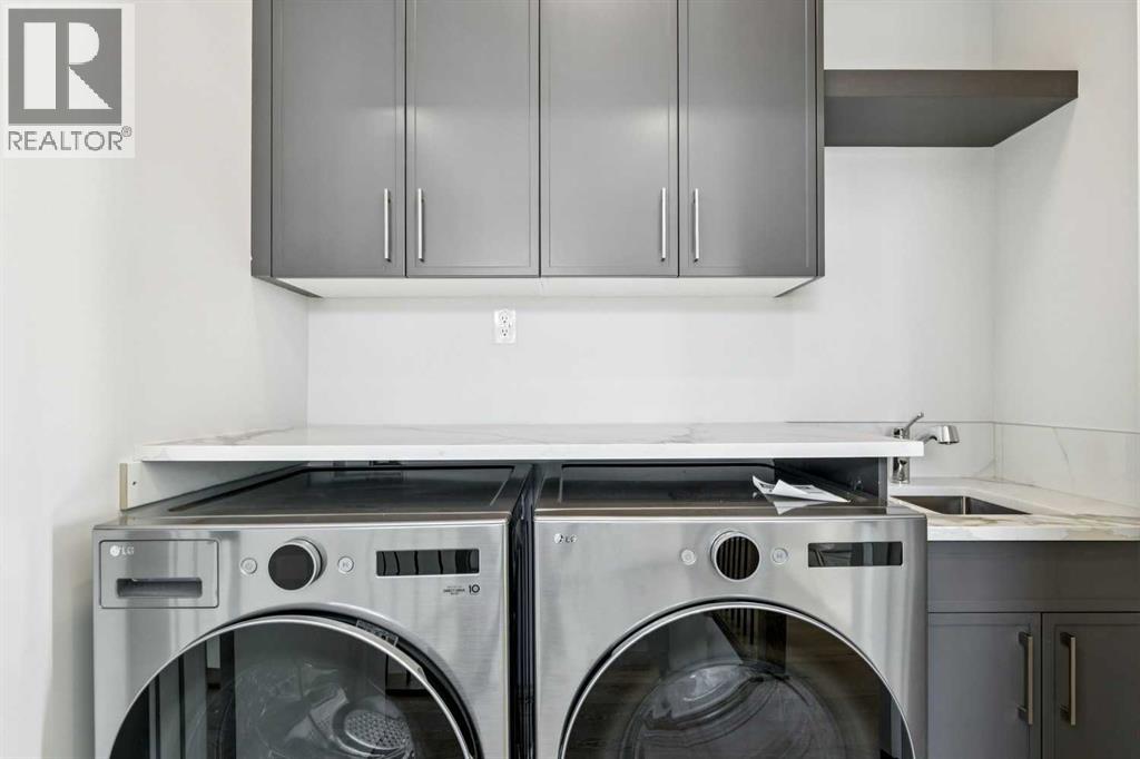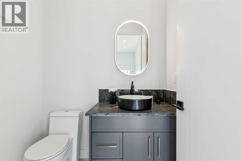 *** SEE THE VIRTUAL TOUR *** Welcome to this stunning brand-new side-by-side duplex located in the desirable community of Banff Trail. With its stylish mixture of Stucco and Hardie board exterior , a concrete walkway leading to the house, along with concrete stairs at both the front and back, a spacious concrete patio in the backyard and composite WPC fence between the two houses. For safe and easy access to the basement through side door, the side of the house is all concrete without any window well on the way. Step inside to find a welcoming foyer that opens into a large dining area. The modern kitchen is equipped with sleek cabinetry, stainless steel Bosch appliances, and a luxurious granite leather island and countertops. The large and spacious living area with a large window overlooking the sunny backyard. The main floor also includes a beautiful powder room and a convenient mudroom leading to the backyard. Upstairs, you'll discover a generously sized master bedroom complete with a walk-in closet and a stunning modern ensuite bathroom featuring a double vanity, standalone tub, tiled floors, quartz countertops, and a beautifully tiled shower. Additionally, the second floor hosts two other spacious bedrooms and a cozy loft, perfect for an office space or a play area for the kids. The laundry room is conveniently located upstairs, alongside the main bathroom, which also boasts a double vanity, tiled floors, and quartz countertops. Hardwood flooring graces the main floor and the hallway of the second floor and the master bedroom. The basement features a separate entrance leading to a legal suite with two bedrooms, a separate furnace, and LVP flooring throughout. This suite includes a full kitchen with quartz countertops and stainless steel appliances, as well as a complete laundry setup, making it an ideal income generator while you enjoy luxurious living upstairs. . In all vanities, LED mirrors are installed with 3 color temperatures selection (3000-4000 and 5000) , all dimmable to 10% of the normal light and anti fog functionality. Some of the ceiling lights such as master bedroom have 3 color temperature option. Additional highlights include a double detached garage, 10-foot ceilings on the main floor and 9-foot ceilings on the second floor and basement, two furnaces, a 75-gallon hot water tank, rough-ins for AC and central vacuum, soundproof insulation, soundbar and fire rated drywall on the basement ceiling and a soundbar in the party wall. (id:54406)