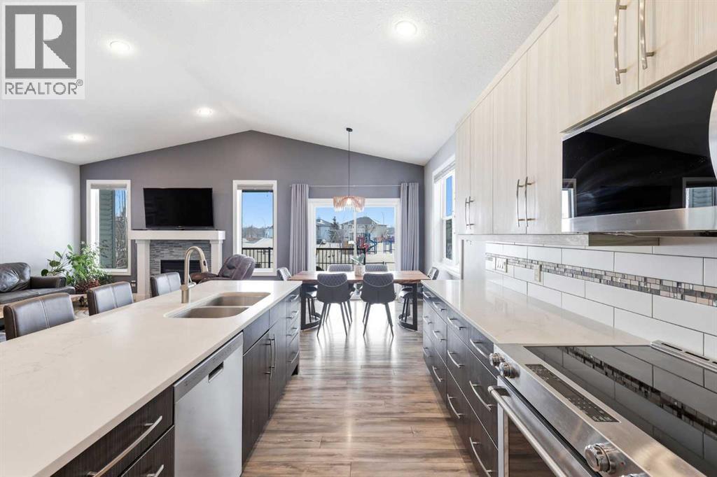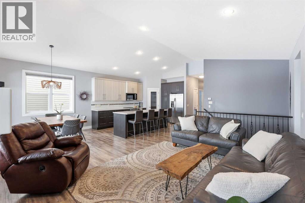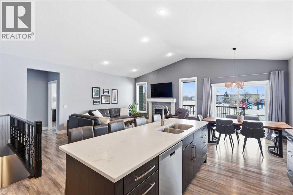 There is something about High River that you cannot quite explain until you experience it. The pace slows, the streets feel quieter, kids are actually outside riding bikes and neighbours still wave when you drive by. It is the kind of town where you trade chaos for connection without sacrificing convenience. Okotoks, Costco and everyday amenities are just minutes away, and Calgary remains an easy commute when you need it. Now pair that lifestyle with a bungalow backing directly onto green space, a pump track and park right out your back gate, and no rear neighbours behind you. Nearly 2,700 square feet of developed living space across two levels gives you room to breathe. Three full bedrooms on the main floor, which is rare for a bungalow, means young families can stay together upstairs, and downsizers can still host grandkids or create the perfect home office without compromise. The main level has been extensively renovated with updated flooring, bathrooms, kitchen, fireplace and fresh paint, creating a warm, move in ready feel the moment you step inside. The east facing covered deck is where mornings start slowly with coffee and sunrise light, and the primary suite feels like a true retreat with a deep soaker tub, separate shower and walk in closet. Downstairs, high ceilings and in floor heat transform the lower level into space you will actually use, not space you settle for. Massive bedrooms, vinyl plank flooring and a media area ready for movie nights make it ideal for growing families or long term guests. Central air conditioning keeps summers comfortable, and the oversized double garage has been fully insulated and drywalled, adding clean, functional space that extends beyond the house itself. The yard is intentionally low maintenance, yet it opens onto all the green space you could ever want, complete with in ground irrigation and a separate dog run. This is the kind of home that quietly checks every box, where kids can run out the back gate to the park and a dults can finally exhale at the end of the day. 2026 High Country Rise is more than a bungalow. It is small town living done right, with the space, comfort and community people move south for. Come see it in person and you will understand. (id:54406)