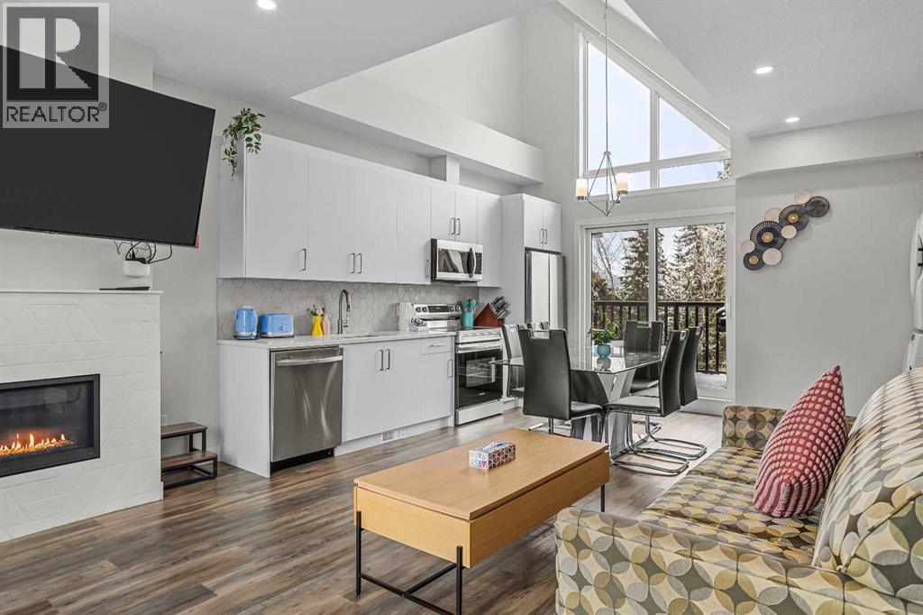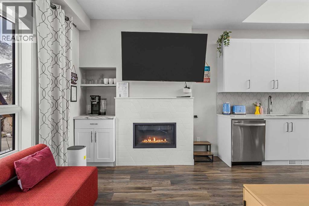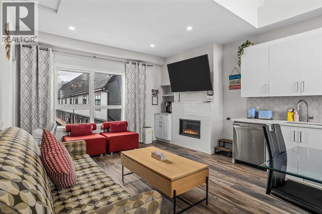Skyline Peaks!!! This spacious Top Level, Short-Term Rental has Three-bedroom, Two-bathroom, It is a townhouse style property and it is built in 2023. It has everything you want: Unbeatable Mountain views, vaulted ceiling, expansive windows, open-concept kitchen and living area, convenient locations, thoughtful design and luxury living. Don’t miss such an exceptional opportunity to own a retreat in the beautiful Canadian Rockies. It can comfortably host up to 8 guests. Amenities at the resort includes hot tub, outdoor pool, and assigned parking. Lots of cabinets, modern fireplace, quartz countertop inside the Unit. Built in 2023, the unit presents a modern and aesthetic design for both comfort, enjoyment and luxury. Come and host your guest or treat your family and friends with panoramic mountain views. Listed for $1,250,000 +GST. Consult your accountant about GST deferral options. (id:54406)