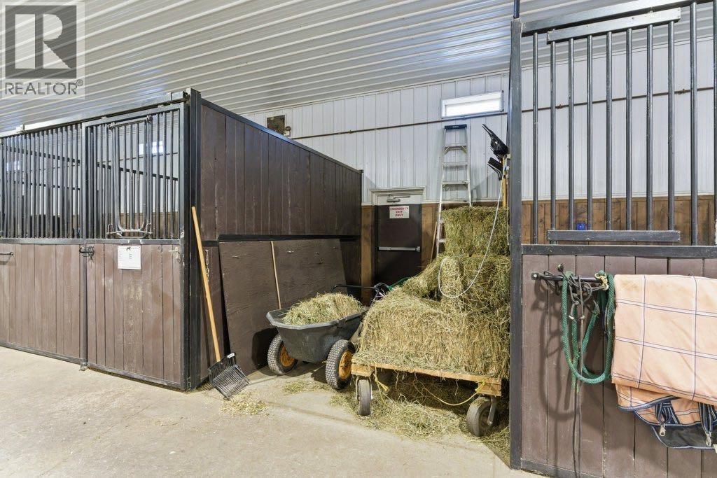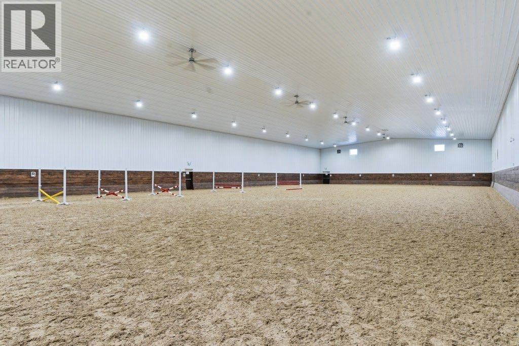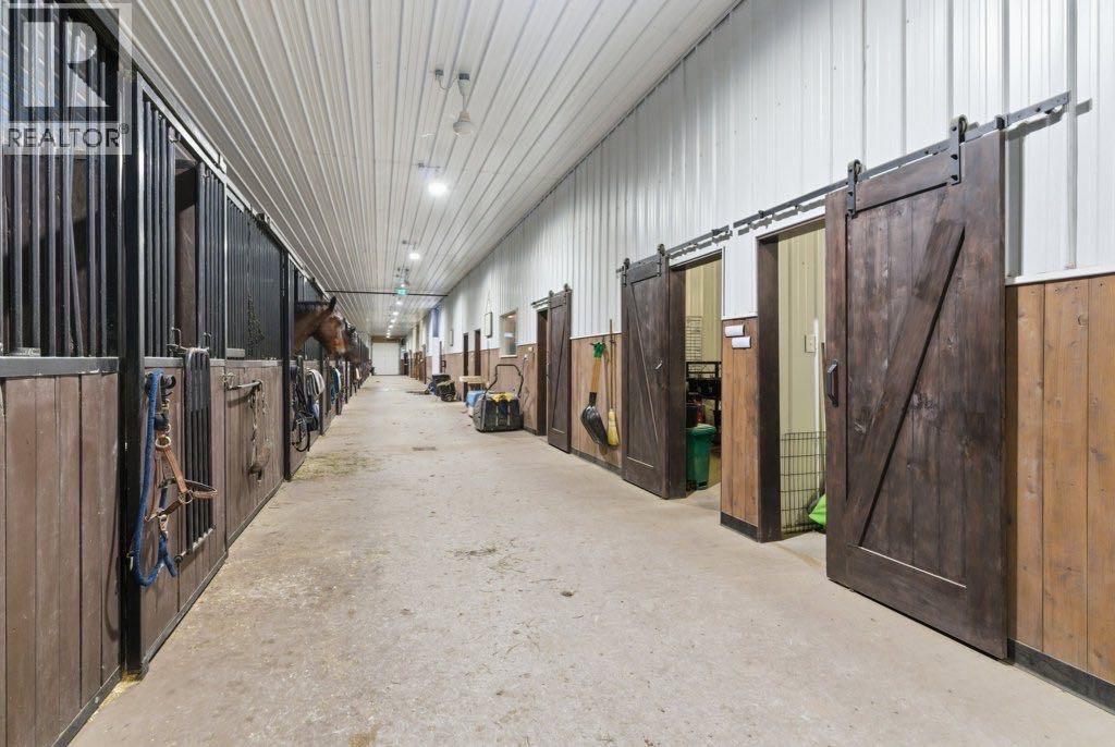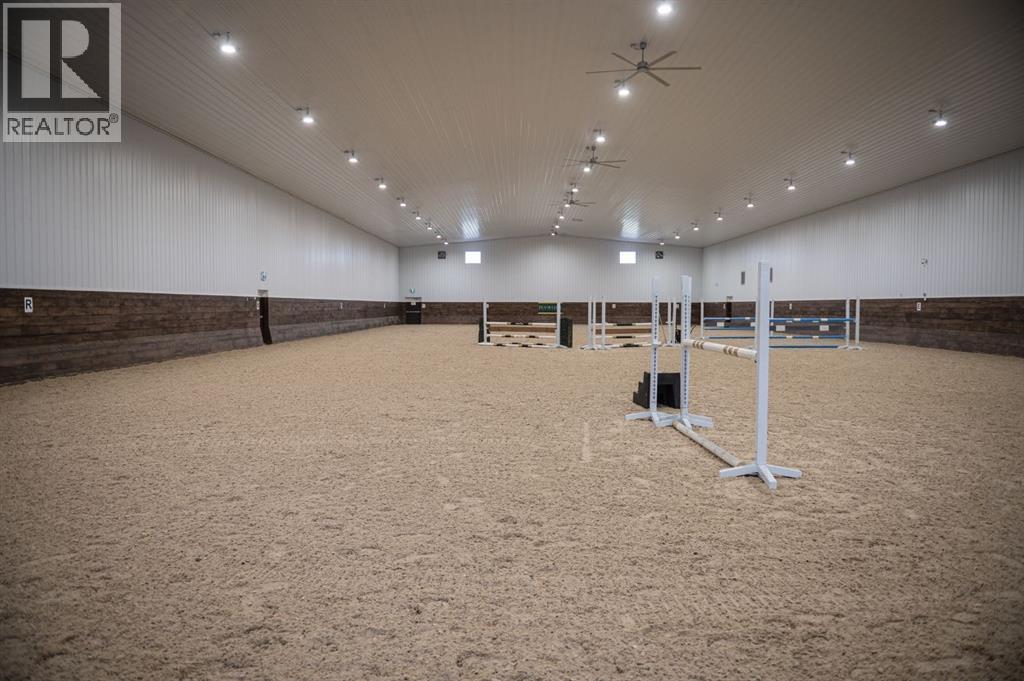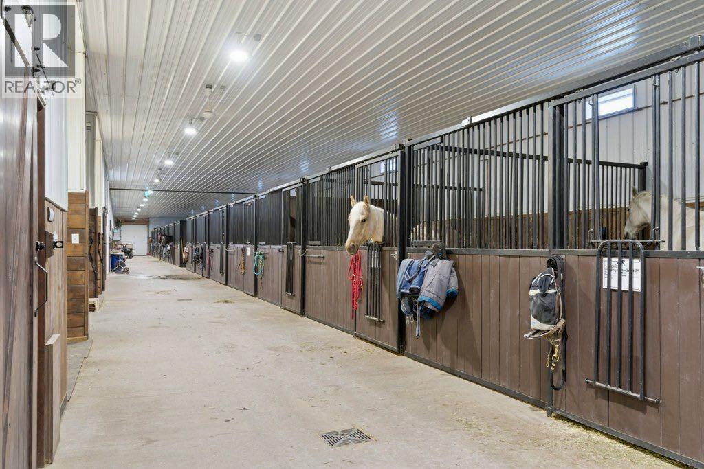 This premier equestrian estate offers an outstanding blend of functionality, comfort, and future residential potential, all set within the picturesque landscape of Foothills County. Ideally located just south of the popular Granary Road Farmer’s Market, this property is the perfect setting for a private equestrian retreat or a fully operational riding centre.At the heart of the property is a state-of-the-art 80 by 200-foot heated indoor arena, designed with premium waterless footing to ensure excellent traction and minimal maintenance. Equine-specific LED lighting brightens the space, allowing for year-round riding and training in any weather. Connected to the arena is an impressive barn, featuring in-floor heating and 16 spacious 12x12 stalls. The barn is thoughtfully outfitted with two well-appointed tack rooms, two bathrooms, two offices and kitchen. For equine care there’s a wash bay with overhead hose boom, laundry and blanket storage and dedicated jump storage storage room, offering everything needed to support a high-functioning equestrian facility.Beyond the barn, the outdoor amenities are equally impressive. Sixteen pipe-fenced turn-out paddocks adjacent to the barn, all serviced by the 8 automatic waterers. Four additional one-acre pastures and a professionally built 100 by 200-foot outdoor arena with a specialized base mat system offers excellent performance and training conditions. Riders will also appreciate the scenic trails that wind through mature trees, creating a peaceful and natural environment ideal for hacking and leisurely rides.One of the most enticing features of this property is its elevated building site, which provides breathtaking city views and is ideally suited for a walk-out basement design. All utilities have already been trenched to the site, streamlining the future construction process and offering convenience for those looking to build their custom dream home.Completing the property is a large metal hay barn and a substantial 4 0 by 40-foot heated shop with insulated walls, a concrete floor, and a heavy-duty equipment lift—perfect for machinery storage and maintenance.This extraordinary estate seamlessly combines professional-grade equestrian infrastructure with the tranquility and beauty of rural living. Whether you envision it as a personal horse haven or the foundation of a thriving business, this Foothills County gem is a rare opportunity not to be missed. Also listed under MLS A2293260 (id:54406)