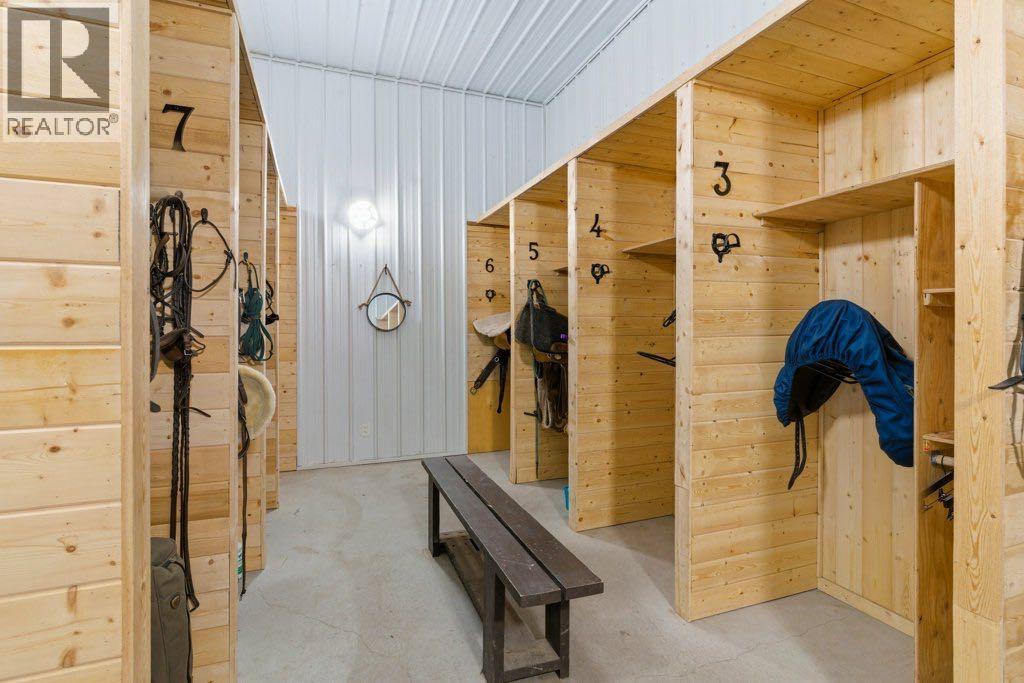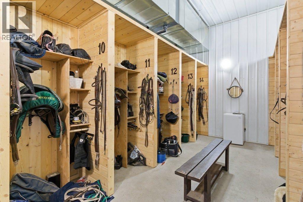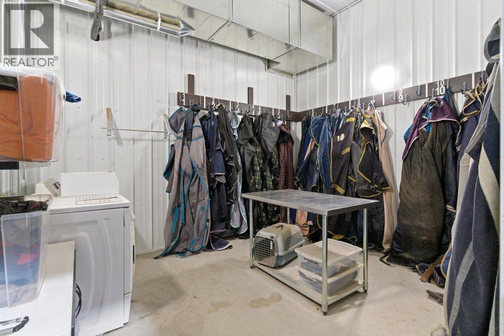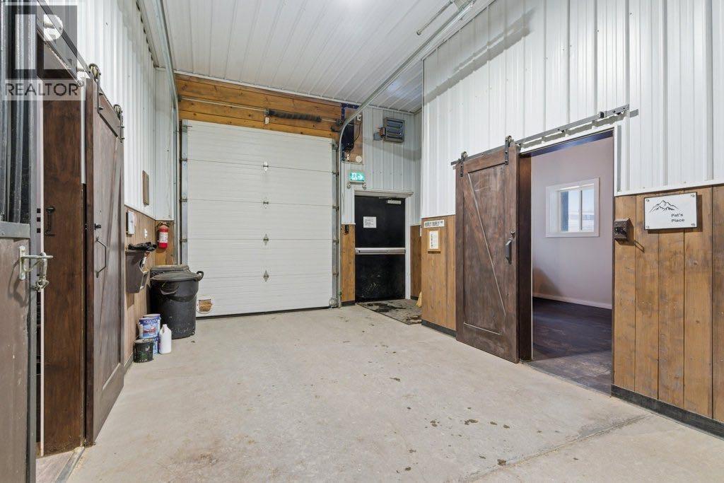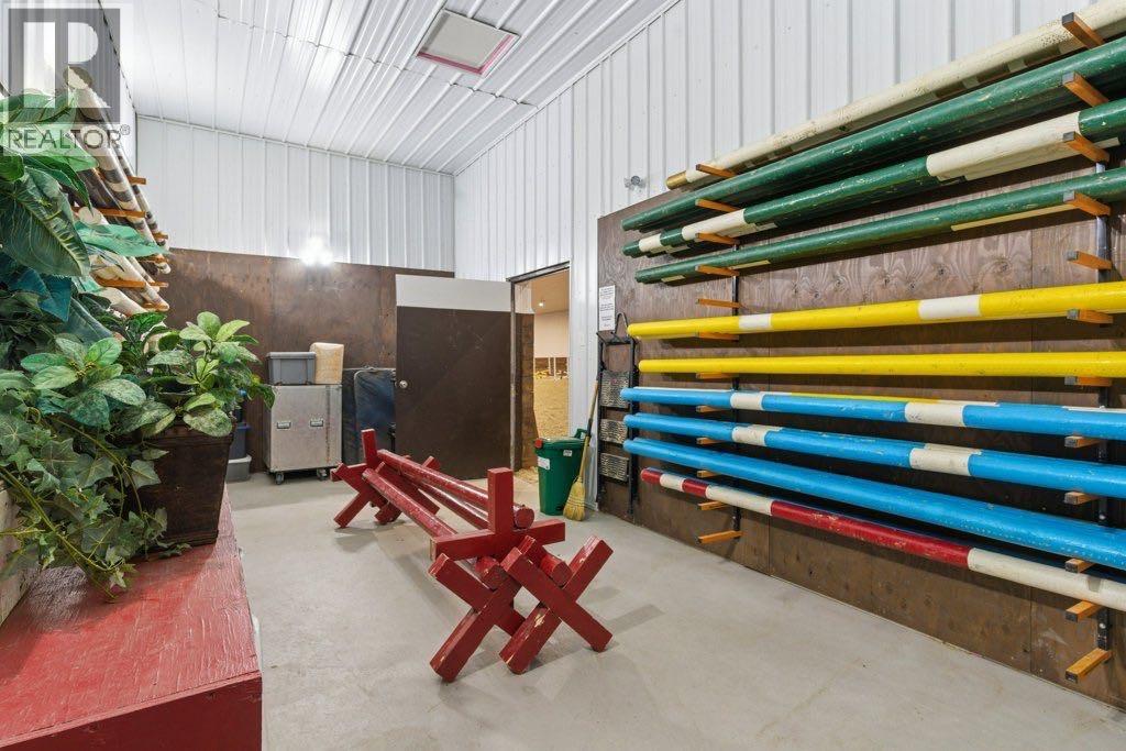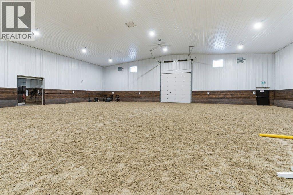 This premier equestrian estate offers an outstanding blend of functionality, comfort, and future residential potential, all set within the picturesque landscape of Foothills County. Ideally located just south of the popular Granary Road Farmer’s Market, this property is the perfect setting for a private equestrian retreat or a fully operational riding centre.At the heart of the property is a state-of-the-art 80 by 200-foot heated indoor arena, designed with premium waterless footing to ensure excellent traction and minimal maintenance. Equine-specific LED lighting brightens the space, allowing for year-round riding and training in any weather. Connected to the arena is an impressive barn, featuring in-floor heating and 16 spacious 12x12 stalls. The barn is thoughtfully outfitted with two well-appointed tack rooms, two bathrooms, two offices and kitchen. For equine care there’s a wash bay with overhead hose boom, laundry and blanket storage and dedicated jump storage storage room, offering everything needed to support a high-functioning equestrian facility.Beyond the barn, the outdoor amenities are equally impressive. Sixteen pipe-fenced turn-out paddocks adjacent to the barn, all serviced by the 8 automatic waterers. Four additional one-acre pastures and a professionally built 100 by 200-foot outdoor arena with a specialized base mat system offers excellent performance and training conditions. Riders will also appreciate the scenic trails that wind through mature trees, creating a peaceful and natural environment ideal for hacking and leisurely rides.One of the most enticing features of this property is its elevated building site, which provides breathtaking city views and is ideally suited for a walk-out basement design. All utilities have already been trenched to the site, streamlining the future construction process and offering convenience for those looking to build their custom dream home.Completing the property is a large metal hay barn and a substantial 4 0 by 40-foot heated shop with insulated walls, a concrete floor, and a heavy-duty equipment lift—perfect for machinery storage and maintenance.This extraordinary estate seamlessly combines professional-grade equestrian infrastructure with the tranquility and beauty of rural living. Whether you envision it as a personal horse haven or the foundation of a thriving business, this Foothills County gem is a rare opportunity not to be missed. Also listed under MLS A2293260 (id:54406)