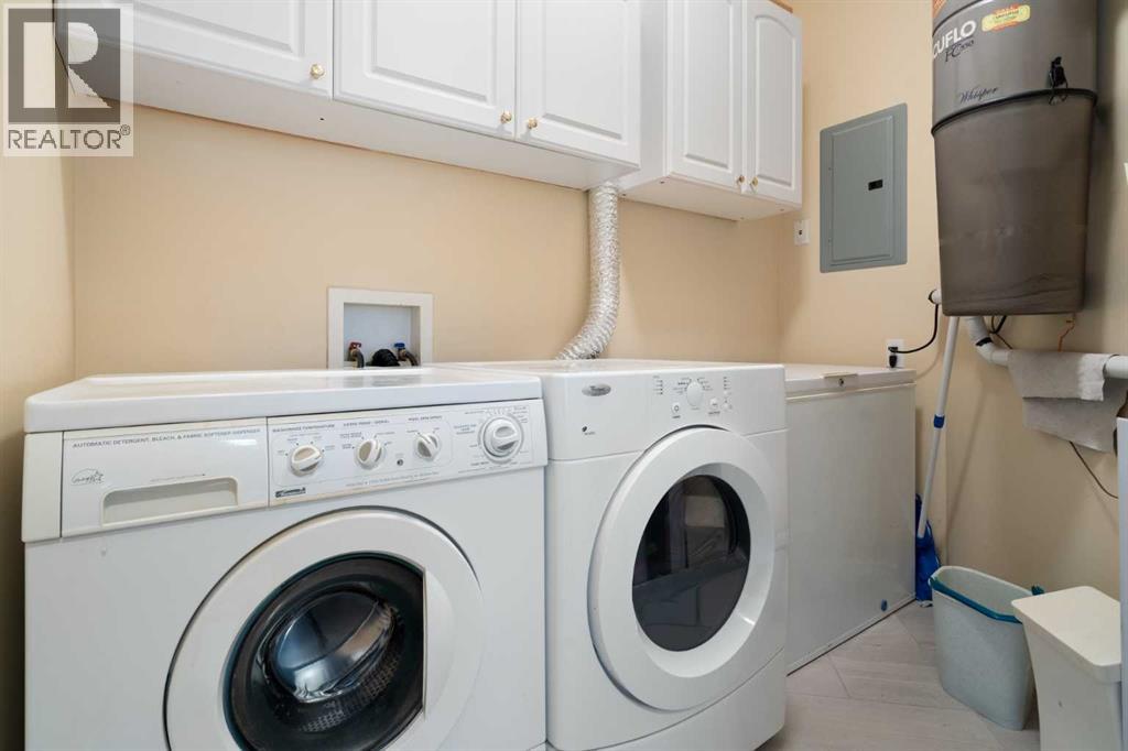Your opportunity to live in the desirable Patterson Bluffs 55+ seniors’ complex. These units don’t become available very often and this unit is one of the largest and unique designs in the complex. With 1235 sq. ft. of single level living space, 2 bedrooms and 2 bathrooms, 9’ ceilings, soft corners, numerous large windows and an open plan, there is so much to work with in making it your new home. The entrance is wide and inviting with a large closet and space for seating. The newer rectangular tile that continues into the kitchen is easy to maintain. Moving forward into the living area your senses will be impacted by the abundance of natural light, the spaciousness of the living area, the unique curved wall, the airiness created by the 9’ ceilings, all complimented by the soft neutral colour palate. There is great flexibility of use provided by the open plan. The living room features a corner gas fireplace for added atmosphere and comfort. Step out to the wrap-around patio with southeast to southwest exposure and enjoy a morning coffee, summer lunch or evening BBQ. A large dining room with one wall of windows, space for a buffet and hutch, located next to the kitchen can accommodate daily meals or larger gatherings. A raised breakfast bar provides another option for snacks. The well-planned kitchen is bright with white appliances, lots of cabinets, counter space and a pantry. Retire to the primary suite with space for a king-sized bed, large window, walk-in closet with organizers and a 3-piece bathroom with a walk-in shower and storage cabinet. A second bedroom can function as a guest room or den. There is a main 4-piece bathroom with a one-piece jetted tub shower combination. A large laundry room with front loading washer and dryer has space for in-suite storage as well. The unit comes with 2 assigned parking stalls and a storage locker. This premier complex has a number of wonderful amenities including a hobby/workshop, self serve car wash bay, social/recreation r oom and a great clubhouse. Wonderfully landscaped grounds with paths and water features add to the overall ambiance of this fine home. It is located just off Old Banff Coach Road in the desirable community of Patterson. There is great access to Sarcee Trail, Stoney Trail, Highway #1 and public transportation. You will be close to many amenities and services such as McMahon Stadium, Foothills Medical Centre, University of Calgary, Canada Olympic Park, Calgary Farmer’s Market, Westhills Towne Centre and so much more. You owe it to yourself to check it out today. (id:54406)
