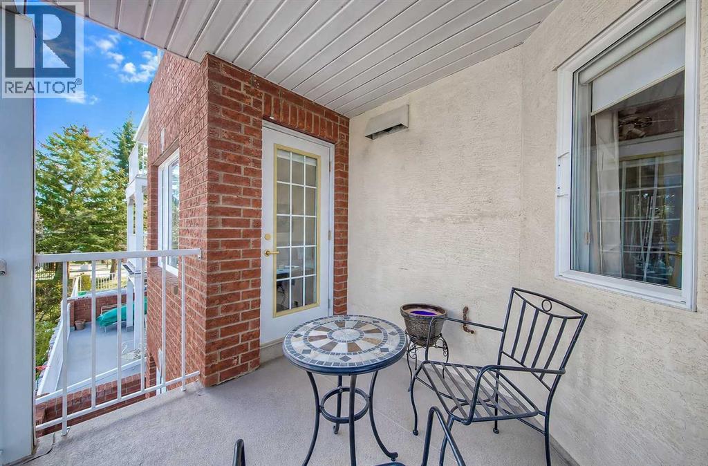 RENOVATED UNIT ON THE QUIET SIDE OF THE BUILDING | EXCEPTIONAL AMENITIES | UNDERGROUND PARKING!This beautifully updated 1 bedroom apartment offers an exceptional opportunity to enjoy low-maintenance living in one of Signal Hill’s most desirable 55+ adult communities. Set on the quiet side of the building overlooking single family homes on a peaceful street, the home is perfectly positioned near parks, pathways, sports fields, the LRT, Westside Recreation Centre, Signal Hill Library and the outstanding shops, services and restaurants at Westhills and Signal Hill Shopping Centres. For those who enjoy spending time outdoors, Signal Hill/Battalion Park and Griffith Woods Park in Discovery Ridge are both close by, and easy access to Sarcee Trail and Stoney Trail further add to the convenience of this well-connected west-side location.The unit itself has been thoughtfully updated and exceptionally well maintained, offering a warm and inviting feel from the moment you step inside. The kitchen has been tastefully refreshed with granite countertops, stainless steel appliances, an updated backsplash and under-cabinet lighting that adds both warmth and function. Hardwood flooring adds richness through the main living areas, while the bright living room and dining area are highlighted by a beautiful bay window, attractive and functional rolling shade window coverings and access to the large balcony with a BBQ gas line hookup and a hidden rolling screen door, allowing for air flow and added comfort. The bedroom is impressively sized at 13'4" x 12'0", offering plenty of room to easily accommodate a full bedroom suite, and is complemented by a spacious walk-in closet for excellent everyday storage. The smart layout makes wonderful use of the square footage, and practical touches like the garbage chute located just down the hall add to the everyday ease and convenience this home offers.Beyond the home itself, residents enjoy access to a superb amenity centre that truly sets t his complex apart. There is a large social room with full kitchen and washrooms for events and private functions, a fitness centre with cardio and weight equipment, a recreation lounge with shuffleboard, billiards, fireplace and TV, along with a craft room, library and guest suite for visiting family and friends. Heated underground parking, assigned separate storage, bike storage in the underground parkade and a car wash bay add even more everyday convenience. Quiet, secure and beautifully maintained, this is low-maintenance living at its best in Signal Hill. Welcome Home. (id:54406)