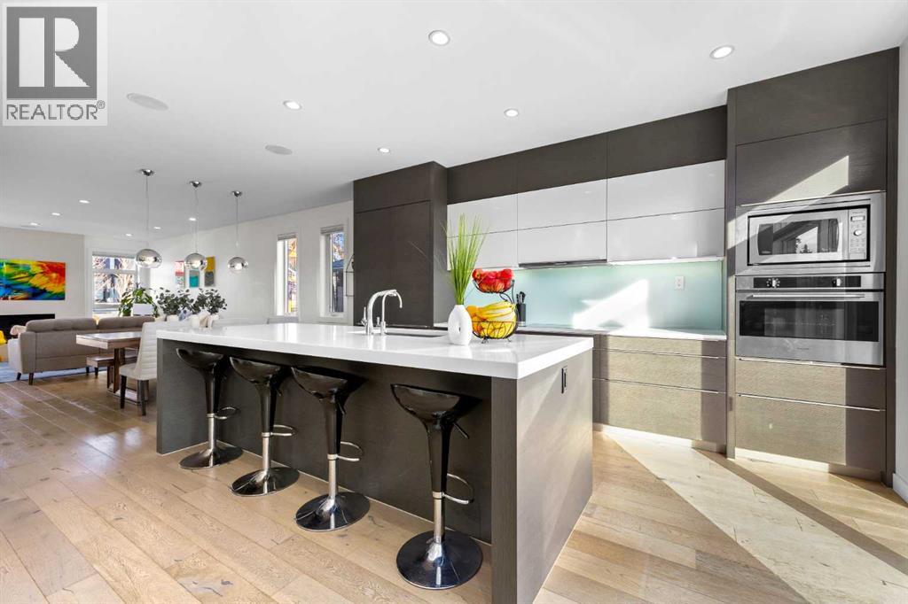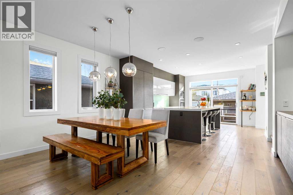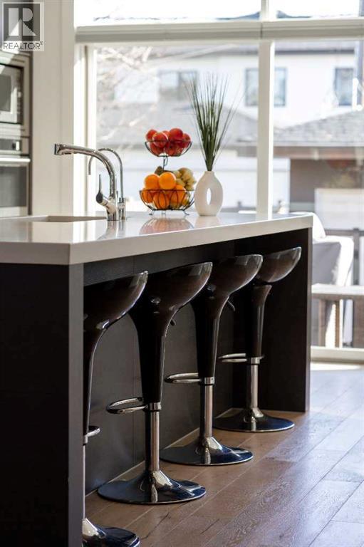 ** OPEN HOUSE SAT & SUN 1PM-3PM** Beautifully appointed semi-detached home ideally located just steps from parks, cafés, schools, and everyday amenities, all just minutes from downtown. Offering 2,813 sq.ft. of total developed living space, this well-designed home combines modern style, thoughtful functionality, and comfortable family living in the heart of Killarney.The bright open-concept main floor is filled with natural light and features engineered wide-plank white oak hardwood flooring throughout. The designer kitchen showcases two-tone cabinetry, quartz countertops, a large island with seating, glass backsplash, and stainless steel appliances. The spacious living room is anchored by a cozy gas fireplace, creating a warm and inviting space for both entertaining and everyday living. A custom glass feature wall seperates the main floor to the upper level along with open riser stair case letting in an abundance of natural light, custom built-in cabinetry allows for extra storage to keep everything organized, and a convenient powder room add both seemless living and practicality. Upstairs, the primary suite offers a private retreat with a large walk-in closet and a spa-inspired ensuite complete with a glass shower, deep soaker tub, dual vanities, heated floorrs and modern finishes. Two additional generously sized bedrooms, a full bathroom, and an upper-level laundry room with additional storage provide excellent functionality for growing families or busy professionals. The fully finished basement expands the living space with a large recreation or media room with wet bar, a fourth bedroom ideal for guests, a home office, or gym, and a full four-piece bathroom. The home is also complete with central Air Conditioning and heated floors in all full bathrooms. Step outside to enjoy the private backyard and patio located just off the kitchen, perfect for seamless indoor-outdoor living and summer entertaining. The outdoor space is complete with a gas BBQ line, sandbox a nd access to a detached double garage. Situated in the desirable inner-city community of Killarney, this home offers exceptional walkability to neighbourhood parks, the Killarney Aquatic & Recreation Centre, local shops and cafés, and favourites like Luke’s Drug Mart. Enjoy quick and convenient access to downtown, major routes, and Mount Royal University. With ongoing redevelopment, strong community character, and excellent amenities, Killarney continues to be one of Calgary’s most sought-after inner-city neighbourhoods. (id:54406)