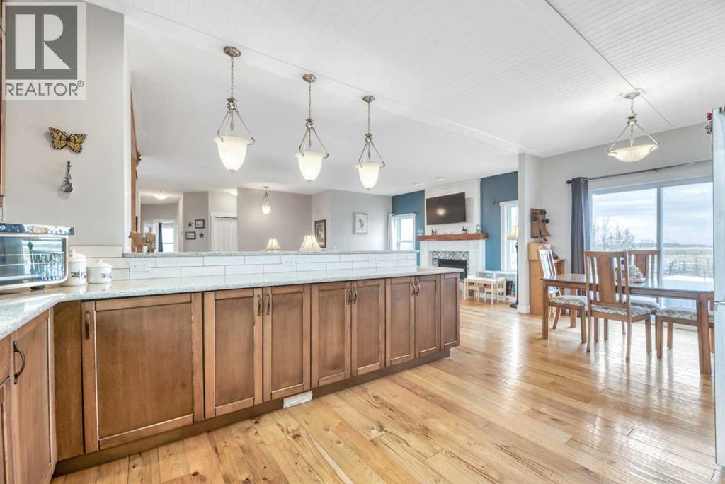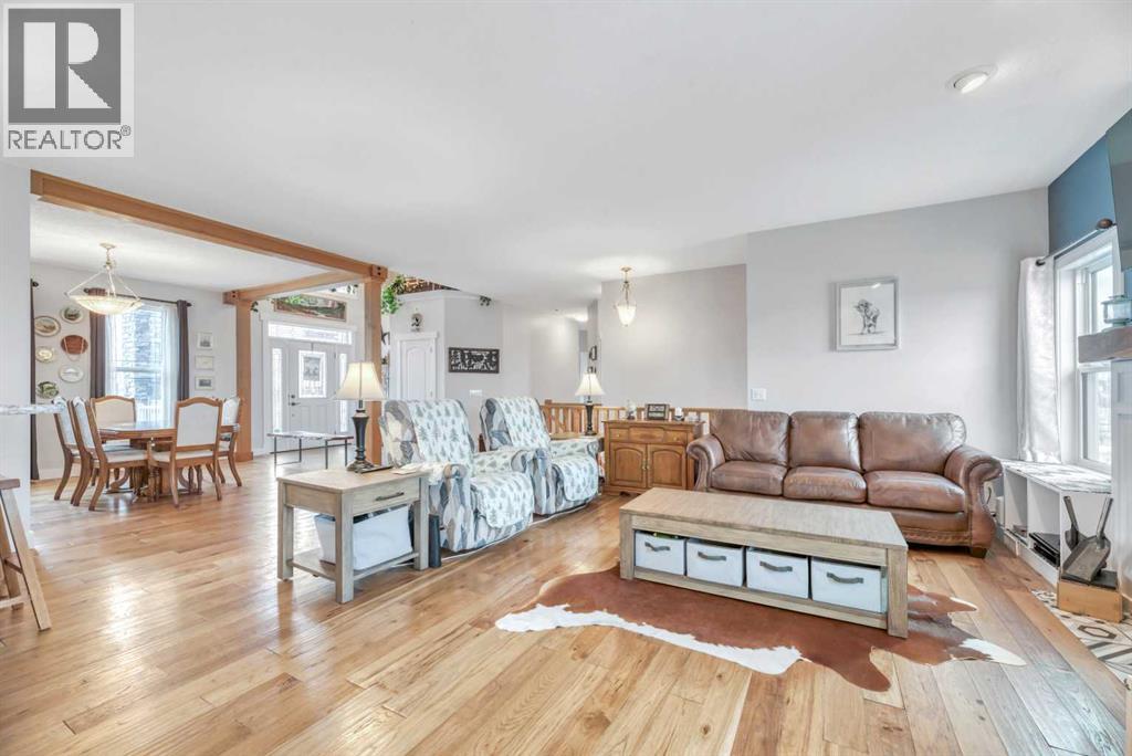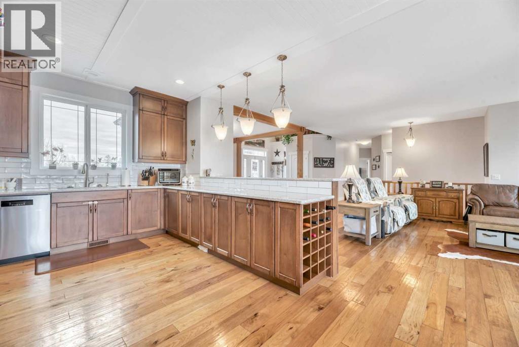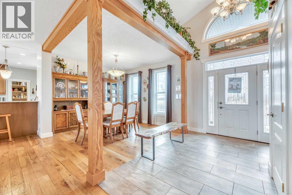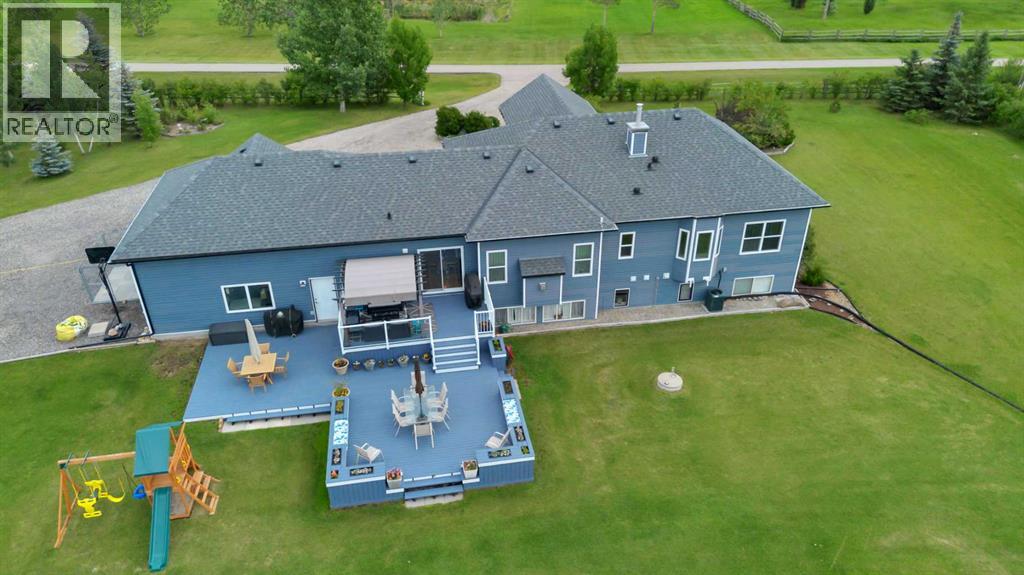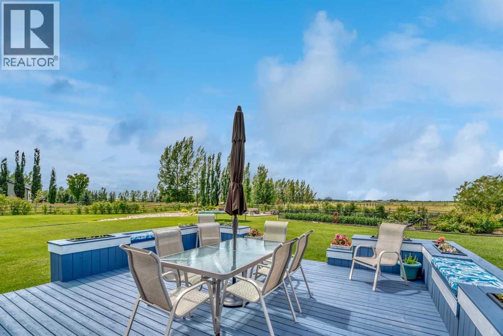 The acreage buyers wait years for, has just hit the market!Located in one of the most sought-after country residential pockets, you are only 4 minutes to Calgary and 3 minutes to Stoney Trail — the rare balance of peaceful living without sacrificing convenience.This fully developed bungalow offers 5 bedrooms and a layout designed to feel open, bright, and effortless. 9' ceilings and solid timber beam details create warmth the moment you walk in. The custom updated kitchen anchors the home with quartz counters, maple cabinetry, newer appliances, and a butler’s pantry that actually works for real life — storage, prep space, and organization where you need it. The living area gathers around the gas fireplace while large windows frame the mountain views.The primary retreat is spacious and private with built-in closet organizers and a spa-inspired ensuite featuring a large walk-in shower and double sinks. Downstairs, the finished basement adds a massive family room, wet bar, full bathroom, and flexible space for guests, teens, or multi-generational living.Step outside and the property becomes something special.A massive two-level back deck with glass railing and built-in planters overlooks the manicured yard, mature trees, water feature, gardens, and firepit area. The property is perimeter fenced with classic 3-rail fencing and cross-fenced for animals, complete with shelter and a chicken coop. A fenced dog run and kennel keeps pets secure while still giving them space.For hobbyists, business owners, or horse enthusiasts — the outbuildings deliver. The impressive shop features packed gravel with interlocking floor frames for durability and function, plus a rear barn with two stalls and tack room creating true year-round versatility.Strong well water, upgraded mechanical, and careful maintenance mean this home is ready to be enjoyed, not worked on.This is the rare acreage where location, usability, and lifestyle all meet.Not just land.A place you build a life around. (id:54406)