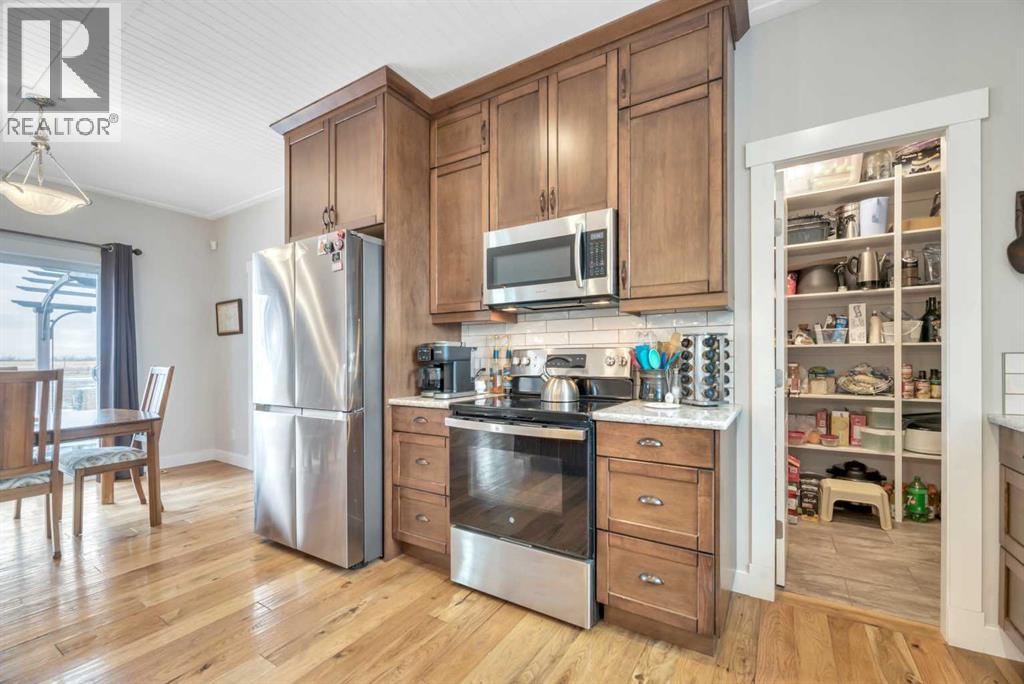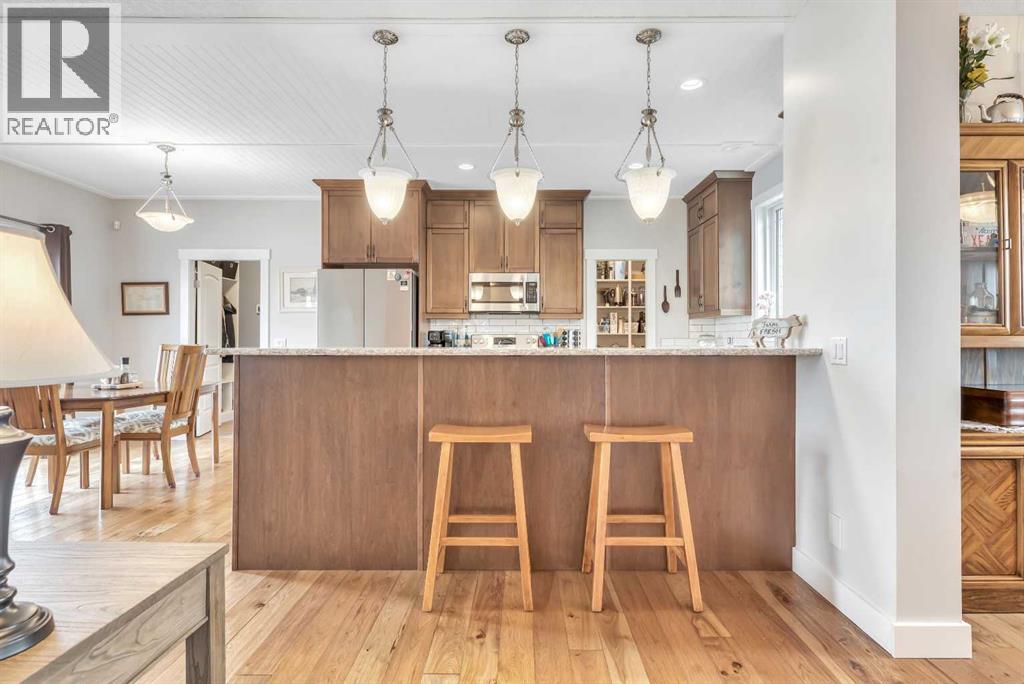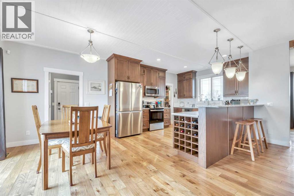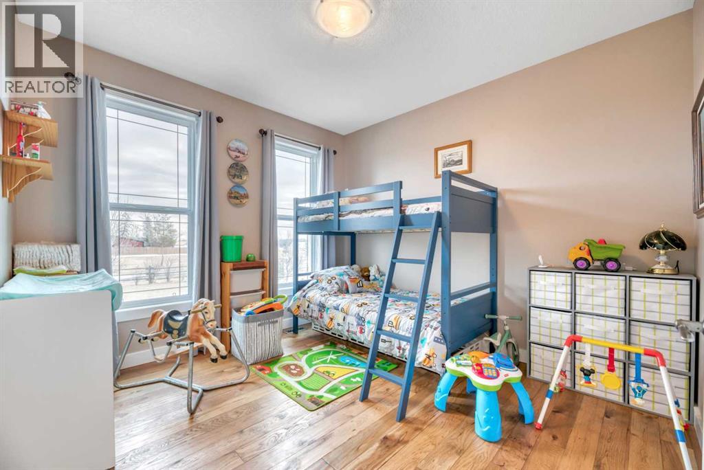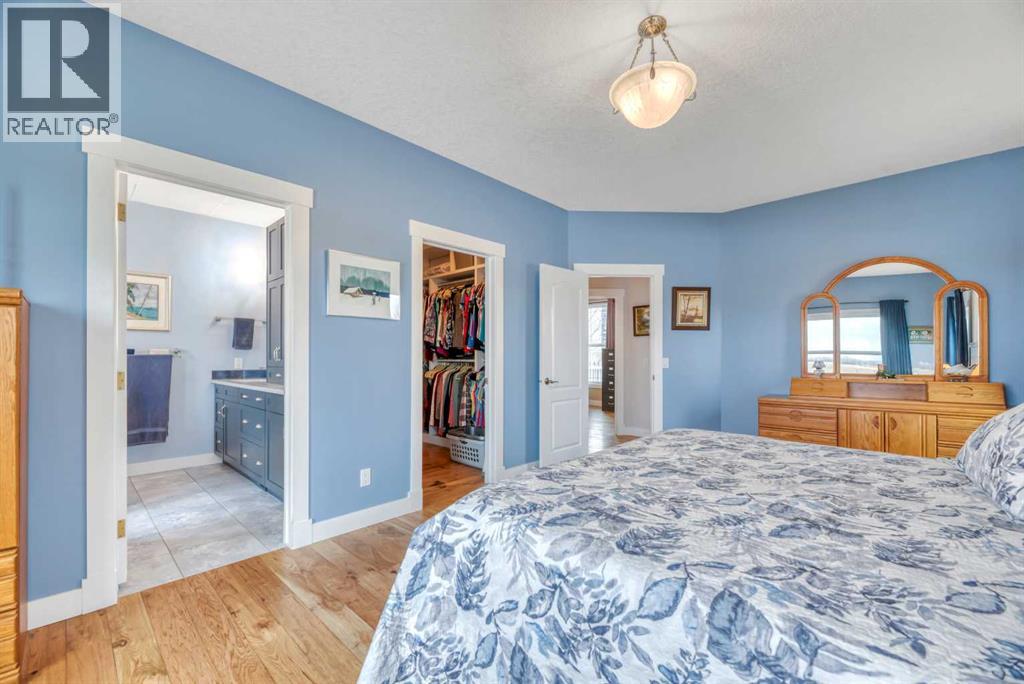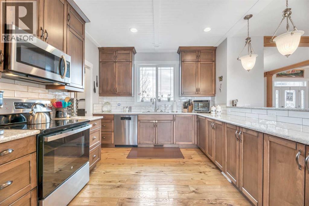 The acreage buyers wait years for, has just hit the market!Located in one of the most sought-after country residential pockets, you are only 4 minutes to Calgary and 3 minutes to Stoney Trail — the rare balance of peaceful living without sacrificing convenience.This fully developed bungalow offers 5 bedrooms and a layout designed to feel open, bright, and effortless. 9' ceilings and solid timber beam details create warmth the moment you walk in. The custom updated kitchen anchors the home with quartz counters, maple cabinetry, newer appliances, and a butler’s pantry that actually works for real life — storage, prep space, and organization where you need it. The living area gathers around the gas fireplace while large windows frame the mountain views.The primary retreat is spacious and private with built-in closet organizers and a spa-inspired ensuite featuring a large walk-in shower and double sinks. Downstairs, the finished basement adds a massive family room, wet bar, full bathroom, and flexible space for guests, teens, or multi-generational living.Step outside and the property becomes something special.A massive two-level back deck with glass railing and built-in planters overlooks the manicured yard, mature trees, water feature, gardens, and firepit area. The property is perimeter fenced with classic 3-rail fencing and cross-fenced for animals, complete with shelter and a chicken coop. A fenced dog run and kennel keeps pets secure while still giving them space.For hobbyists, business owners, or horse enthusiasts — the outbuildings deliver. The impressive shop features packed gravel with interlocking floor frames for durability and function, plus a rear barn with two stalls and tack room creating true year-round versatility.Strong well water, upgraded mechanical, and careful maintenance mean this home is ready to be enjoyed, not worked on.This is the rare acreage where location, usability, and lifestyle all meet.Not just land.A place you build a life around. (id:54406)