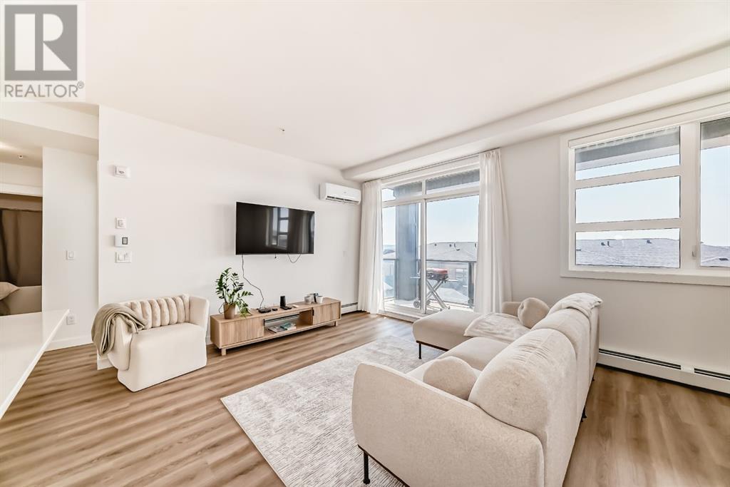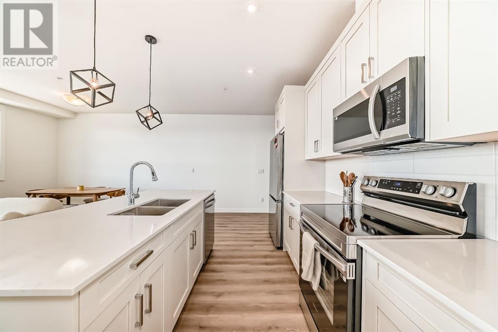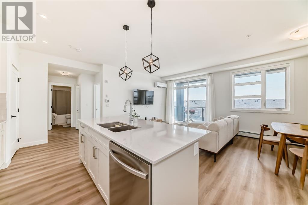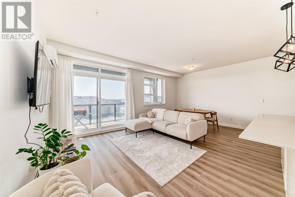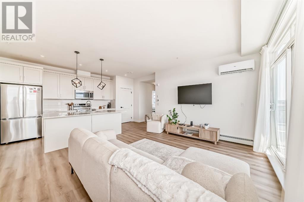Welcome to this stunning 2-bedroom, 2-bathroom condo located in the dynamic community of Livingston in NW Calgary. Perfectly combining style, comfort, and functionality, this modern home offers everything you need for an elevated urban lifestyle.Upon entering, you’ll be greeted by an open-concept layout that seamlessly connects the living, dining, and kitchen areas, creating an inviting and airy space. The kitchen is a chef’s dream, featuring premium quartz countertops, sleek modern cabinetry, high-end stainless steel appliances, and an elegant backsplash that adds a touch of sophistication.The living area extends to a large private balcony. Whether you’re enjoying a morning coffee or entertaining friends, this outdoor space is sure to impress.Both bedrooms are generously sized, with the primary suite offering its own private balcony access, a spa-inspired ensuite with dual vanities, a modern glass shower, and a spacious walk-in closet. The second bedroom, conveniently located near the 3-piece main bath, can serve as a guest room, home office, or personal gym—whatever suits your lifestyle.Additional highlights include light wood luxury vinyl flooring, neutral designer tones throughout, air conditioning, a titled underground parking stall, and a secure storage unit for added convenience.Livingston is one of Calgary’s most sought-after communities, known for its vibrant atmosphere, beautifully landscaped green spaces, and incredible amenities. From urban conveniences to scenic charm, this neighborhood has it all.This exceptional property is more than just a home; it’s a lifestyle. Don’t miss the chance to make it yours—schedule your private tour today! (id:54406)