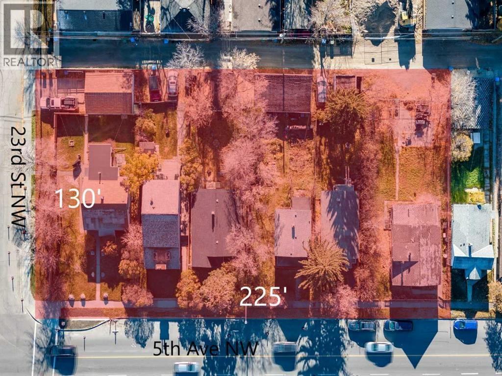 Rare offering in a prime West Hillhurst location! 6 residential lots have been consolidated into one 29,250 SF+/- corner lot offering 225' of Frontage & 130' of depth. An ideal location for a high-density development, this location fronts onto Grand Trunk Park and has convenient alley access. Located on 5th Ave NW with direct access to Crowchild Trail, adjoining Memorial Dr, Bow Trail and 16th Ave NW. The site is flat, not impeded by power poles, making it perfect for streamlined construction and development. Once a successful rezoning to MU-1 is obtained it will allow for a 6-storey build. Walking distance to West Hillhurst Community Assoc, Bowview Outdoor Pool & schools. Steps to transit and located minutes to SAIT, University of Calgary, Foothills Health Campus, Childrens Hospital, Downtown West End & Bow River pathways. Close to all amenities. Earn passive income while you plan your development with the 6-revenue generating detached homes on site. (id:54406)