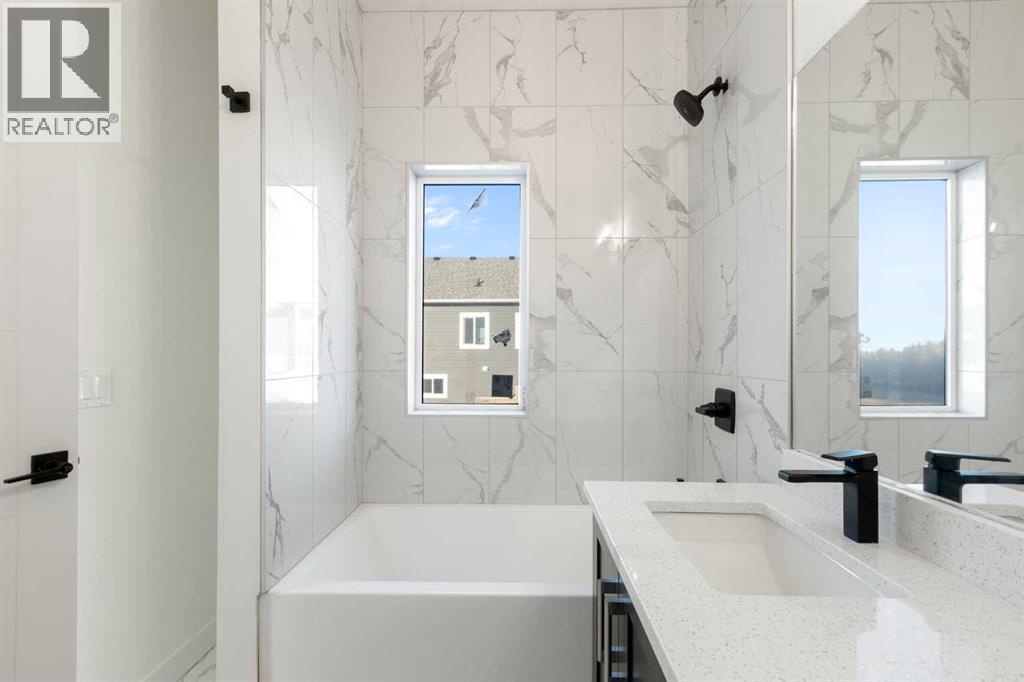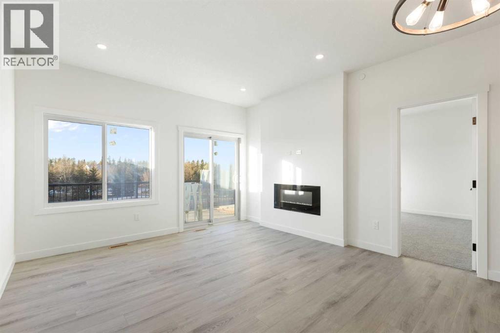 This 2025-built semi-detached bungalow offers a modern, open-concept layout 983 sq ft above grade plus a fully finished walk-out basement. The main floor features a bright kitchen with quartz countertops, island, pantry, and vinyl plank flooring, flowing seamlessly into the dining area and living room complete with an electric fireplace. The spacious primary bedroom includes a walk-in closet and 5-piece ensuite with double vanity. A convenient den and 2-piece bath complete the main level. Downstairs, the finished walk-out basement offers two additional bedrooms, a 3-piece bath, family room, and dedicated laundry area. Enjoy the double attached garage and driveway parking, along with a sloped backyard backing onto green space with no neighbours behind. Located in a golf course community with access to walking paths, playgrounds, recreation facilities, and more, with HOA amenities included. ** Property is being sold as-is, where-is, with no warranties or representations. All offers are subject to court approval and must be unconditional. Property has not received final occupancy approval, as permits and final grading remain outstanding. (id:54406)