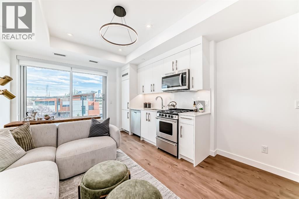 Step into modern urban living at Frontier, Truman’s latest boutique condo development located in the heart of Kensington—one of Calgary’s most walkable and culturally rich neighbourhoods. This brand-new 1-Bedroom, 1-Bathroom condo offers a refined blend of style, comfort, and smart design, perfect for professionals, first-time buyers, or investors looking to be in the centre of it all. The open-concept layout is filled with natural light and features a sleek kitchen complete with quartz countertops, premium stainless steel appliances, and full-height cabinetry, flowing seamlessly into the bright living space. The spacious bedroom offers a private retreat, while the beautifully finished bathroom includes modern fixtures and thoughtful detailing. A private balcony extends your living space outdoors—ideal for enjoying your morning coffee or evening unwind. This home also includes a titled underground parking stall, offering convenience and peace of mind year-round. Residents at Frontier enjoy access to a landscaped terrace, a state-of-the-art fitness centre, and stylish co-working areas —all within a well-managed, design-forward building. With boutique shops, popular cafés, acclaimed restaurants, scenic river pathways, and the downtown core just minutes away, this is inner-city living at its finest. *Photo Gallery of similar unit* (id:54406)