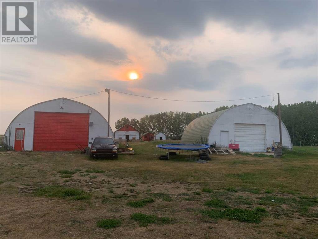 Rare opportunity! This 10+ arc farm has TWO detached houses and number of buildings on beautiful locations, 30 minutes driving from Drumheller and directly across from the Duck Lake Hall. One house is about 1,000 sqft with concrete foundation and another is 1,600 sqft manufactured house on a cinder block foundation. There are 3 separate highway and range roads entrance with pavement right to your driveway. There are two wired arch rib Quonsets have forced air unit heaters in them and concrete floor. There is plenty of sheds and rooms for chickens, duck, goose, turkey, sheep, cows and horses. Currently there are two separate very good family and tenant live there with $5000+/month income with flexible month-by-month lease. They could move although they prefer to stay. Good to buy, good to live, and good to invest. (id:54406)