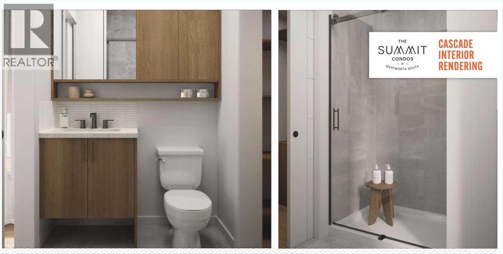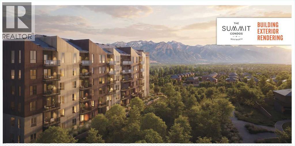 Introducing The Summit at Wentworth South, a modern 6-storey condominium community by Trico Homes, coming Summer 2028 to one of west Calgary’s newest master-planned neighbourhoods. Thoughtfully designed to combine style, comfort, and smart value. Constructed with durable concrete slab construction, this tech-smart building is designed for enhanced privacy, quiet living, and long-term quality. Interior features are carefully curated to provide modern comfort, including 9’ ceilings, creating bright and open living spaces filled with natural light. Each residence showcases luxury vinyl plank flooring, quartz countertops with undermount sinks, ceramic tile in bathrooms, and fully tiled bath and shower surrounds with 10mm glass enclosures. Contemporary lighting and plumbing fixtures add a refined finishing touch throughout.The kitchen is equipped with a premium stainless steel appliance package, including a counter-depth refrigerator, induction electric range, built-in dishwasher, chimney hood fan, and microwave, along with a waterline to the fridge for added convenience. Additional features include air conditioning, zebra blinds, full-size stacked washer and dryer, and a gas line connection on the balcony, making this home move-in ready and thoughtfully designed for everyday living. Buyers can further personalize their home by selecting from three designer colour palettes and three upgraded finish packages.Residents of The Summit will enjoy access to lifestyle-focused amenities including a fitness centre, indoor and outdoor gathering spaces, and a pet relief area, supporting both comfort and community connection.Ideally located in Wentworth South, this development offers convenient access to shopping, dining, services, parks, and pathways, while remaining just 15 minutes to downtown Calgary by C-Train or car. With close proximity to Stoney Trail and Bow Trail, commuting throughout the city is simple, and weekend trips to the mountains are easily accessible with Ban ff approximately 55 minutes away.The Summit at Wentworth South presents an exceptional opportunity to own a brand-new home in a vibrant west Calgary community designed for modern living. This is the Tonquin Floor Plan. (id:54406)