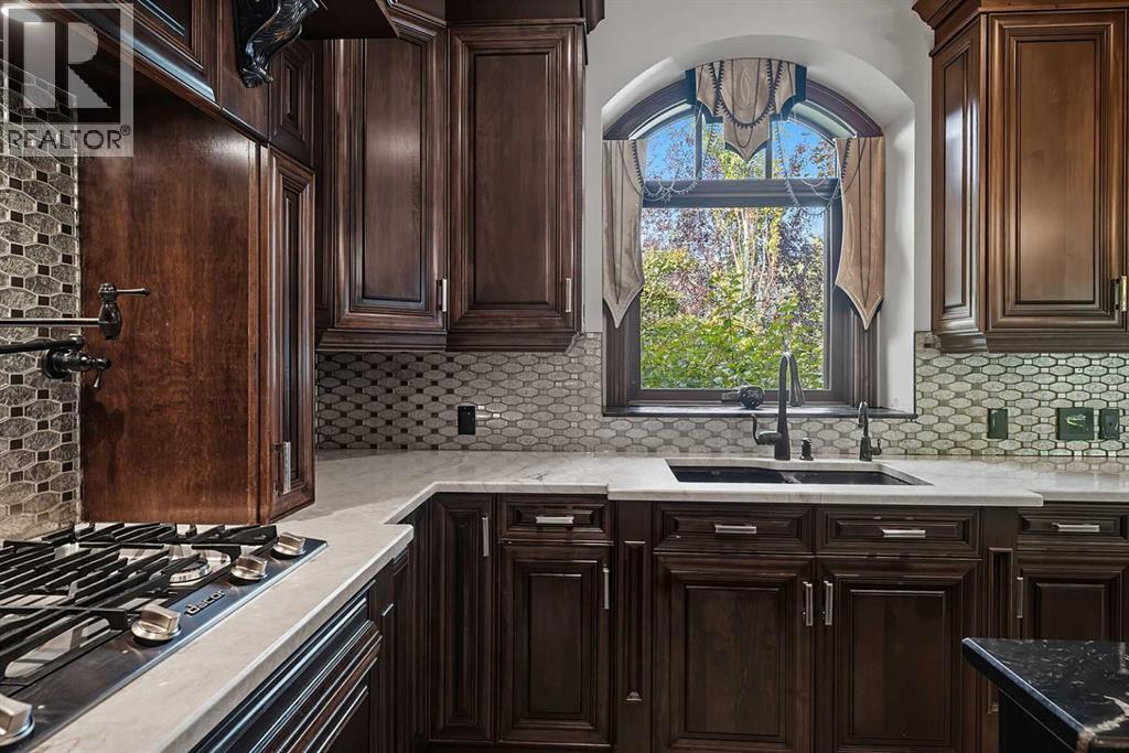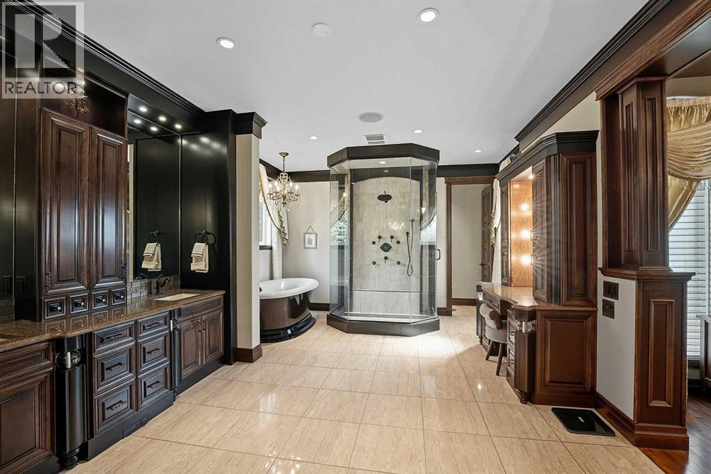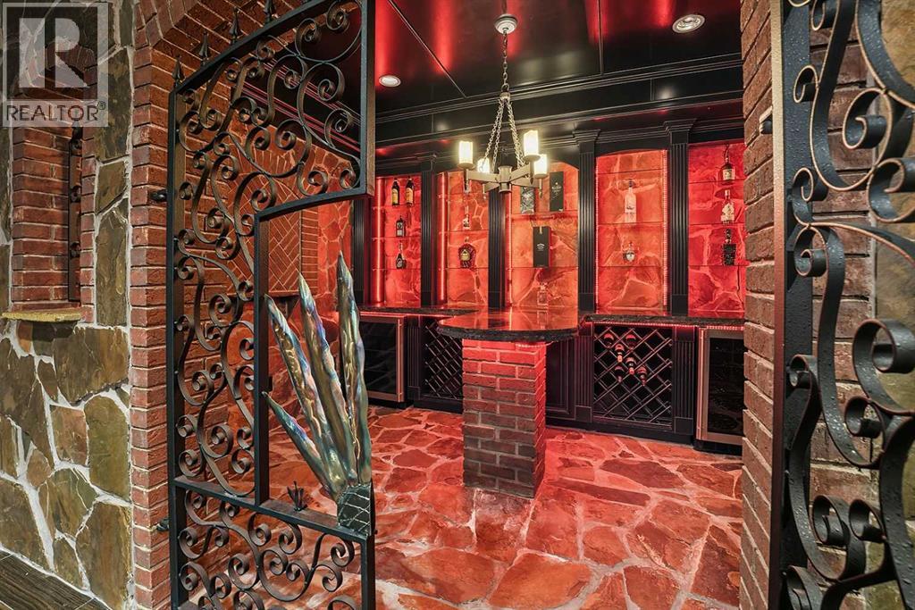 Nestled in the prestigious Jarvis Bay Country Estates, this executive two-storey residence exemplifies unparalleled craftsmanship & timeless luxury. Boasting an attached four-car garage & a separate heated four-car shop, this one of a kind estate sits on a meticulously landscaped ¾-acre lot, offering privacy & prestige. Striking stone accents, an elegant driveway & impeccable landscaping create breathtaking curb appeal. A grand foyer welcomes you with soaring 18-foot ceilings & a stunning crystal chandelier. The dramatic curved staircase, adorned with rich wood wainscoting & wrought-iron railings, serves as the architectural centerpiece. The formal dining room, complete with built-in wet bar, provides an elegant space for entertaining. The chef’s dream kitchen features ceiling-height custom maple cabinetry, granite countertops, a large centre island with prep sink, full-height decorative tile backsplash, crown moulding & premium appliance package including Thermador & Miele. Complete with a pot filler, double ovens & built-in cappuccino machine elevate both form & function. Flooded with natural light, the breakfast nook & adjacent sitting area with gas fireplace flow seamlessly into the sunroom & to the expansive backyard oasis. An upper gallery overlooks the grand family room adorned with extensive millwork, a full wall of windows framing serene views & a magnificent wood-burning fireplace with stacked stone & maple surround. A private main floor office with custom built-ins offers an ideal work-from-home retreat. The luxurious primary suite is a true sanctuary, featuring coffered ceilings, a private den with fireplace & wet bar & a spa-inspired ensuite with heated floors, dual vanities, makeup station, oversized glass steam shower with dual heads & body jets & an extraordinary walk-in closet with glass shoe displays, maple millwork & centre island. Upstairs, a lofted overlook connects two generous bedrooms, two well-appointed bathrooms, one private ensuite & doubl e doors that open into a fully soundproof, two-tiered home theatre a cinematic masterpiece with custom millwork, wet bar & dramatic pillars. The fully developed lower level offers a fourth bedroom with ensuite, expansive recreation area, wet bar, dedicated poker & billiards zones, a stunning stone-clad wine room, flexible bonus room/gym & a convenient men’s washroom with urinal—all warmed by in-floor heat. Outdoor living is elevated with a massive two-tiered composite deck partially covered, built-in outdoor stone fireplace & discreet outdoor 2 piece bathroom. Professionally landscaped grounds feature mature trees, raised stone flower beds, aggregate walkways, underground sprinklers & full vinyl fencing. Car enthusiasts will revel in the detached 43’x25’ heated shop with vaulted ceilings, 220V wiring, in-floor heat & integrated sound system, complemented by the attached 48’ x 26’ garage with epoxy floors & dual bays. No expense has been spared, a rare offering of luxury, functionality & impeccable design (id:54406)