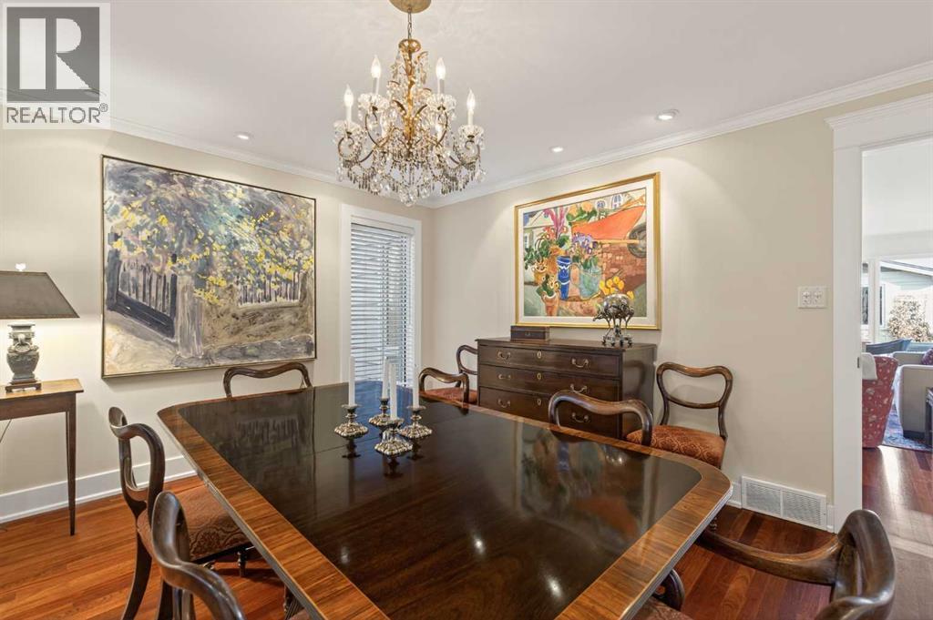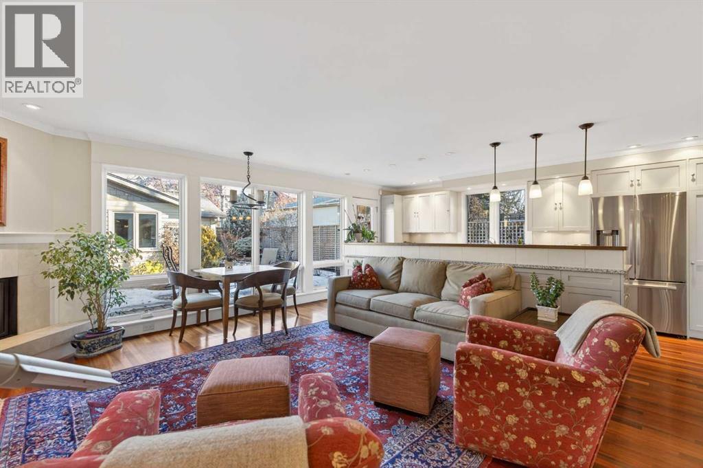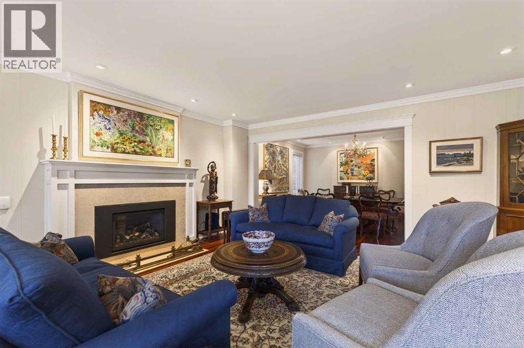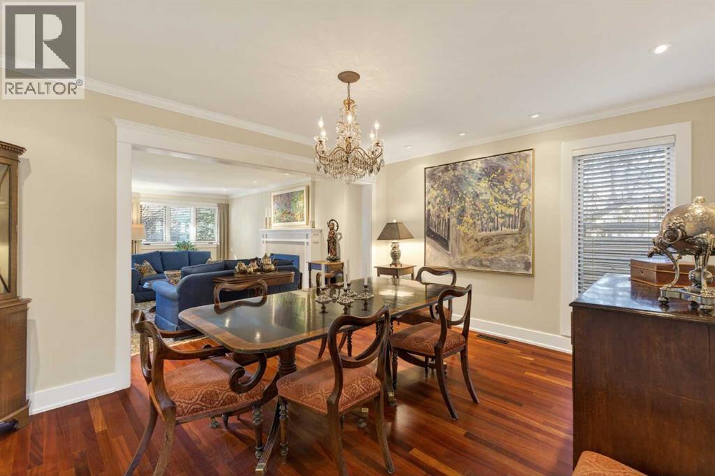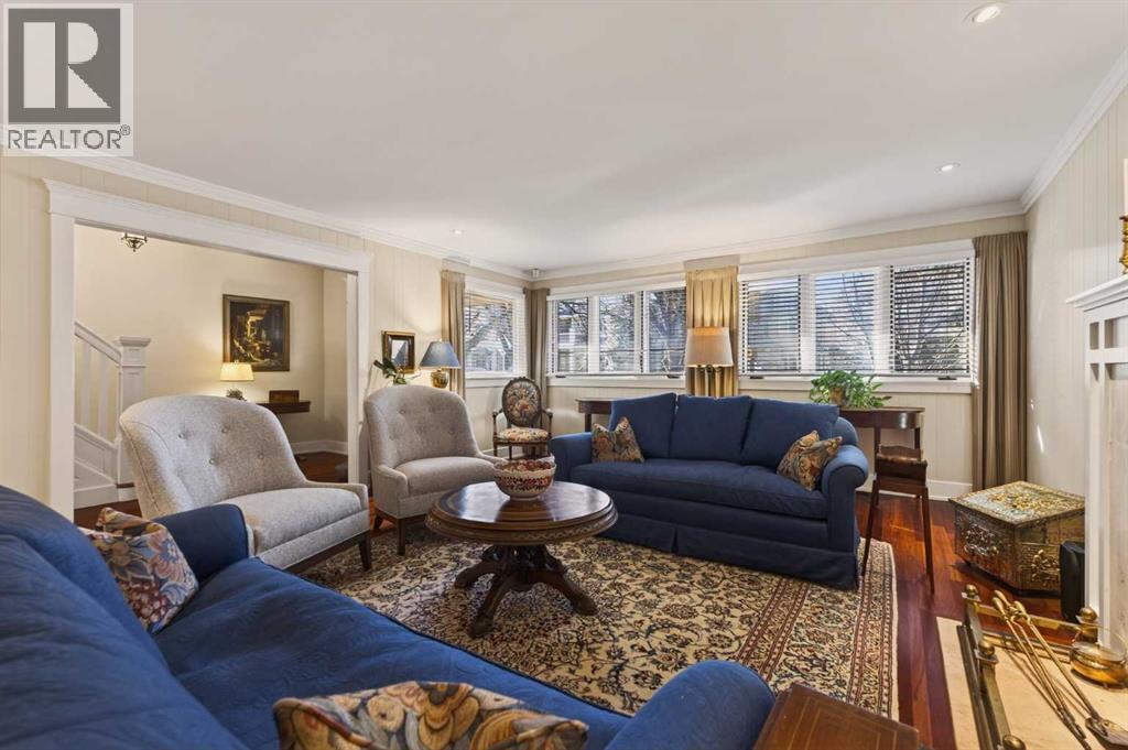 Nestled on a beautiful tree-lined street in the heart of Elbow Park, this charming character home offers timeless elegance and exceptional livability just steps from the Glencoe Club, top schools, river pathways, Mission, and an array of amenities. Originally built in 1920, the residence has been lovingly maintained and thoughtfully updated over the years, reflecting true pride of ownership while preserving its architectural integrity. Boasting over 3,600 sq. ft. of total living space, the home welcomes you with stunning curb appeal and a quaint front porch, perfect for morning coffee or evening unwinding.Inside, rich hardwood floors span the main level, where natural light fills the formal living and dining rooms, anchored by a beautiful fireplace that creates an inviting setting for entertaining. The spacious family room, complete with a second gas fireplace, opens seamlessly to the kitchen, featuring stainless steel appliances and functional flow for everyday living. A rare and highly desirable main floor primary retreat offers comfort and privacy, complete with its own ensuite. Upstairs, you will find two additional bedrooms with a shared bath, ideal for family or guests. The fully developed lower level expands the living space with yet another fireplace, a large games and media room, an additional bedroom or optional gym, its own ensuite, and ample storage throughout. Practicality meets charm with a mudroom that leads to a covered breezeway, connecting to the double detached garage and dedicated workshop, perfect for hobbyists or additional storage needs. Surrounded by beautifully curated hard and soft landscaping, the front and backyard spaces offer both serenity and functionality, an ideal setting for outdoor entertaining or family enjoyment. A rare opportunity to own a character home of this scale and condition in one of Calgary’s most prestigious inner city communities. (id:54406)