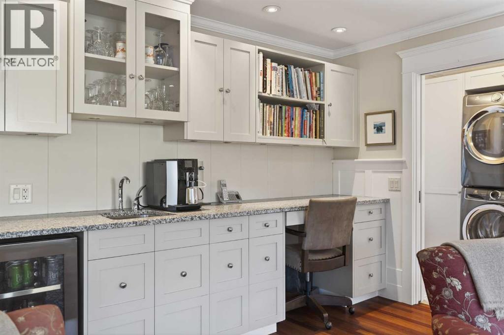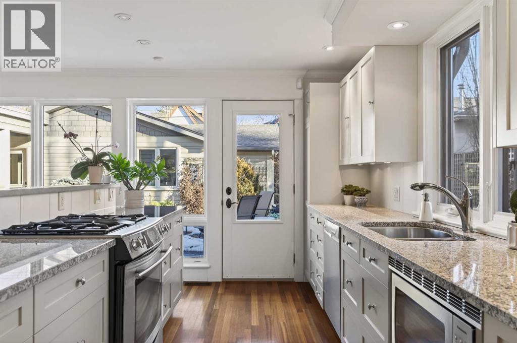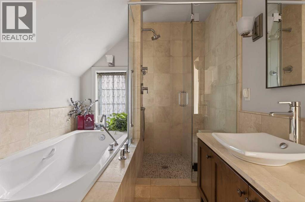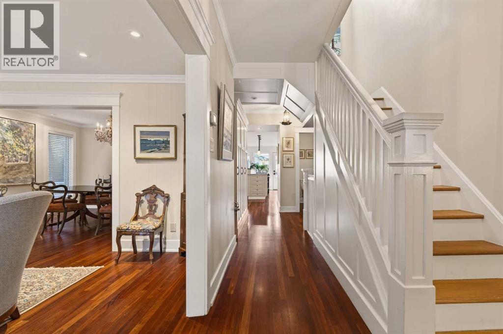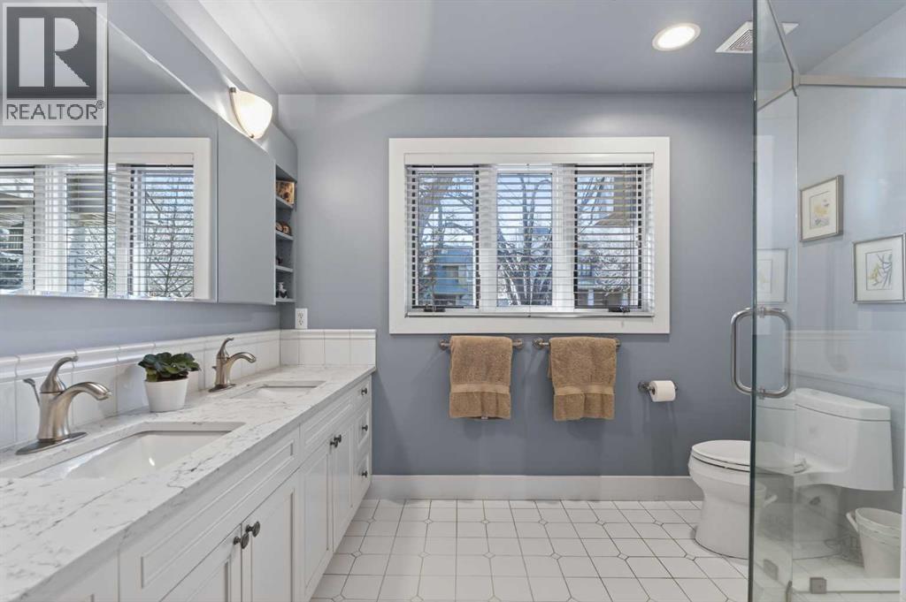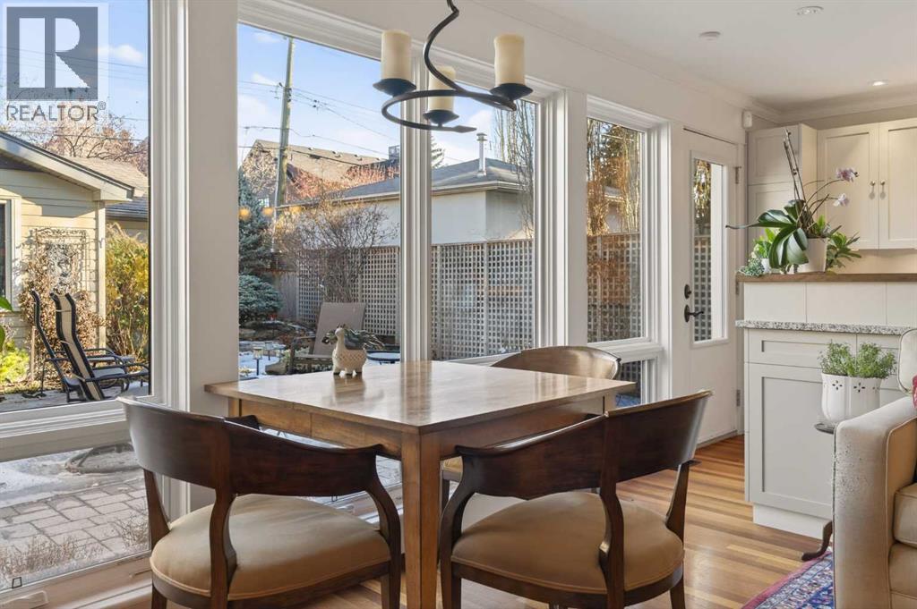 Nestled on a beautiful tree-lined street in the heart of Elbow Park, this charming character home offers timeless elegance and exceptional livability just steps from the Glencoe Club, top schools, river pathways, Mission, and an array of amenities. Originally built in 1920, the residence has been lovingly maintained and thoughtfully updated over the years, reflecting true pride of ownership while preserving its architectural integrity. Boasting over 3,600 sq. ft. of total living space, the home welcomes you with stunning curb appeal and a quaint front porch, perfect for morning coffee or evening unwinding.Inside, rich hardwood floors span the main level, where natural light fills the formal living and dining rooms, anchored by a beautiful fireplace that creates an inviting setting for entertaining. The spacious family room, complete with a second gas fireplace, opens seamlessly to the kitchen, featuring stainless steel appliances and functional flow for everyday living. A rare and highly desirable main floor primary retreat offers comfort and privacy, complete with its own ensuite. Upstairs, you will find two additional bedrooms with a shared bath, ideal for family or guests. The fully developed lower level expands the living space with yet another fireplace, a large games and media room, an additional bedroom or optional gym, its own ensuite, and ample storage throughout. Practicality meets charm with a mudroom that leads to a covered breezeway, connecting to the double detached garage and dedicated workshop, perfect for hobbyists or additional storage needs. Surrounded by beautifully curated hard and soft landscaping, the front and backyard spaces offer both serenity and functionality, an ideal setting for outdoor entertaining or family enjoyment. A rare opportunity to own a character home of this scale and condition in one of Calgary’s most prestigious inner city communities. (id:54406)